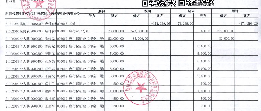 2025年8月雙護村股份經(jīng)濟合作社財務(wù)公開