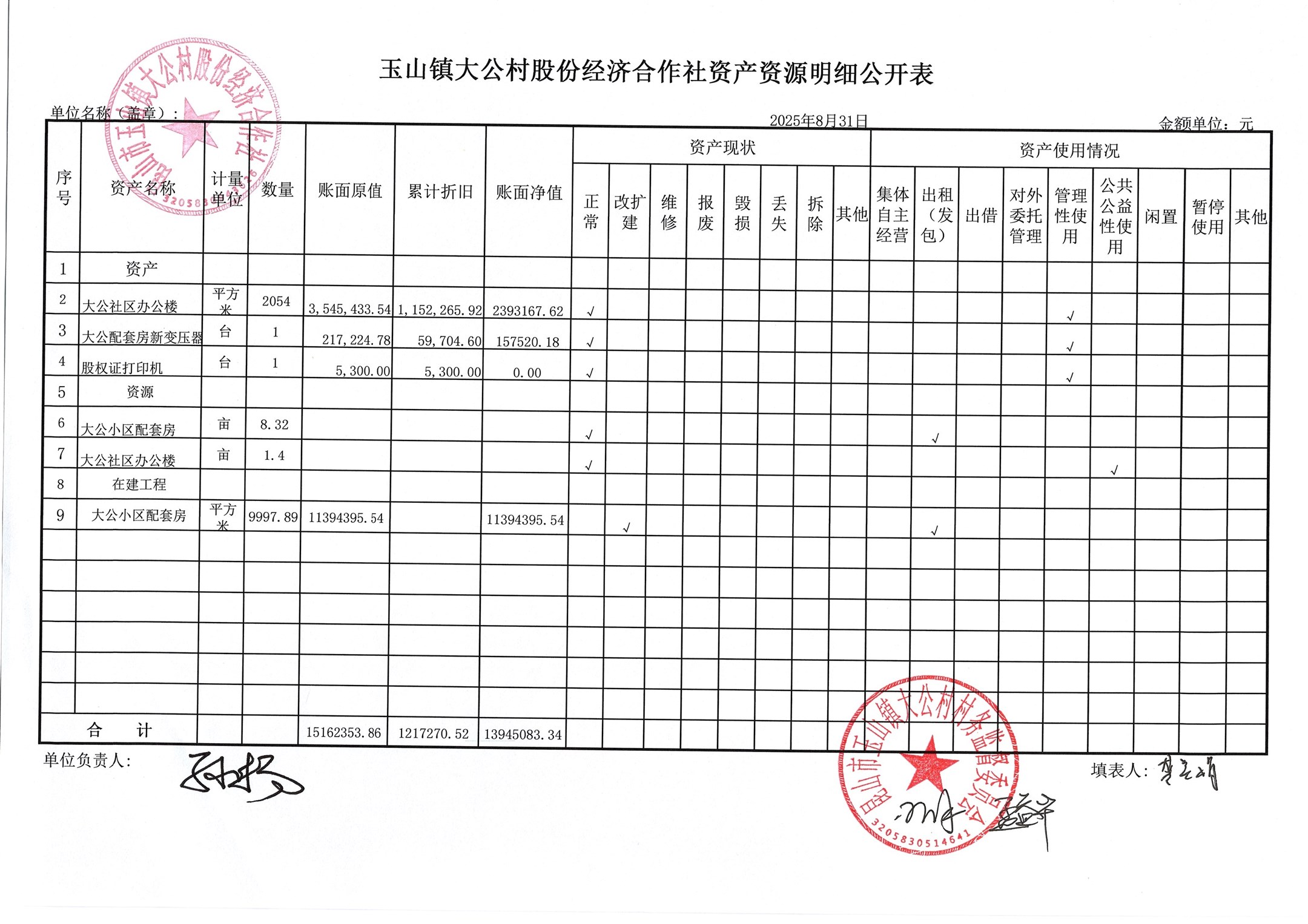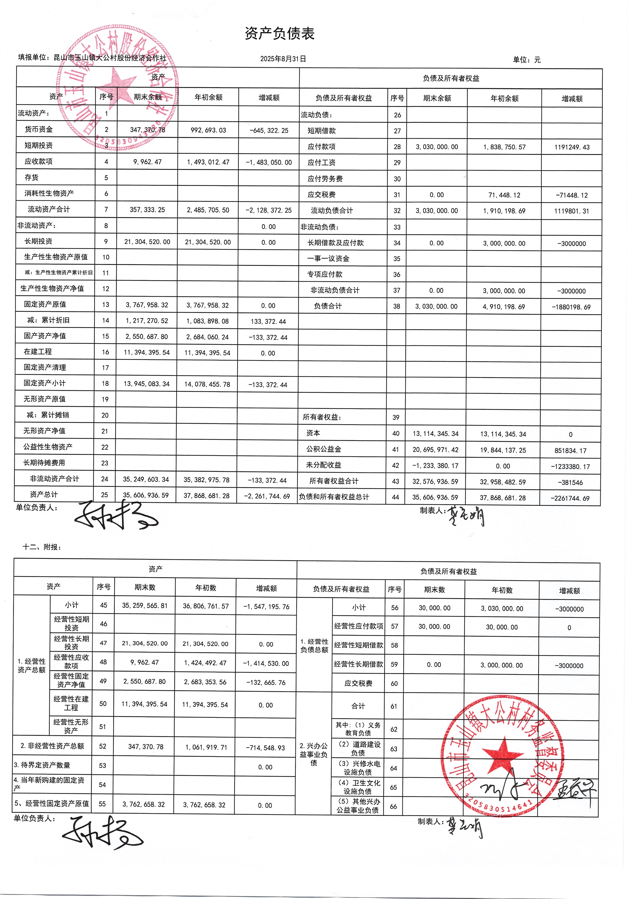 高新區(qū)大公村股份經(jīng)濟(jì)合作社2025年9月財務(wù)公開