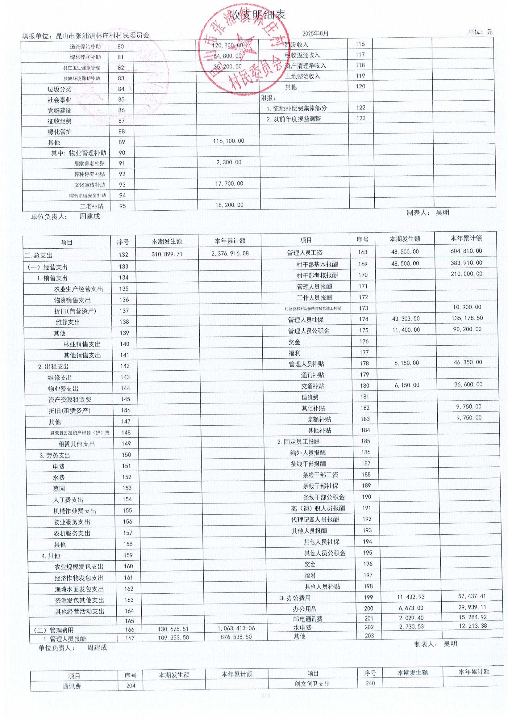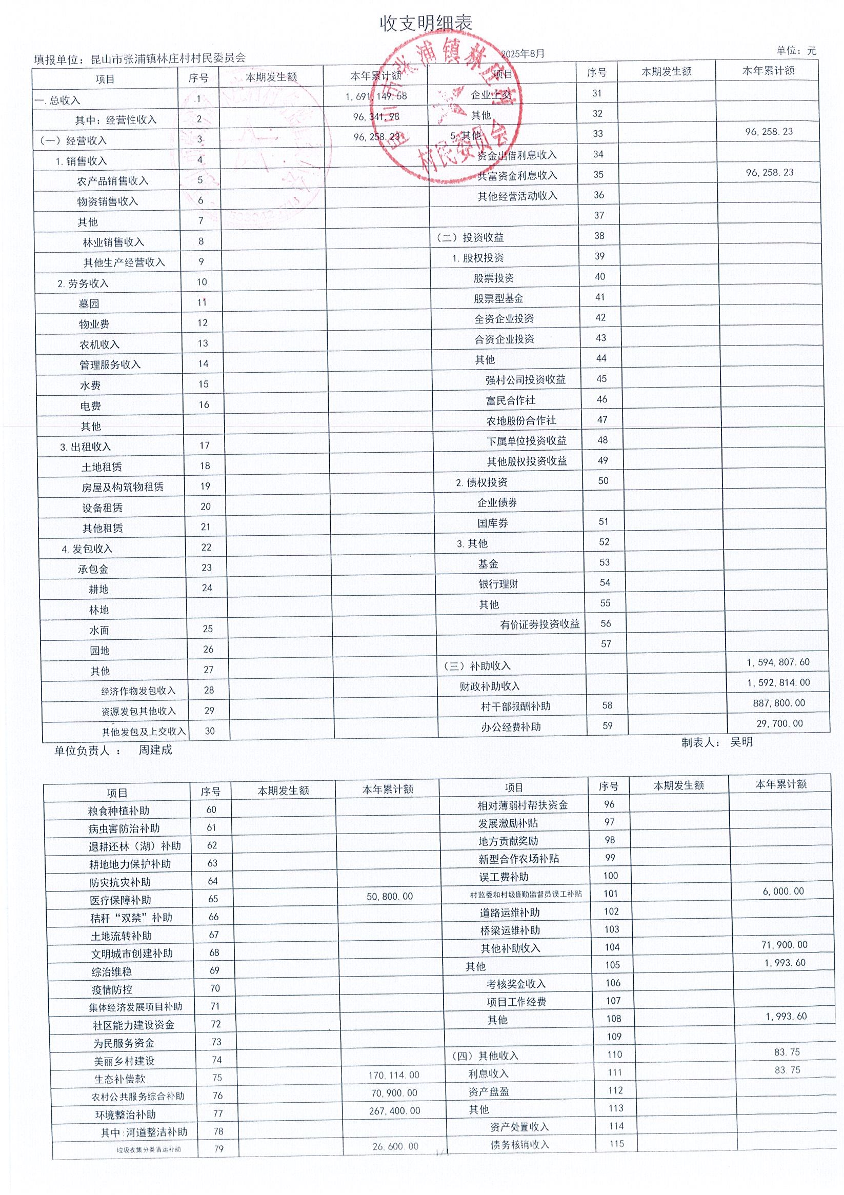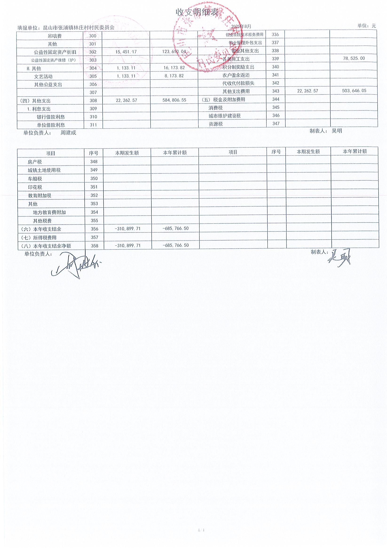 2025年林莊村及股份經(jīng)濟(jì)合作社8月財(cái)務(wù)公開