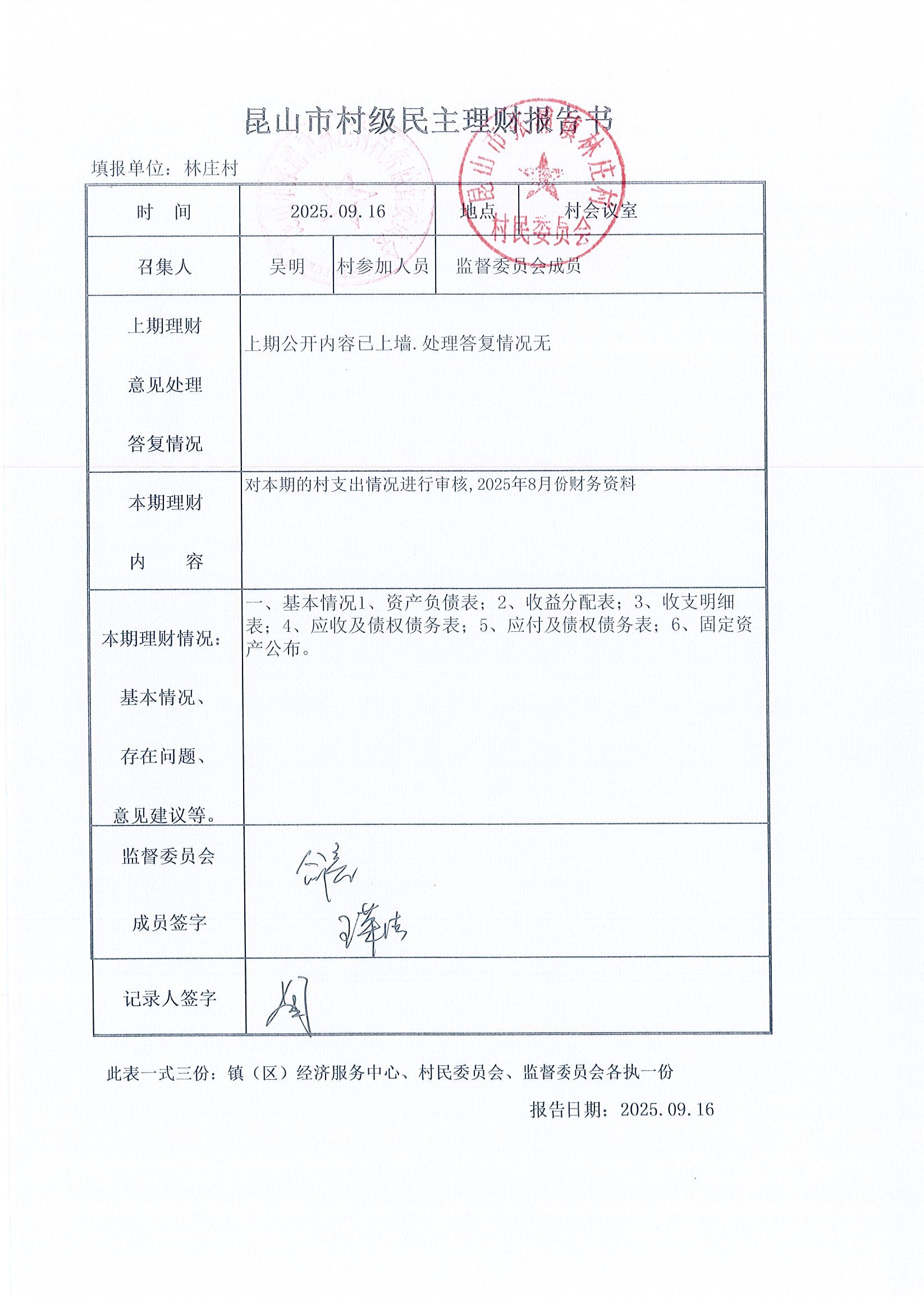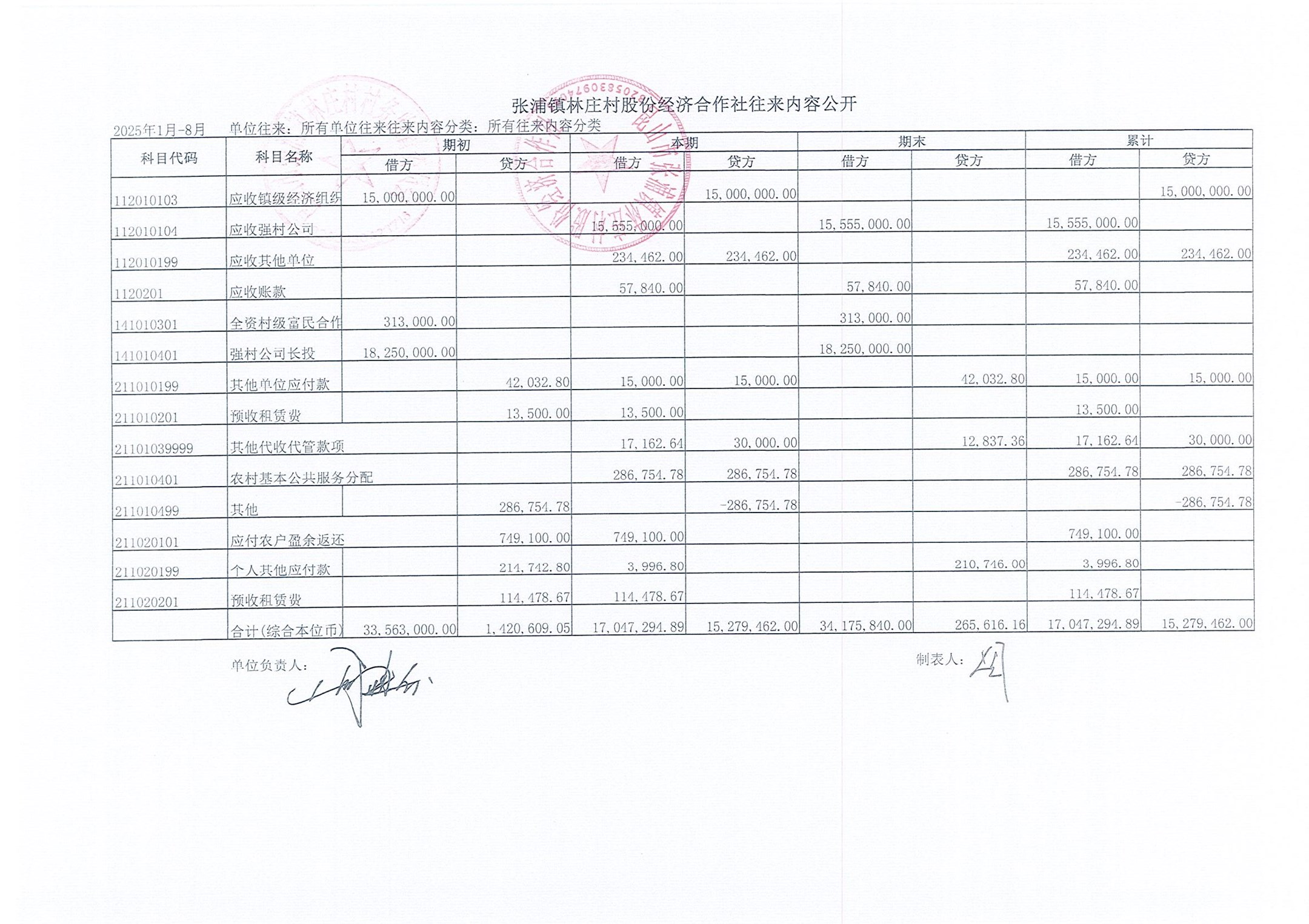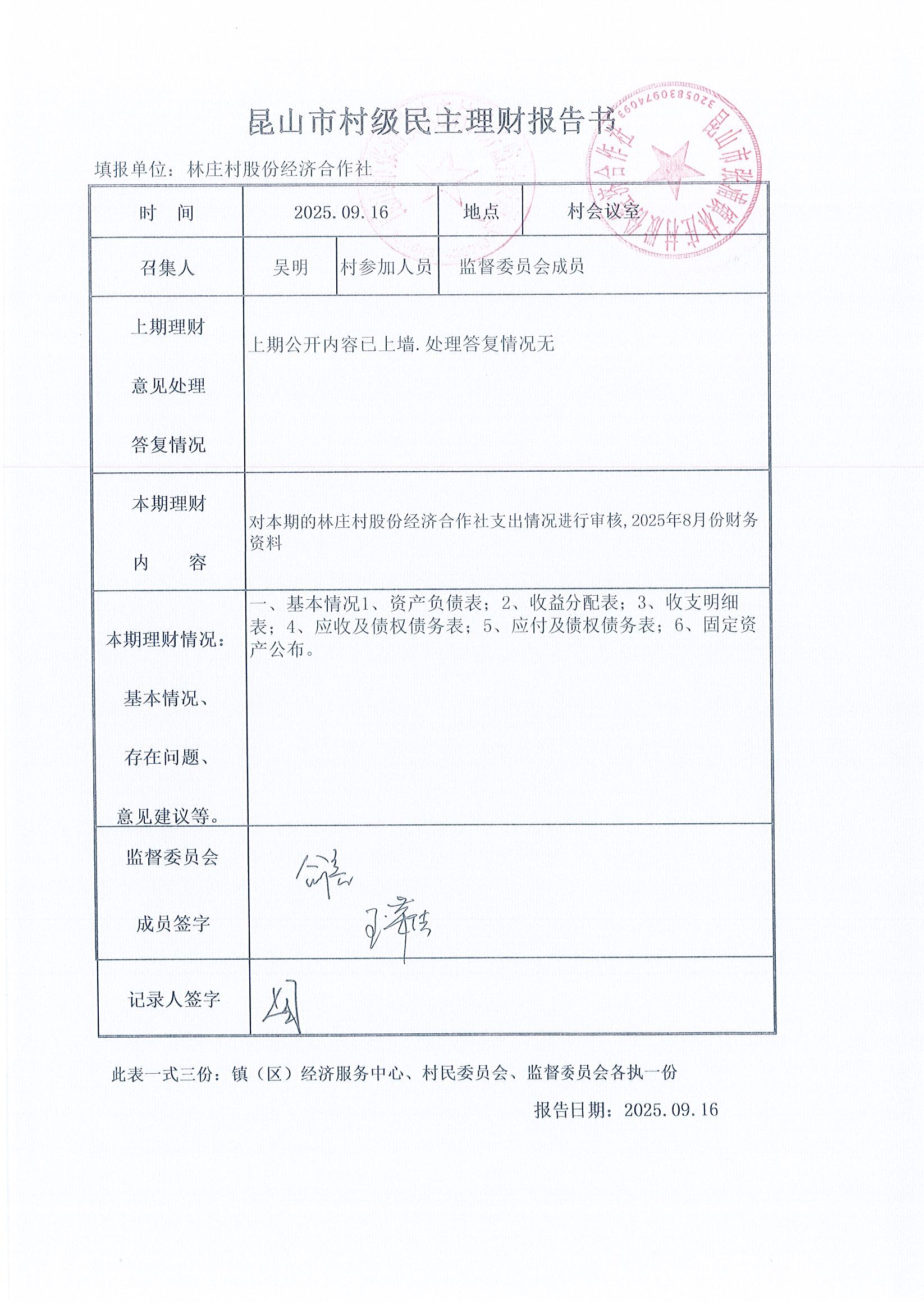 2025年林莊村及股份經(jīng)濟(jì)合作社8月財(cái)務(wù)公開