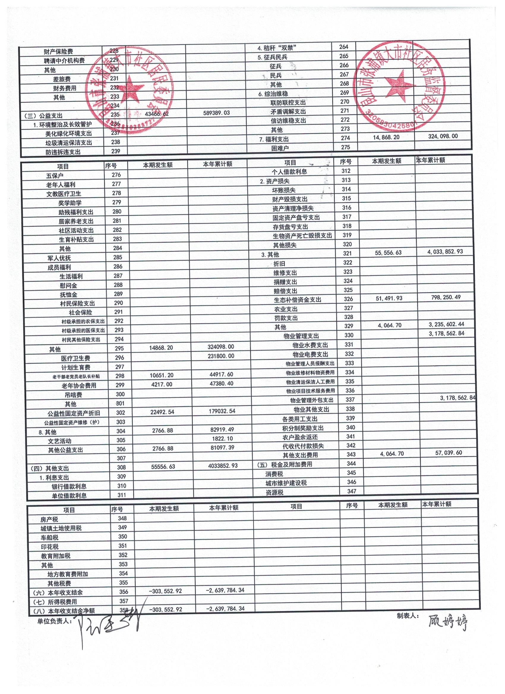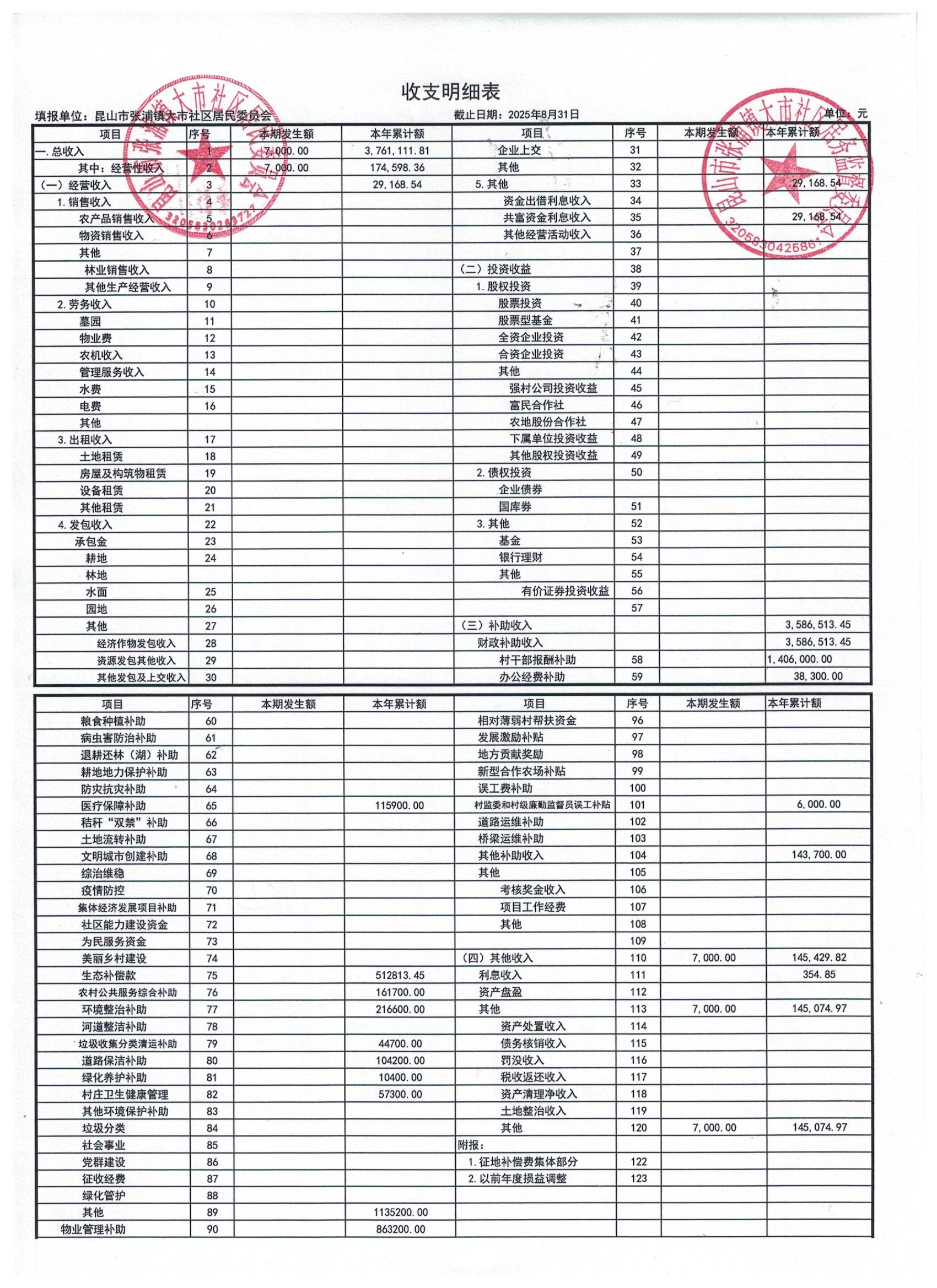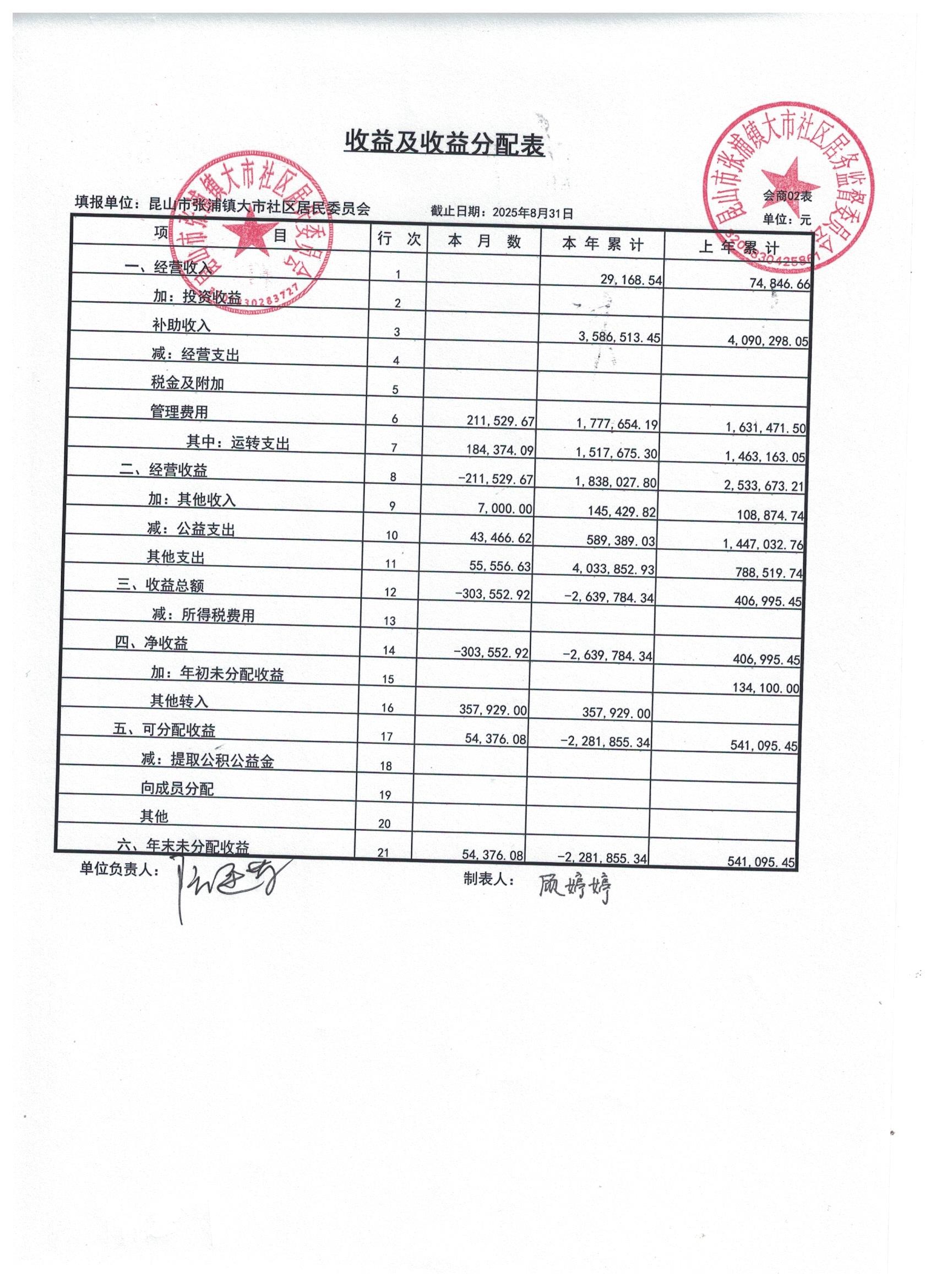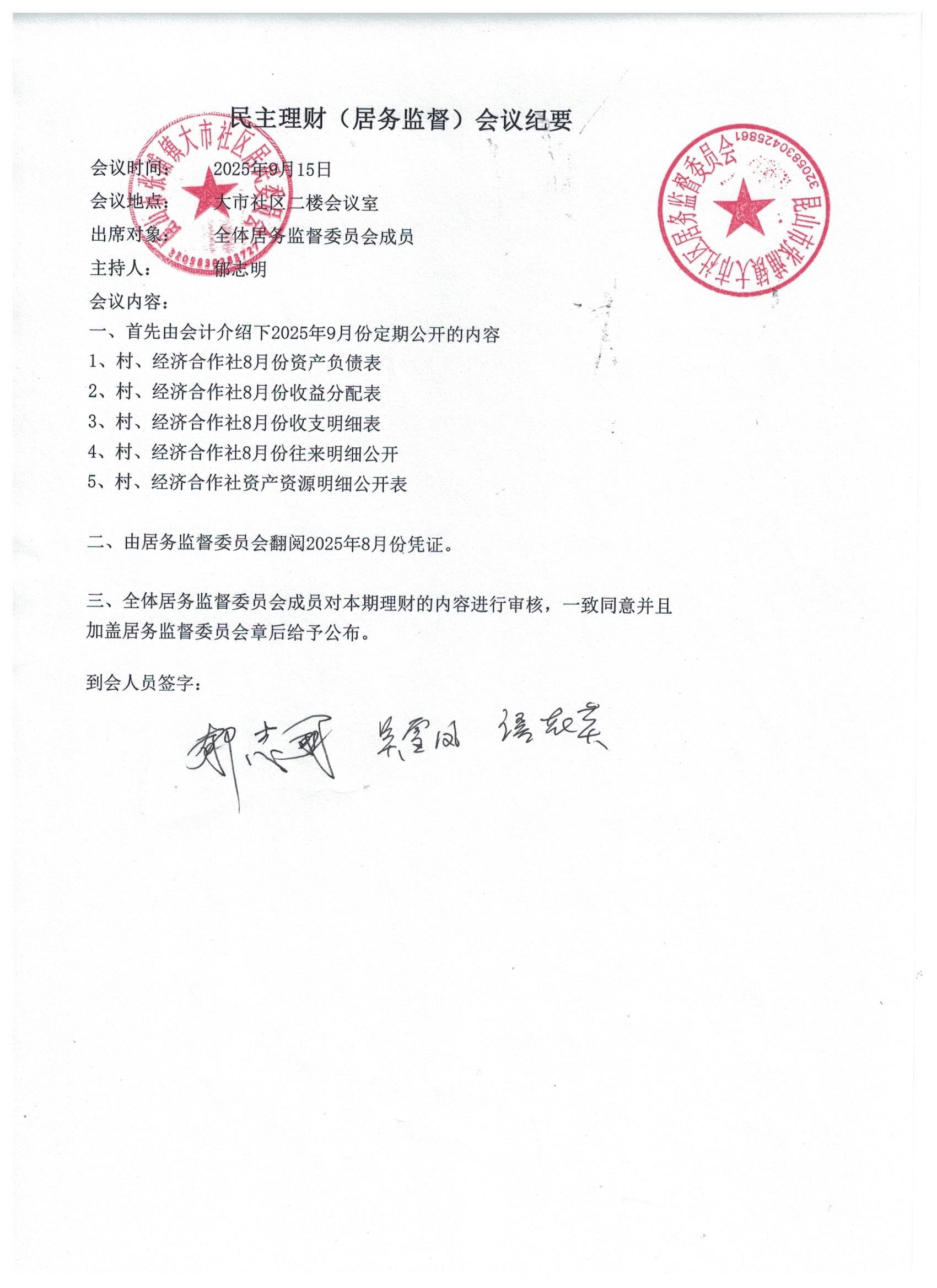 2025年大市社區(qū)居民委員會9月份財務(wù)公開