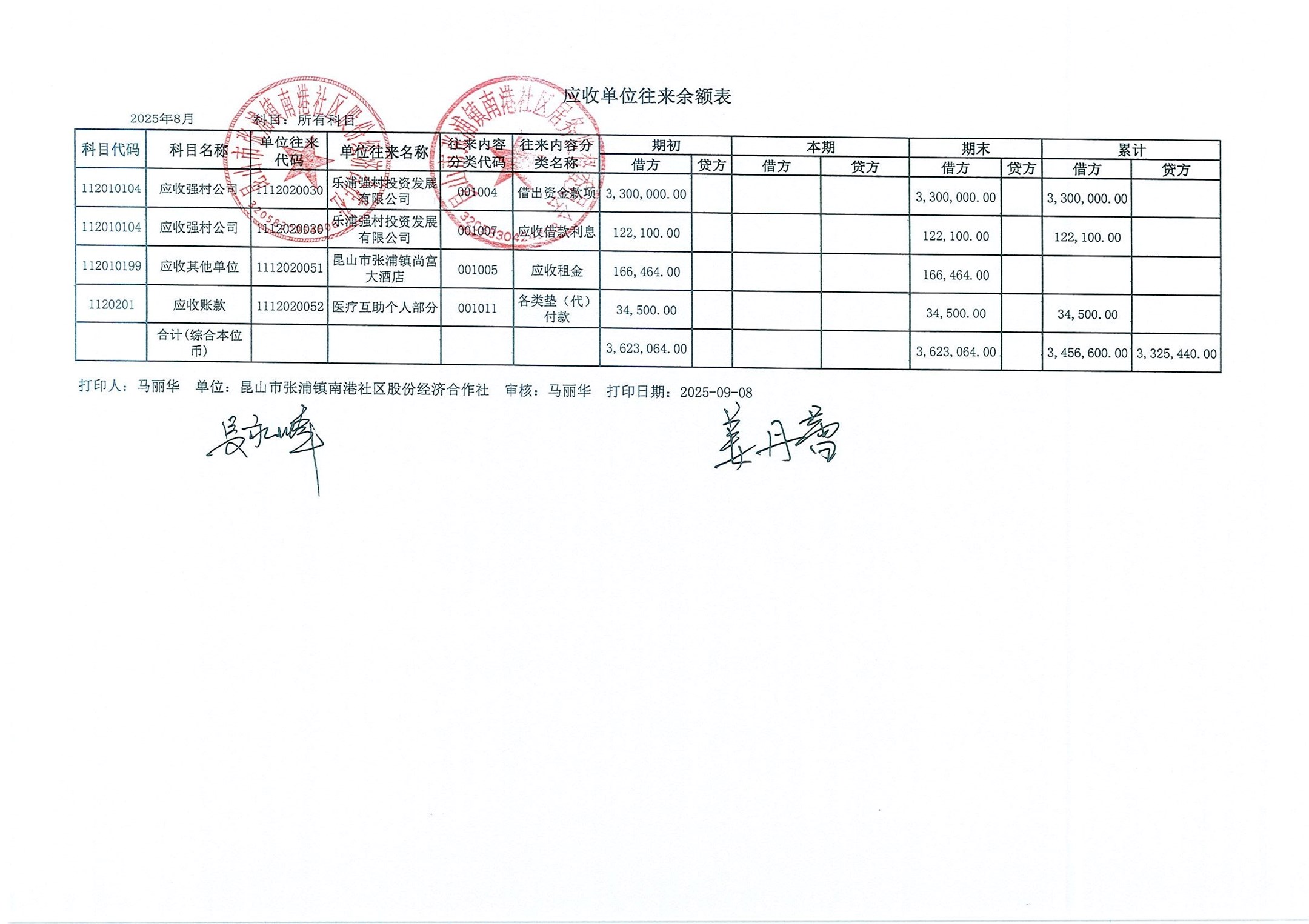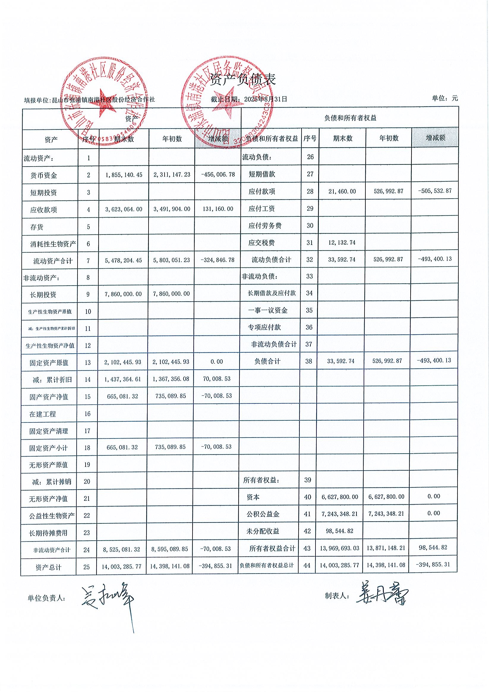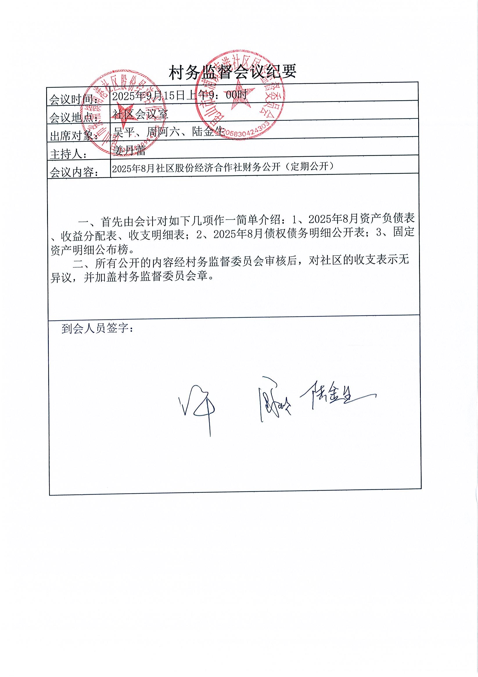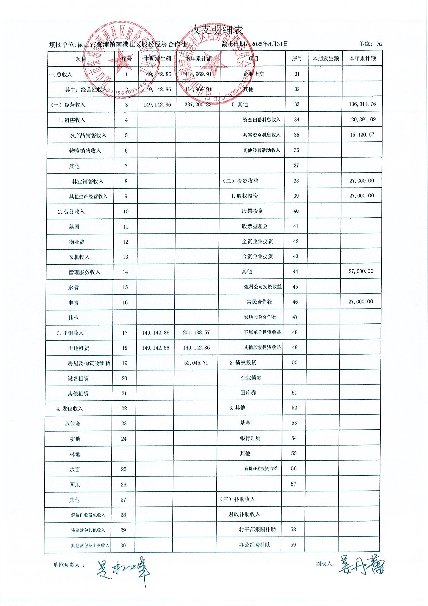 南港社區(qū)股份經(jīng)濟(jì)合作社2025年8月財(cái)務(wù)公開(定期公開)