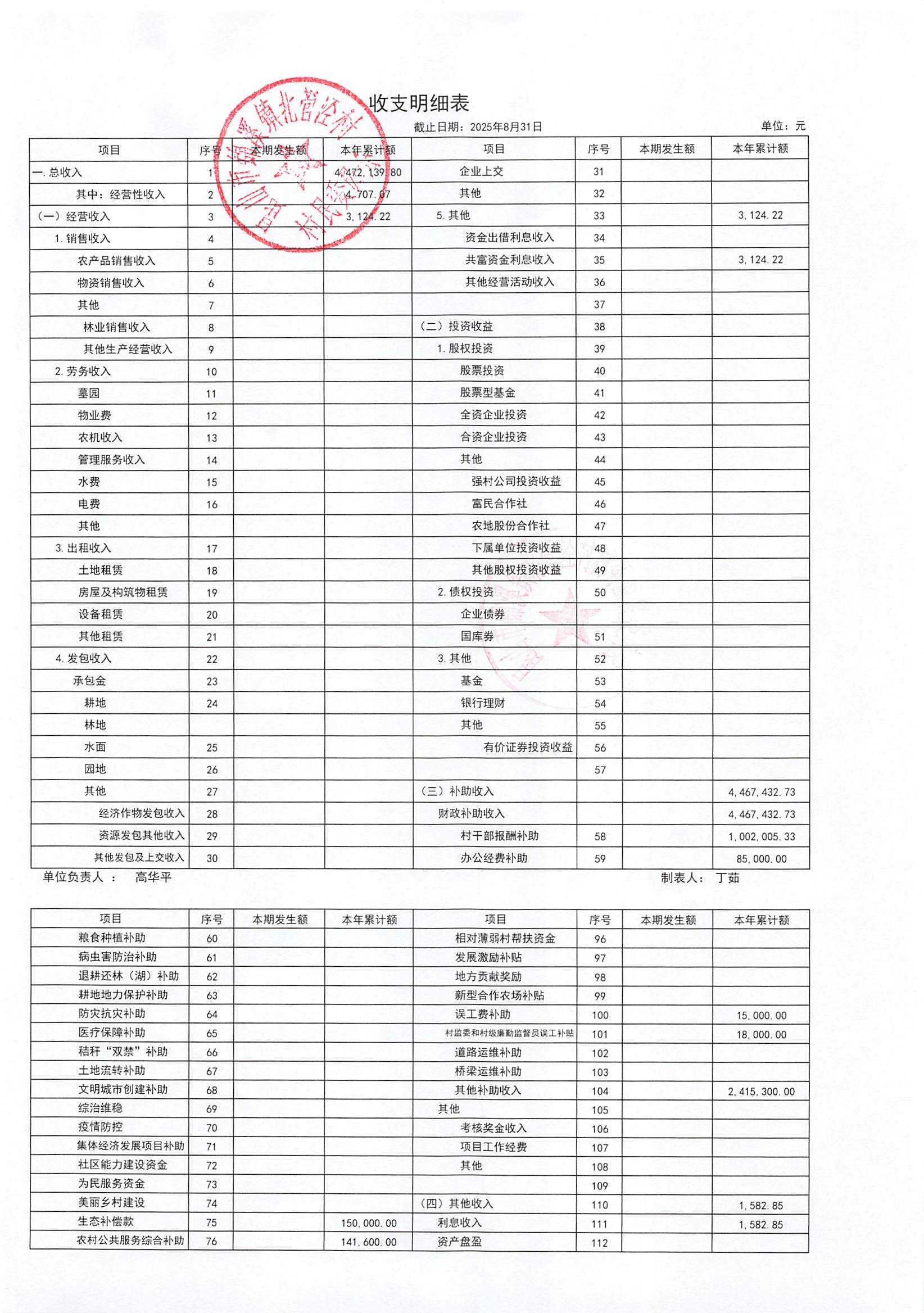 2025年8月份村委會(huì)財(cái)務(wù)公開