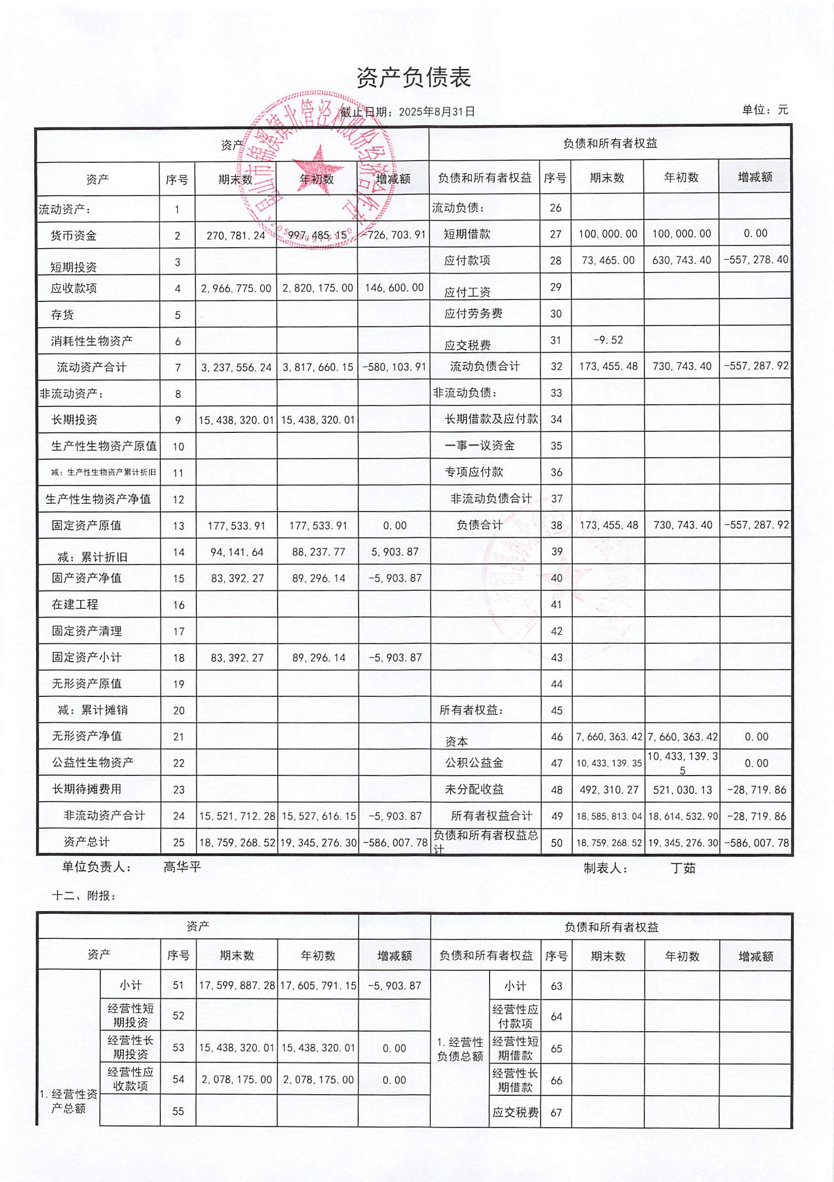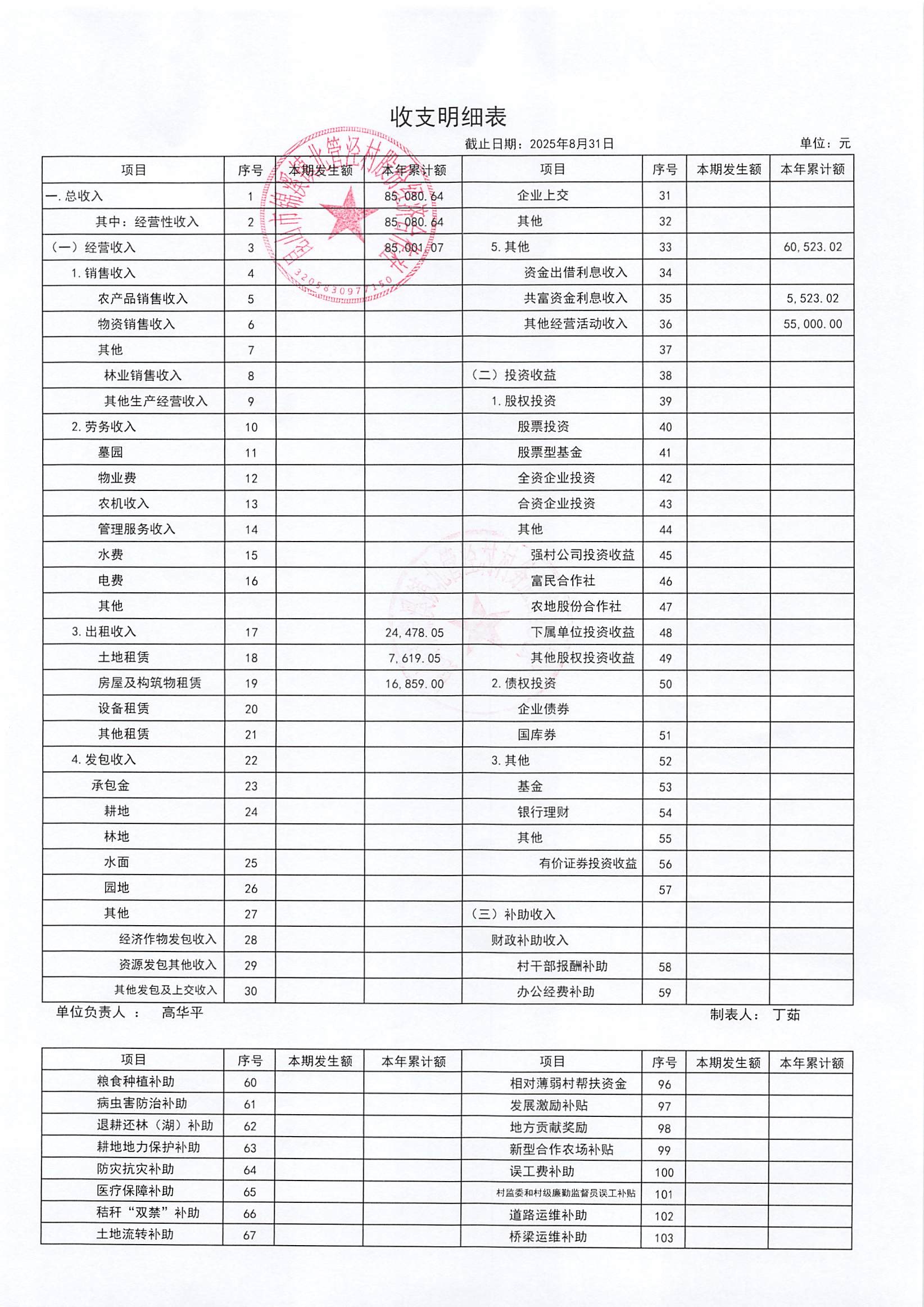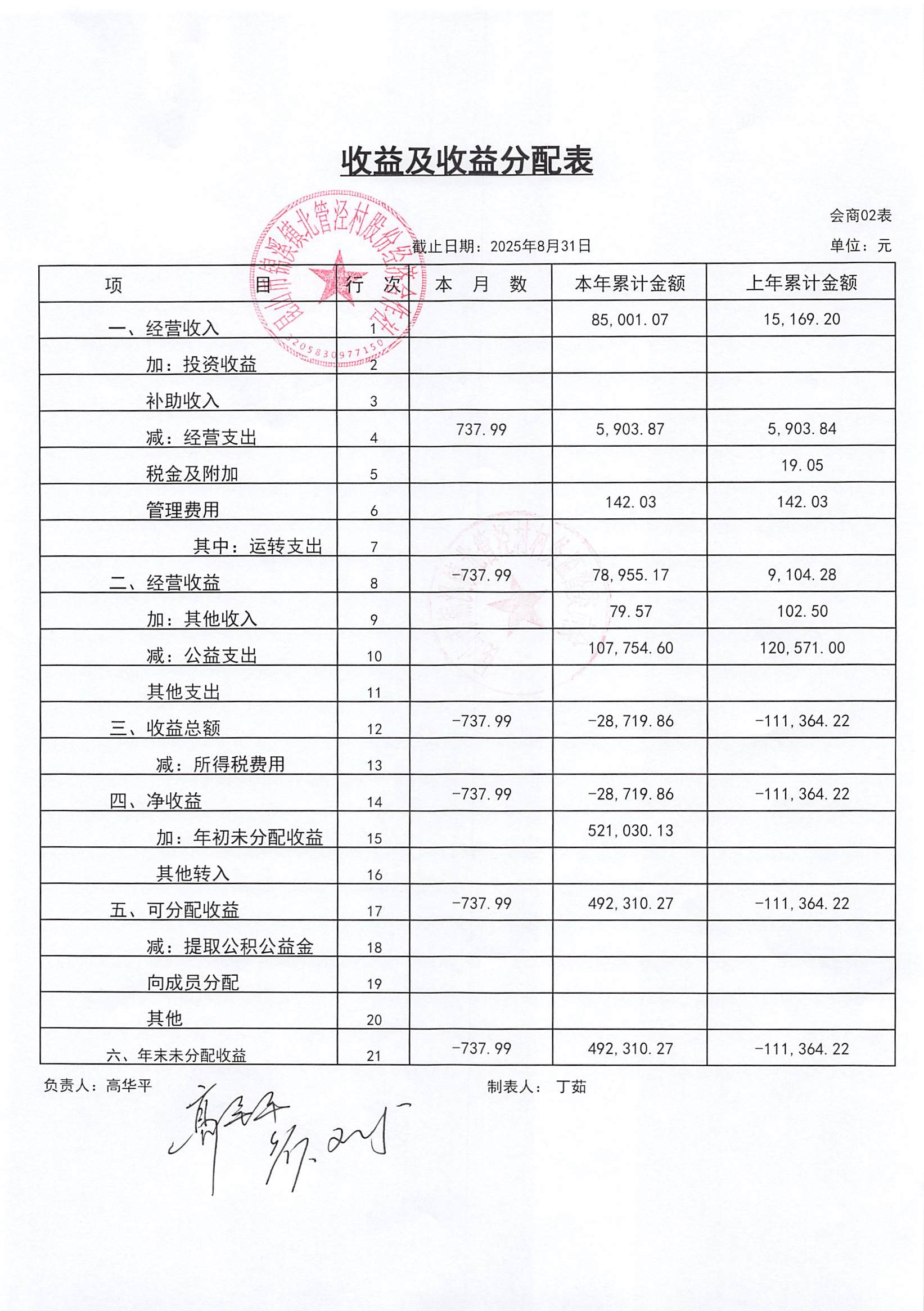 2025年8月份股份經(jīng)濟合作社財務(wù)公開