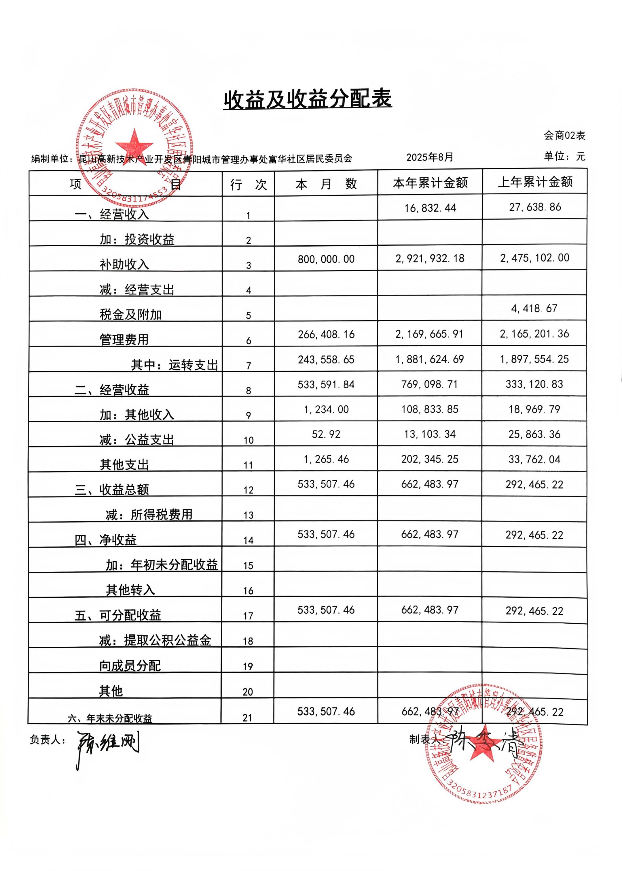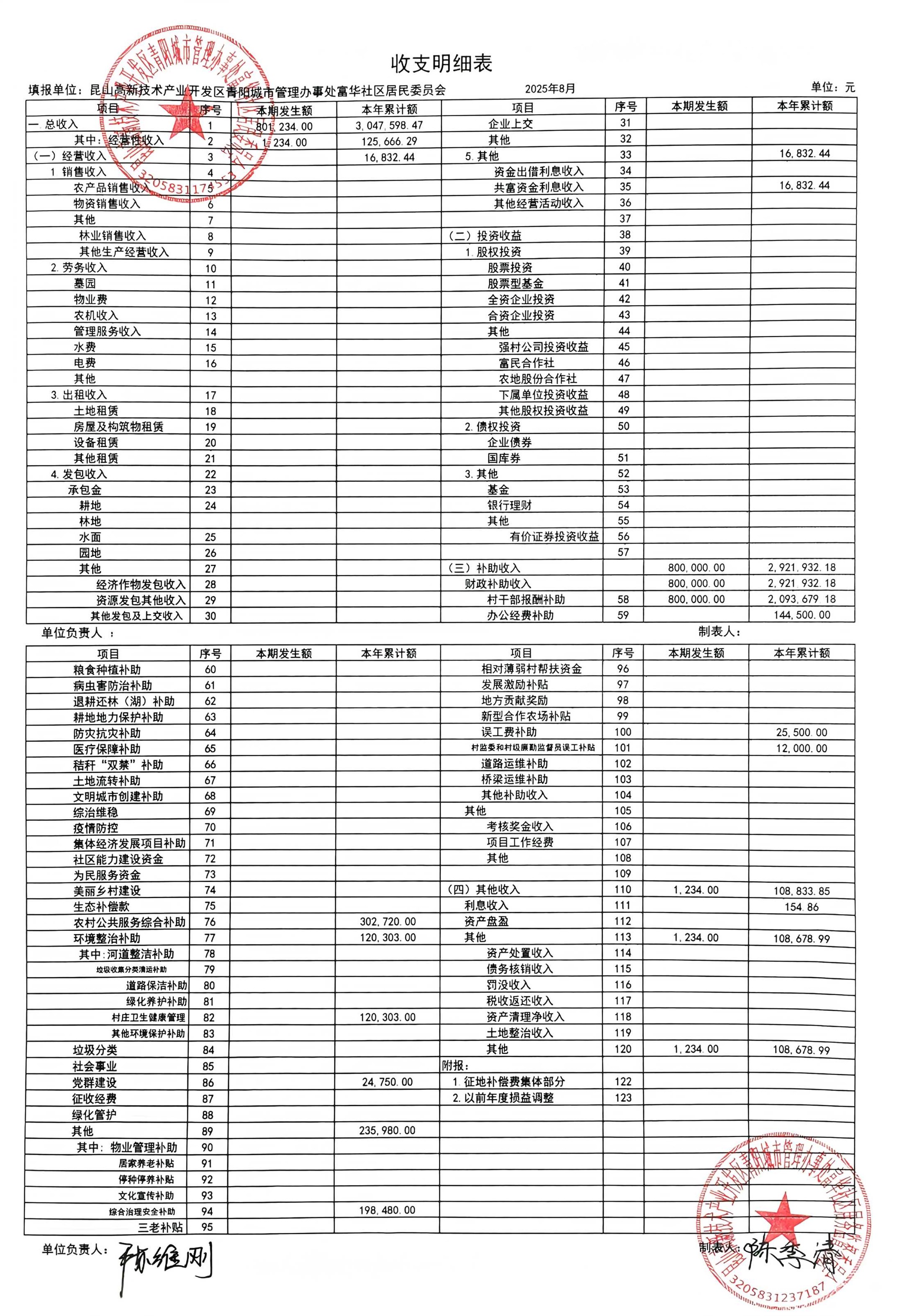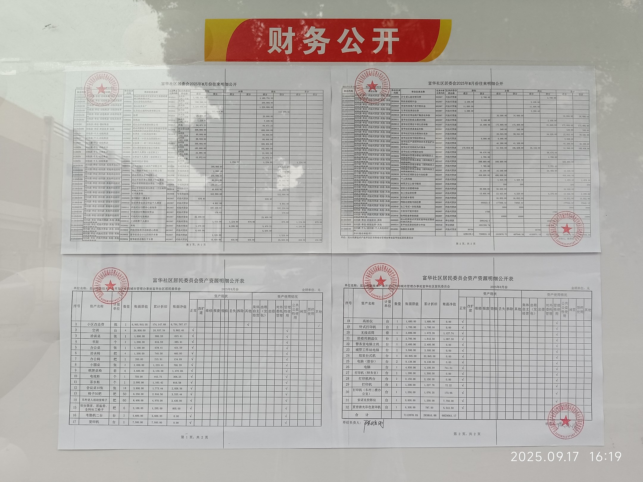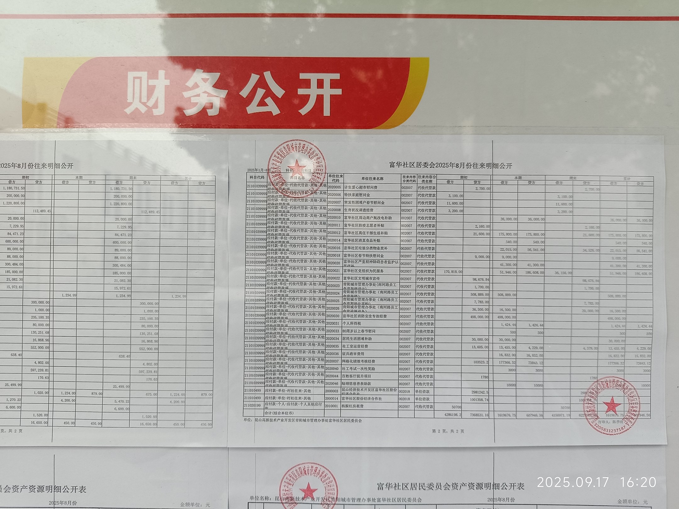富華社區(qū)居委會2025年8月份財務公開