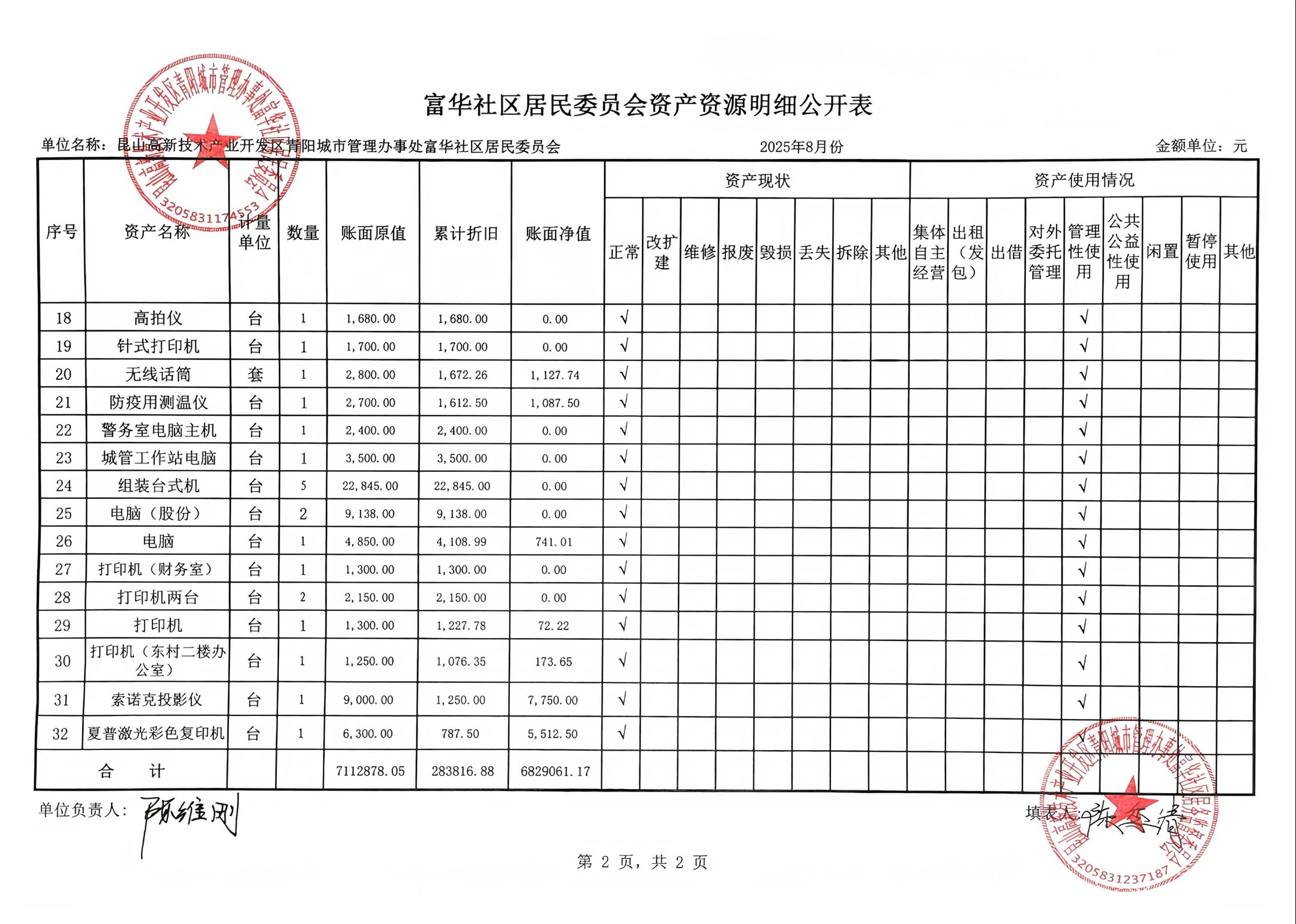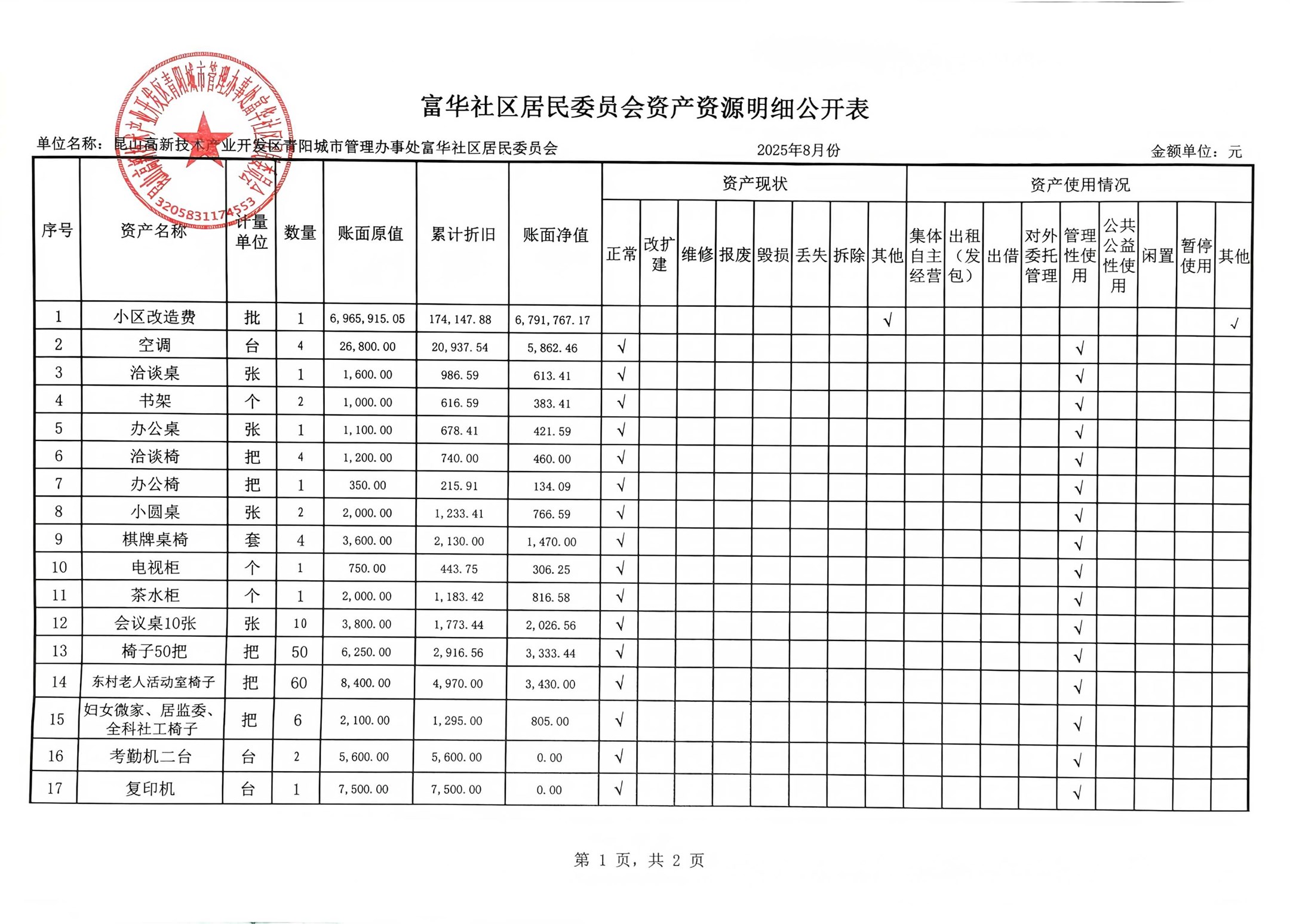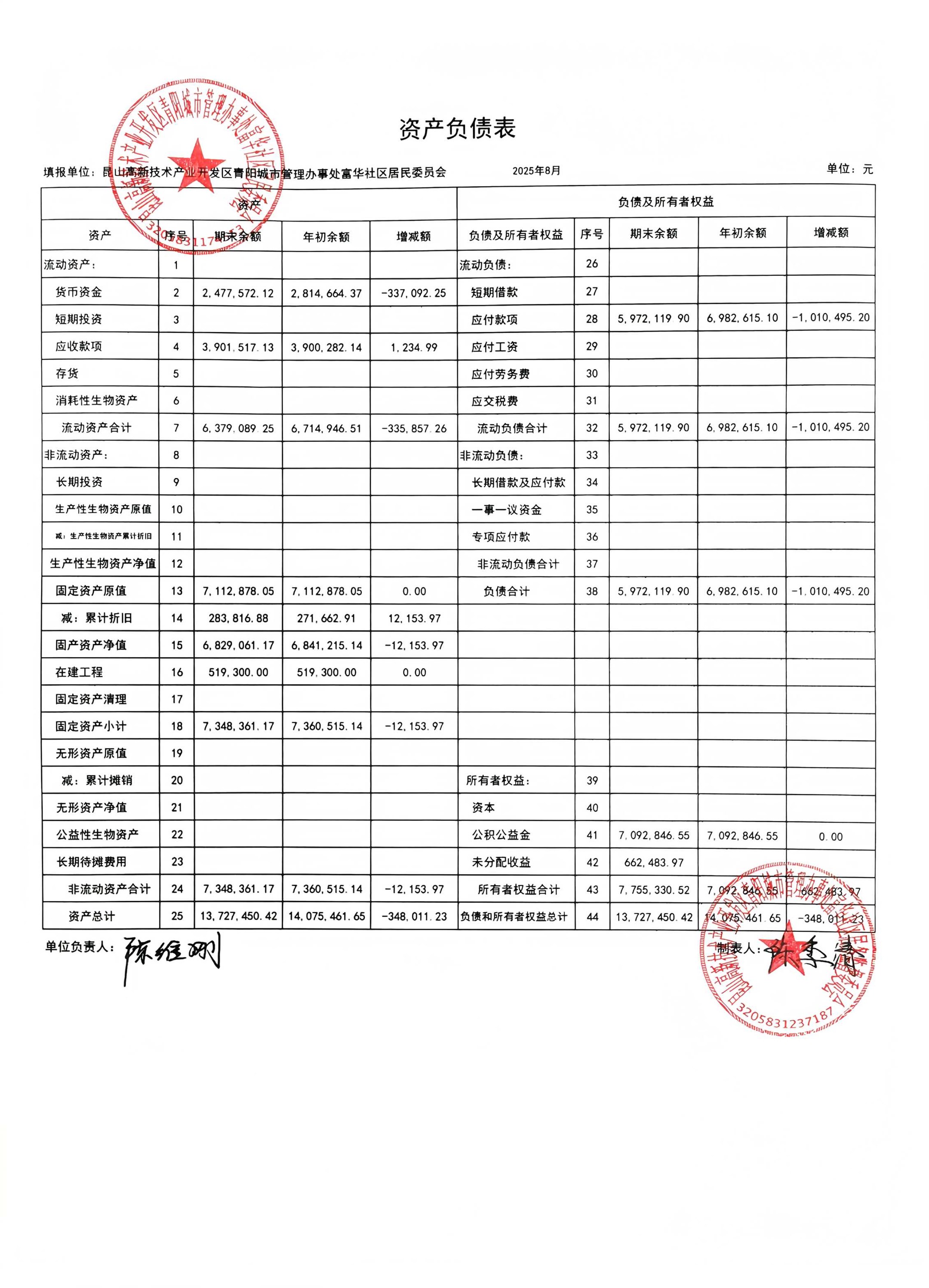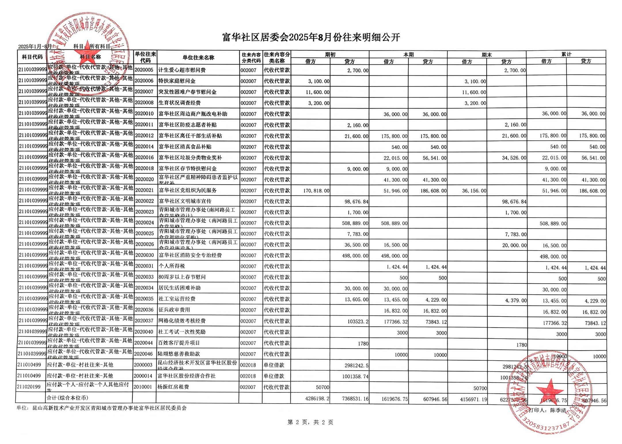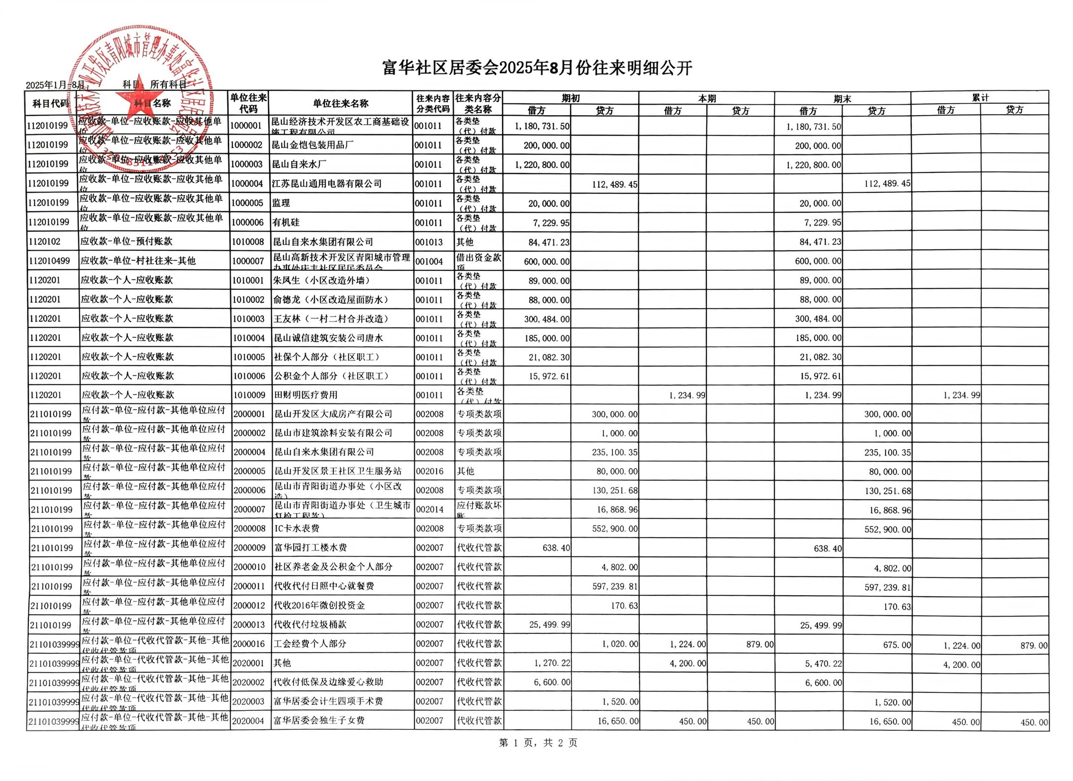 富華社區(qū)居委會2025年8月份財務公開