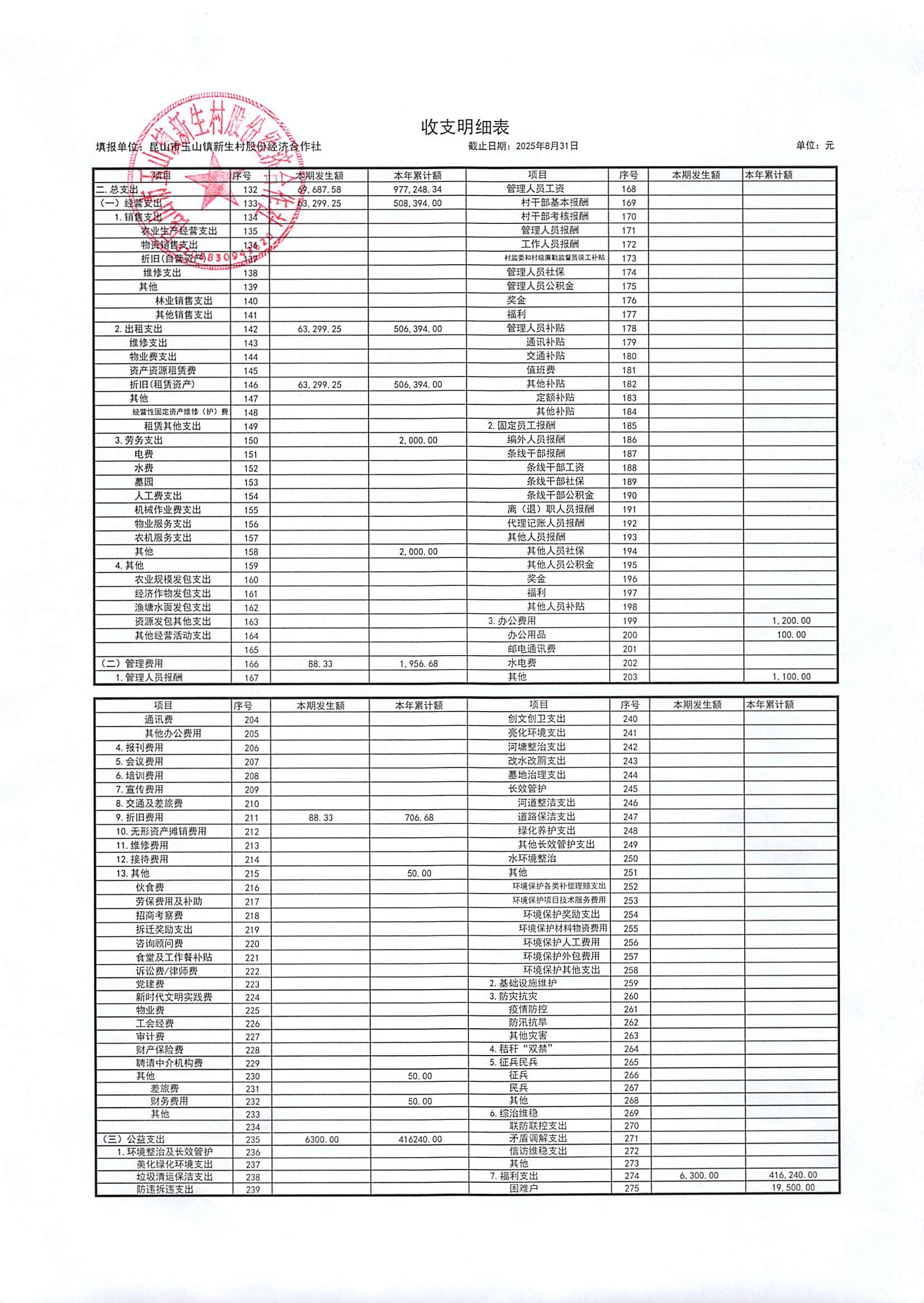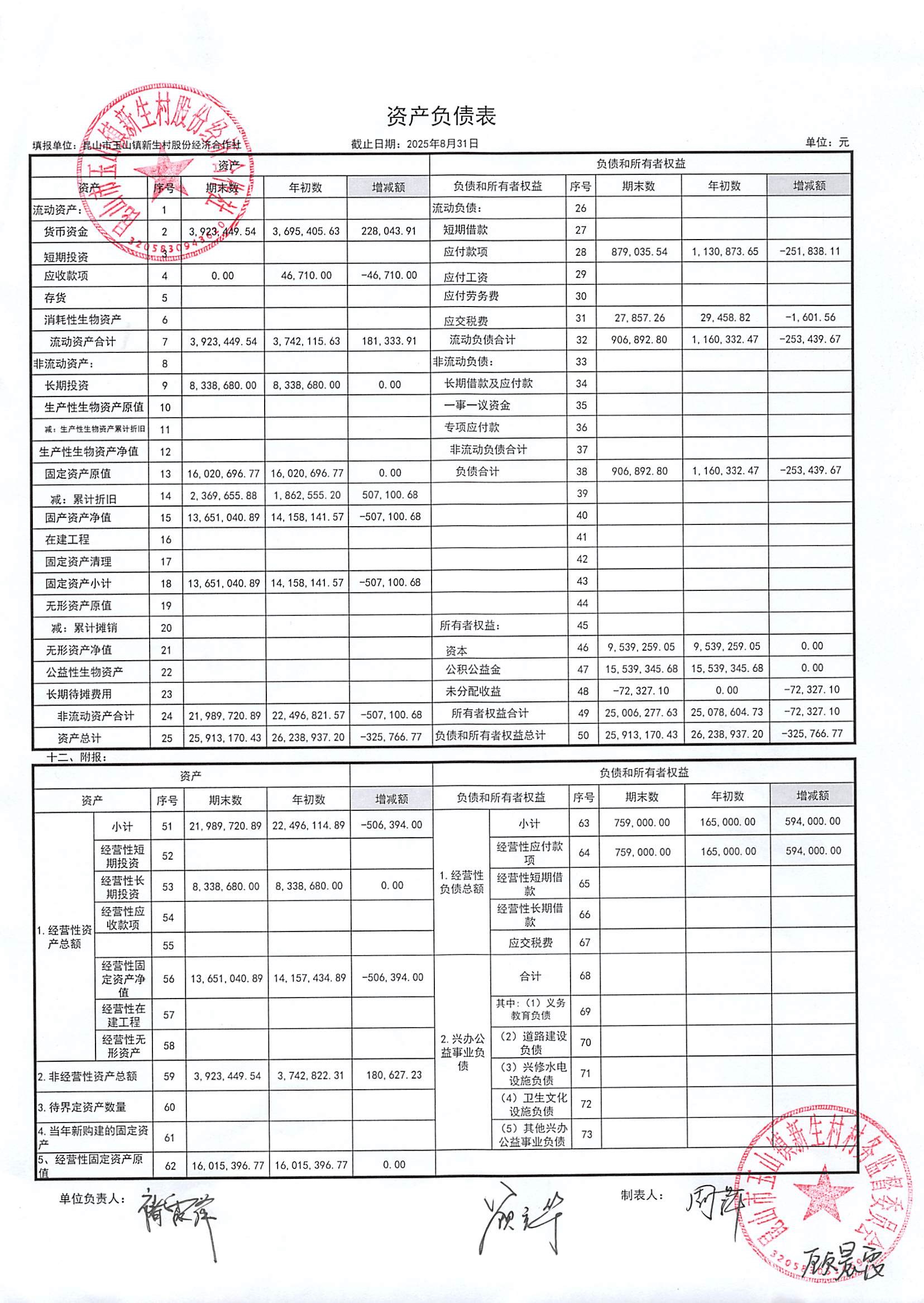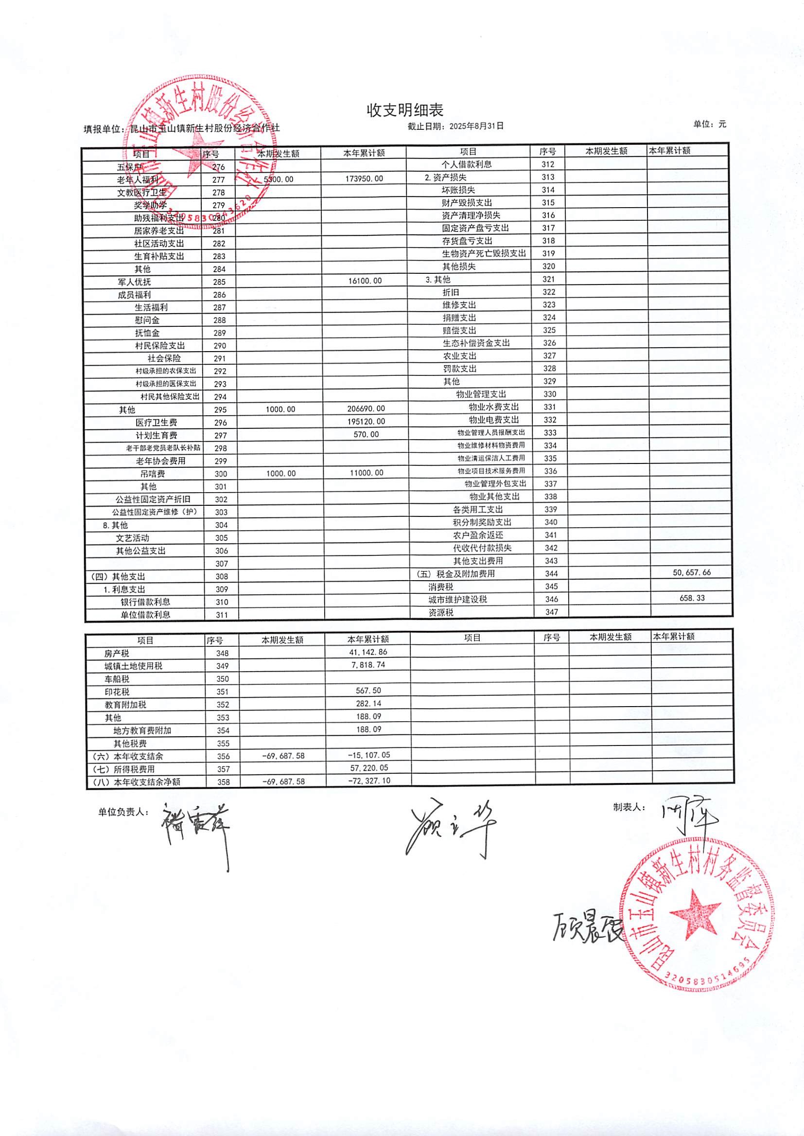 2025年9月新生村股份經(jīng)濟(jì)合作社財(cái)務(wù)公開