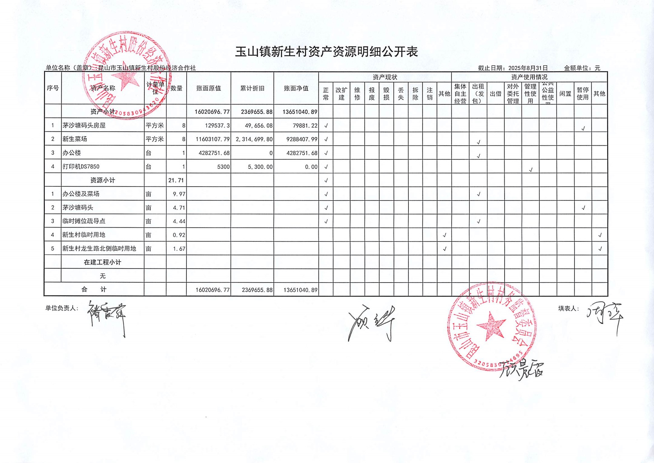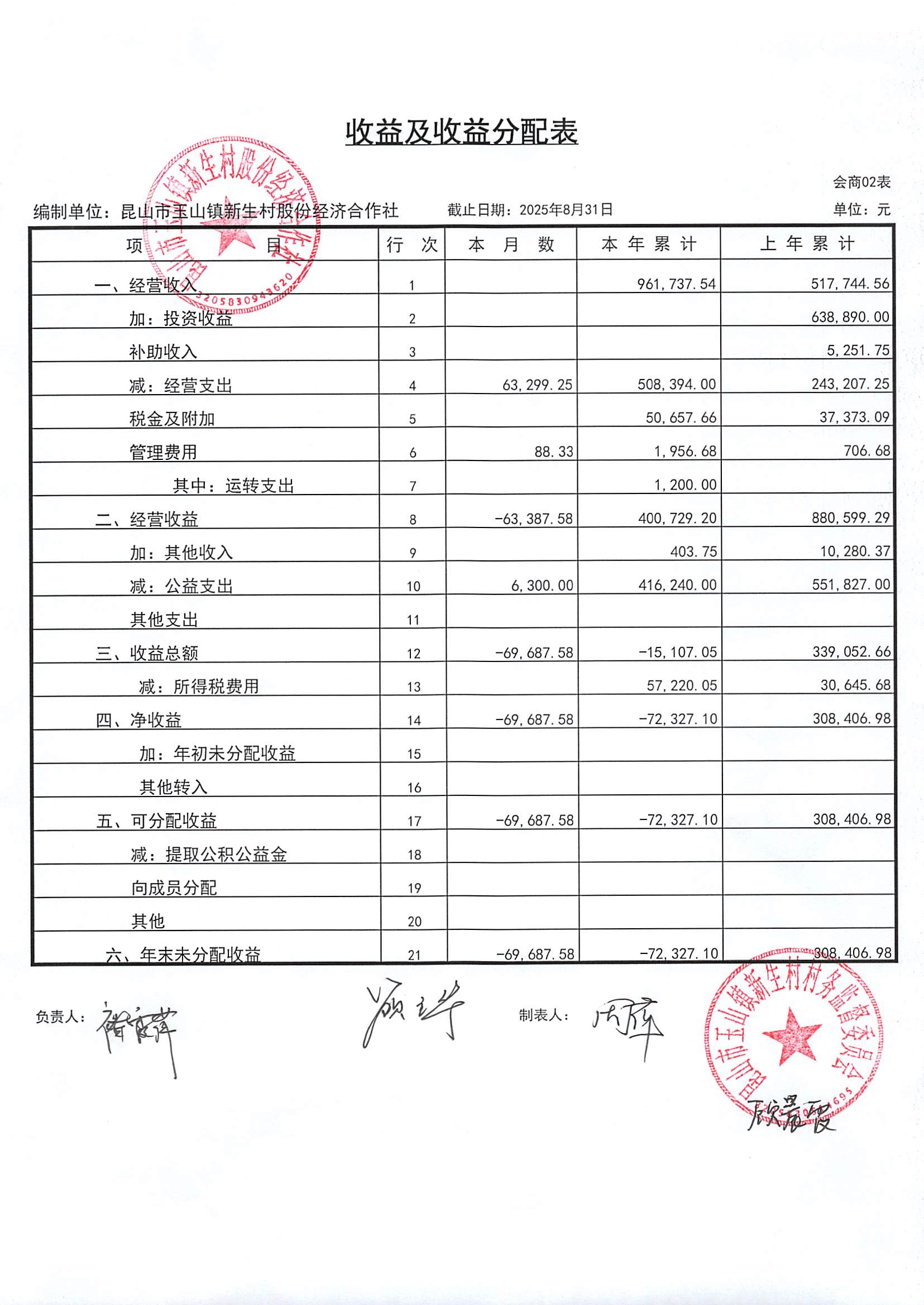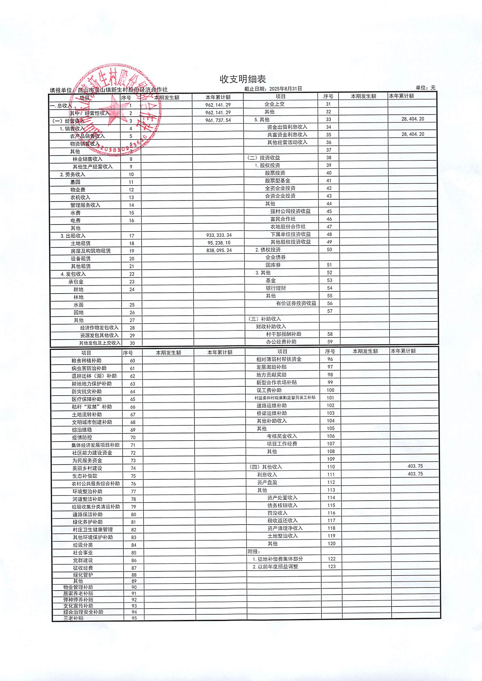2025年9月新生村股份經(jīng)濟(jì)合作社財(cái)務(wù)公開