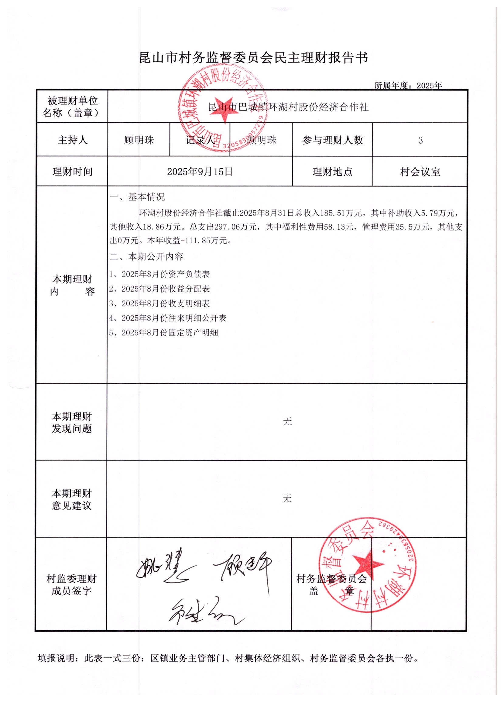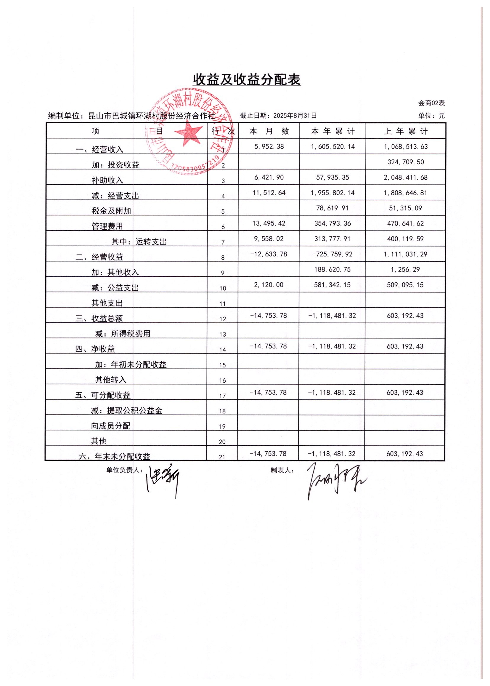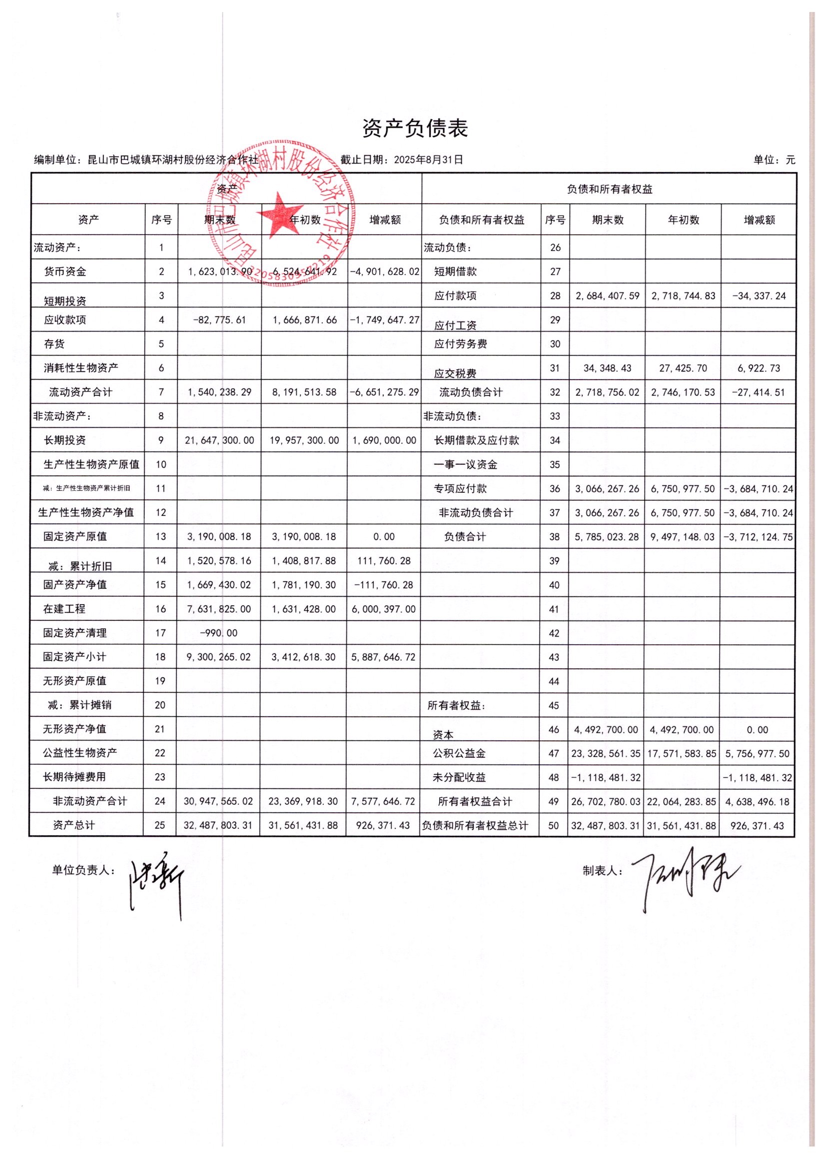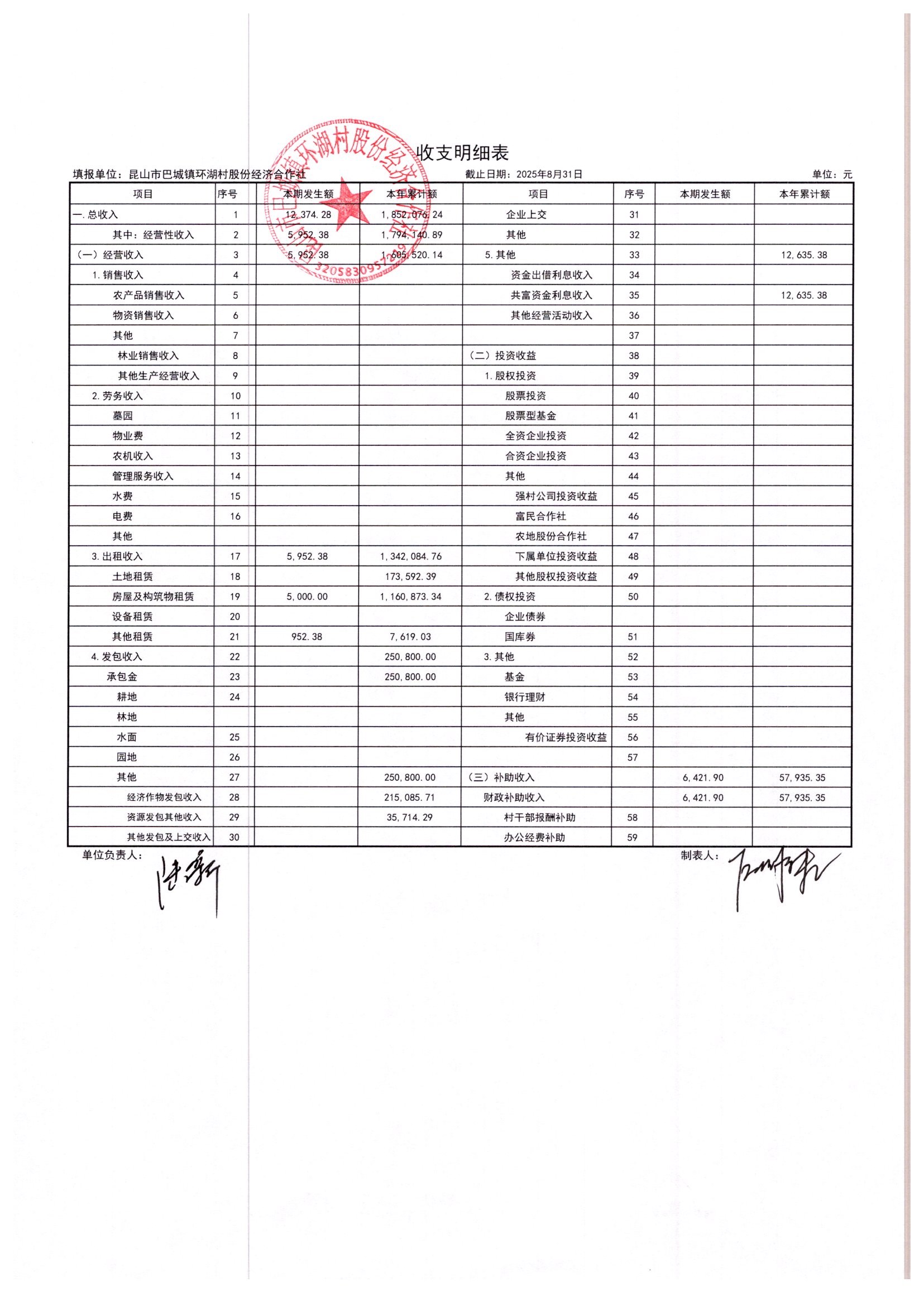 2025年8月環(huán)湖村股份經(jīng)濟合作社財務(wù)公開