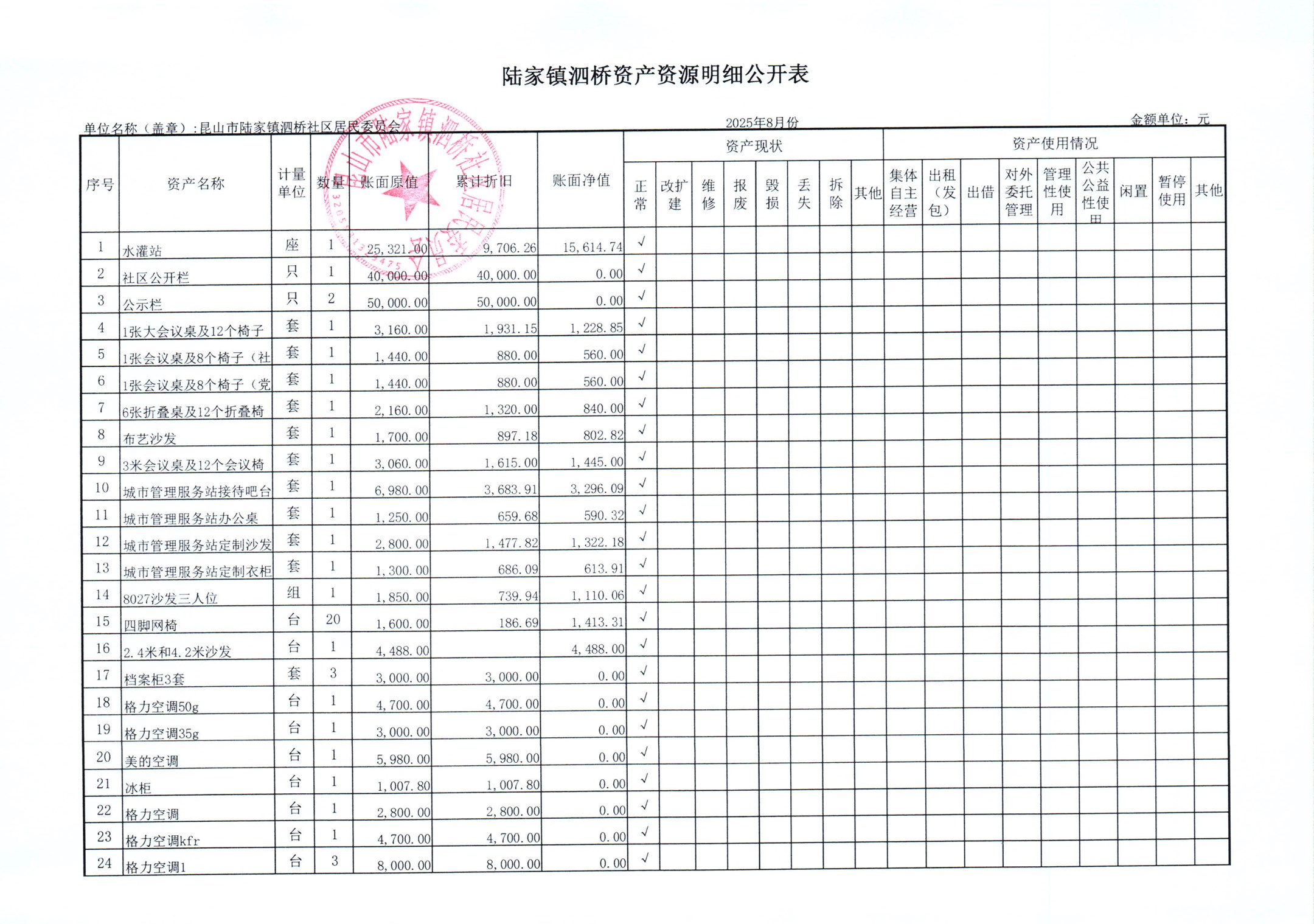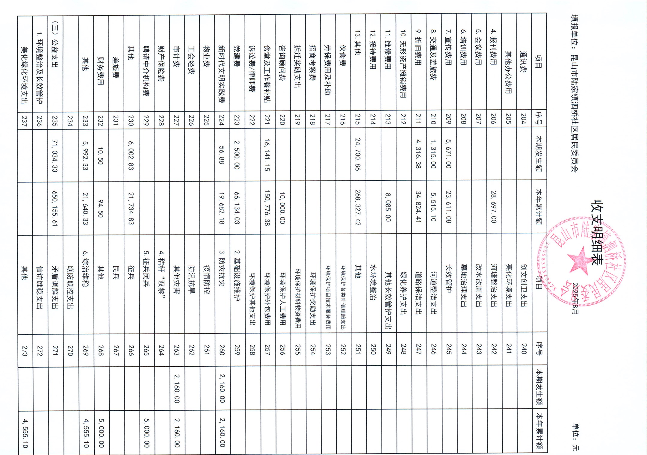 2025年泗橋社區(qū)居民委員會8月財務公開