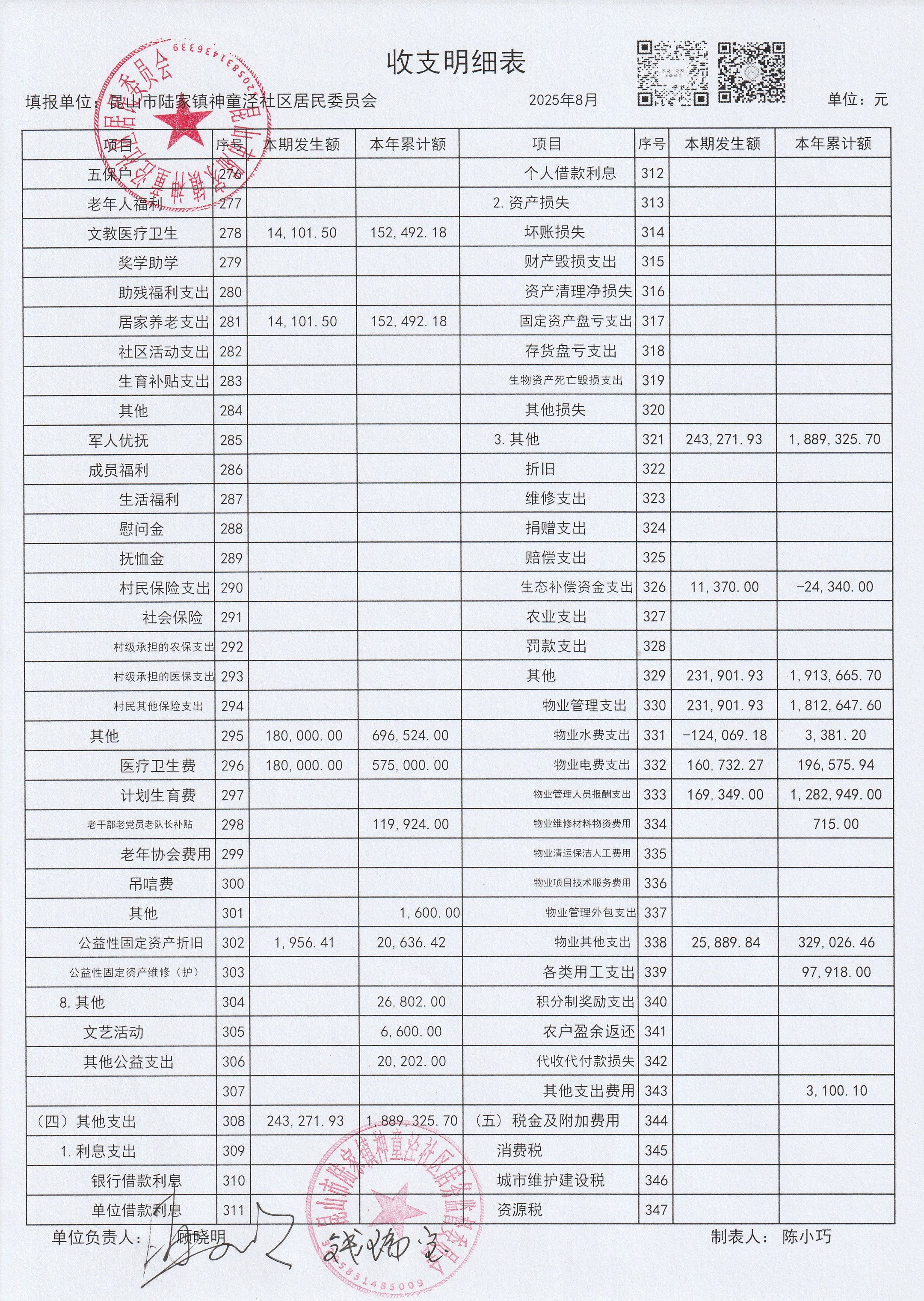 神童涇社區(qū)居民委員會(huì)財(cái)務(wù)公開(kāi)(2025年8月)