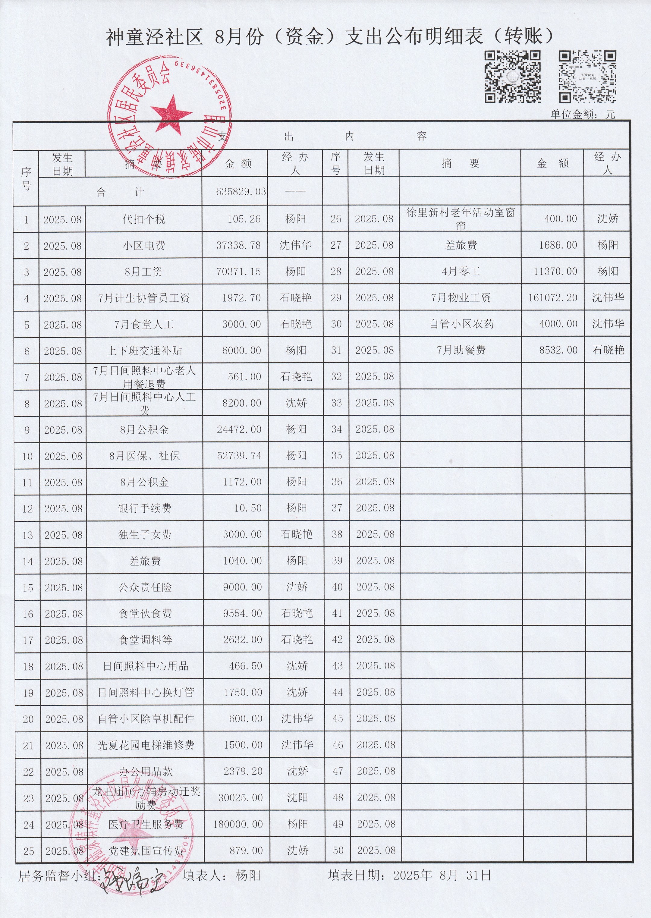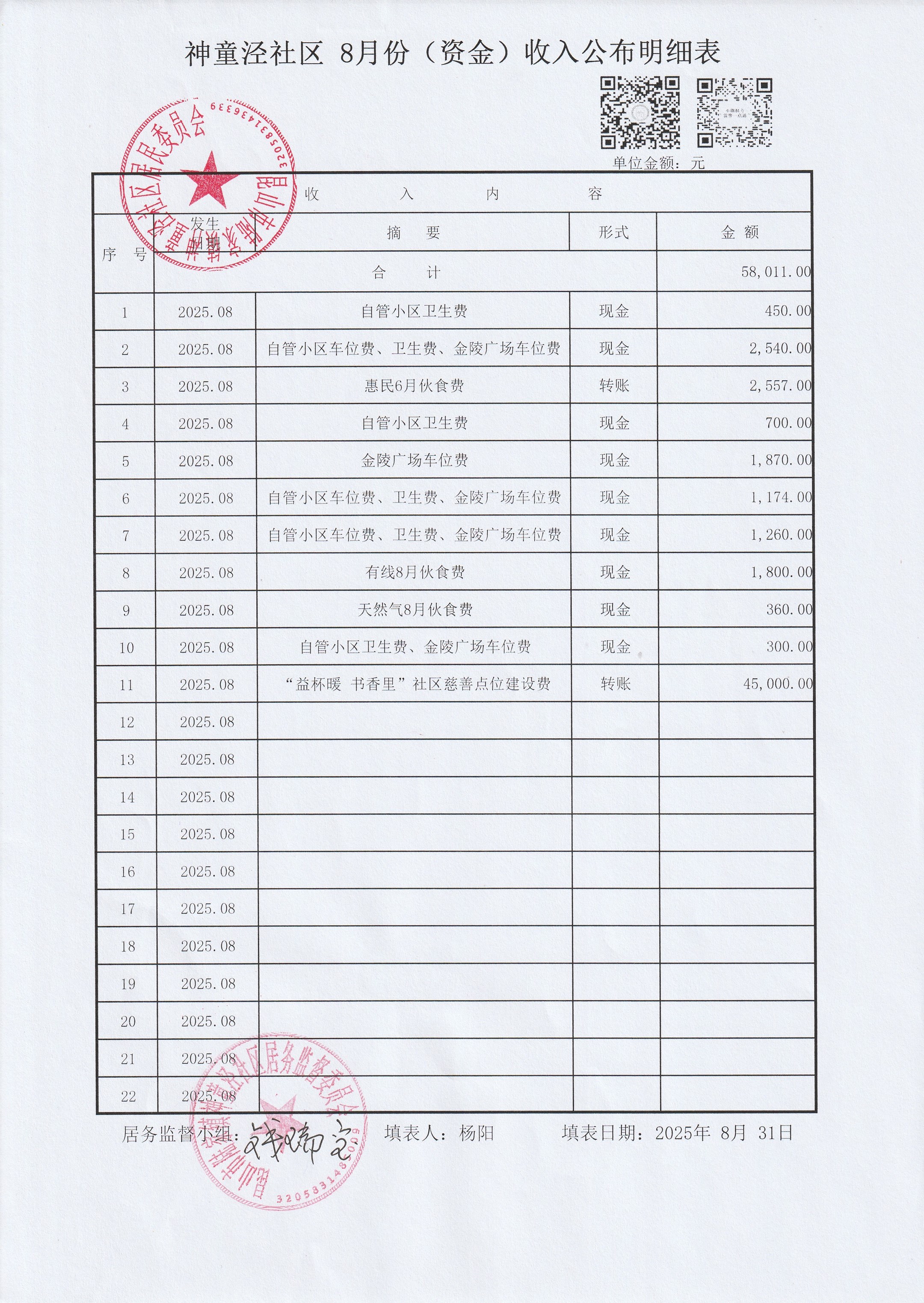 神童涇社區(qū)居民委員會8月份(資金)收支公布明