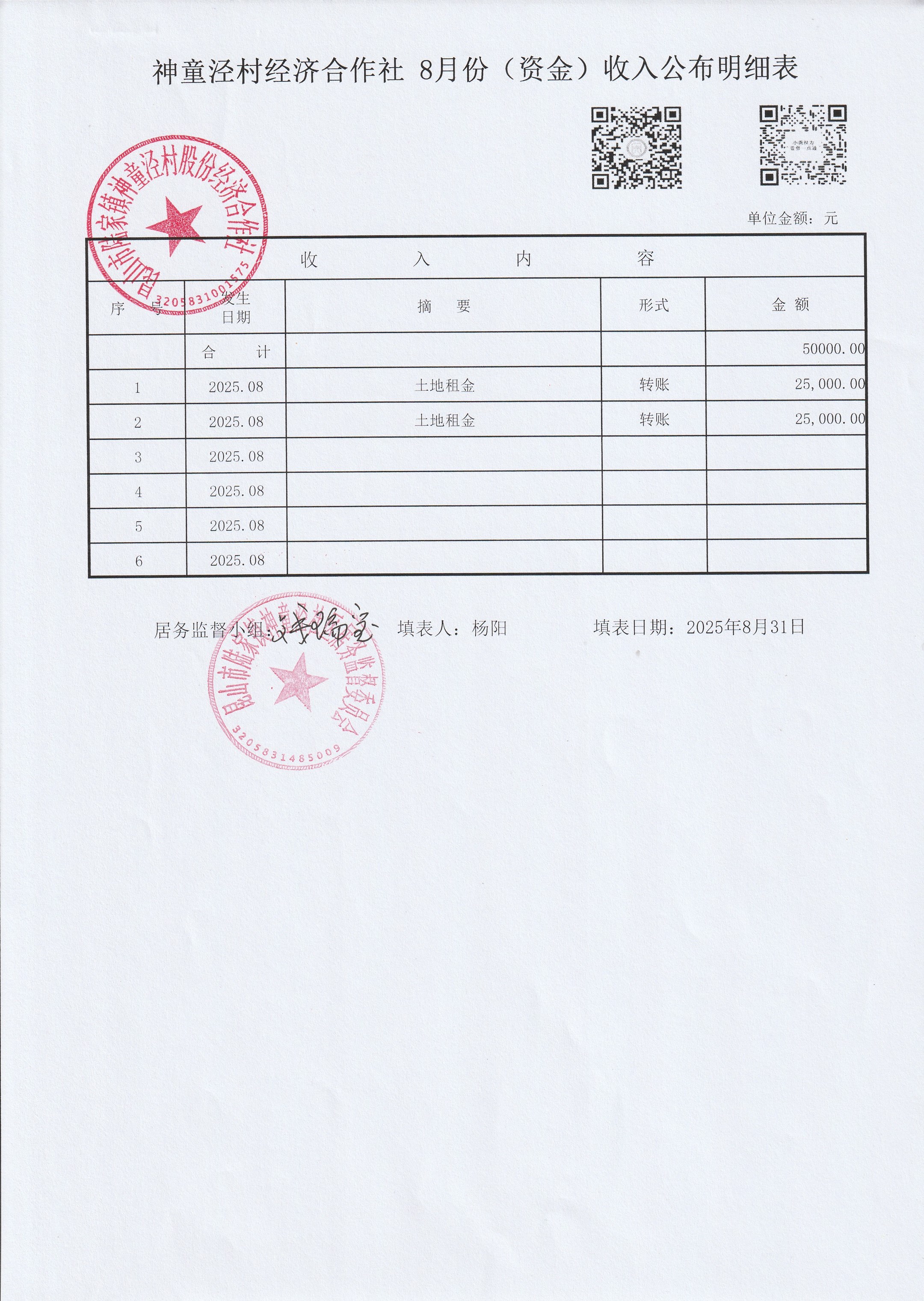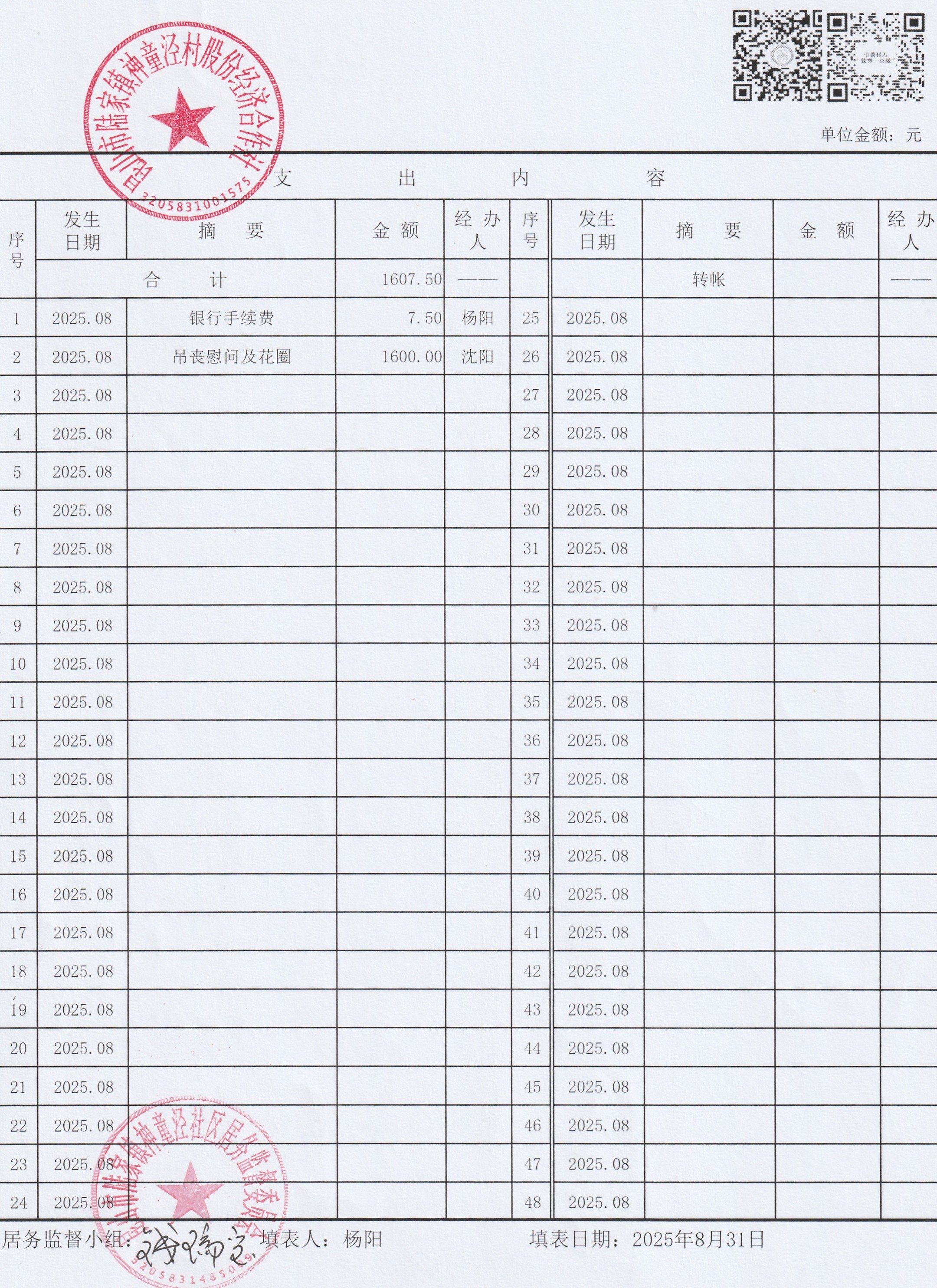 神童涇村股份經(jīng)濟合作社8月份(資金)收支公布明細表