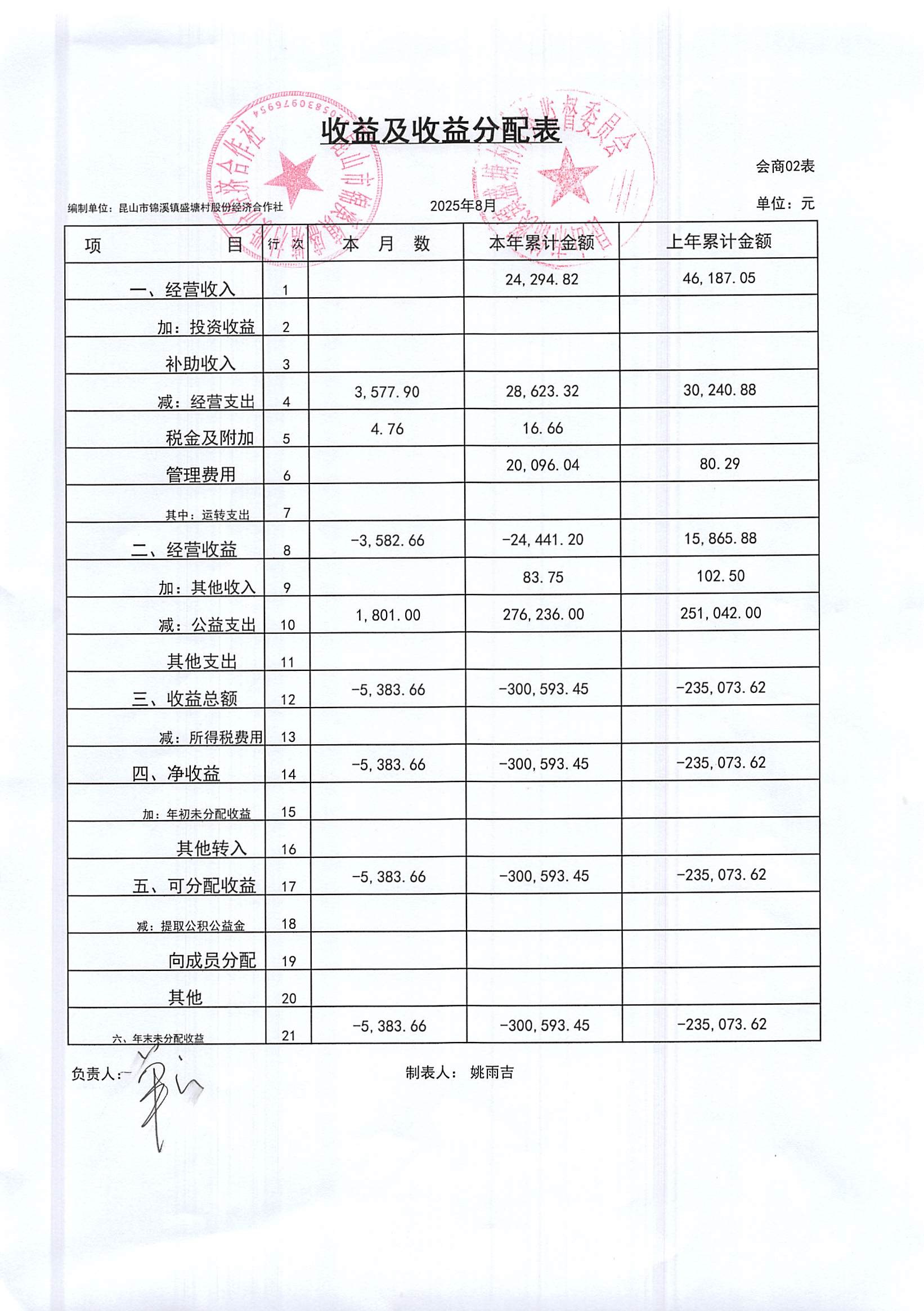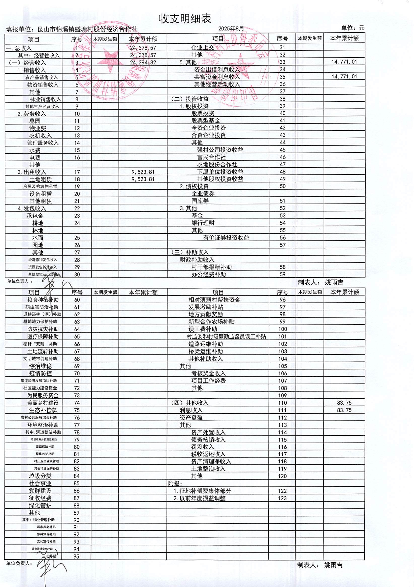 昆山市錦溪鎮(zhèn)盛塘村2025年第三季度8月社區(qū)財務(wù)公開資料