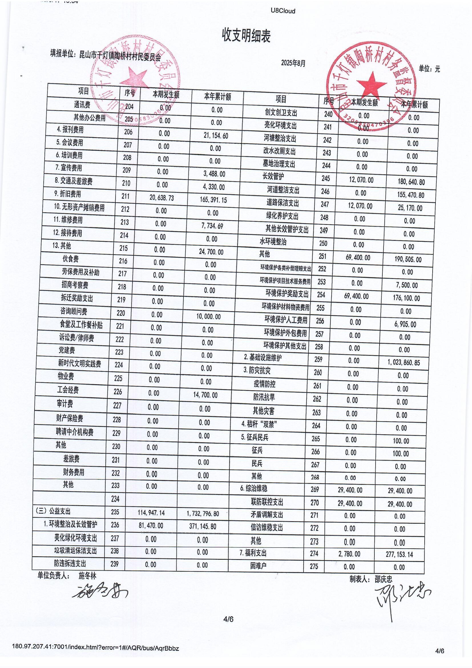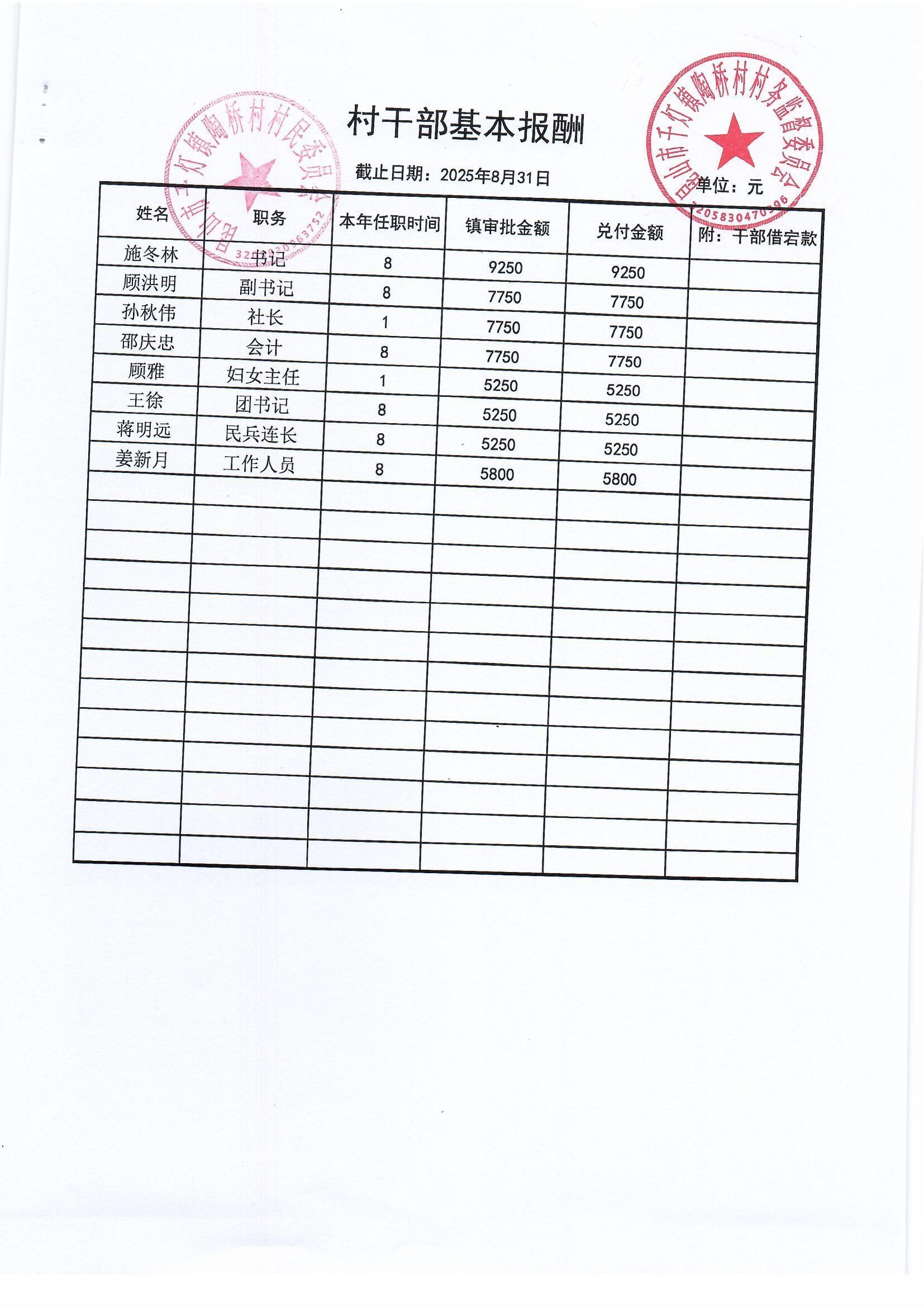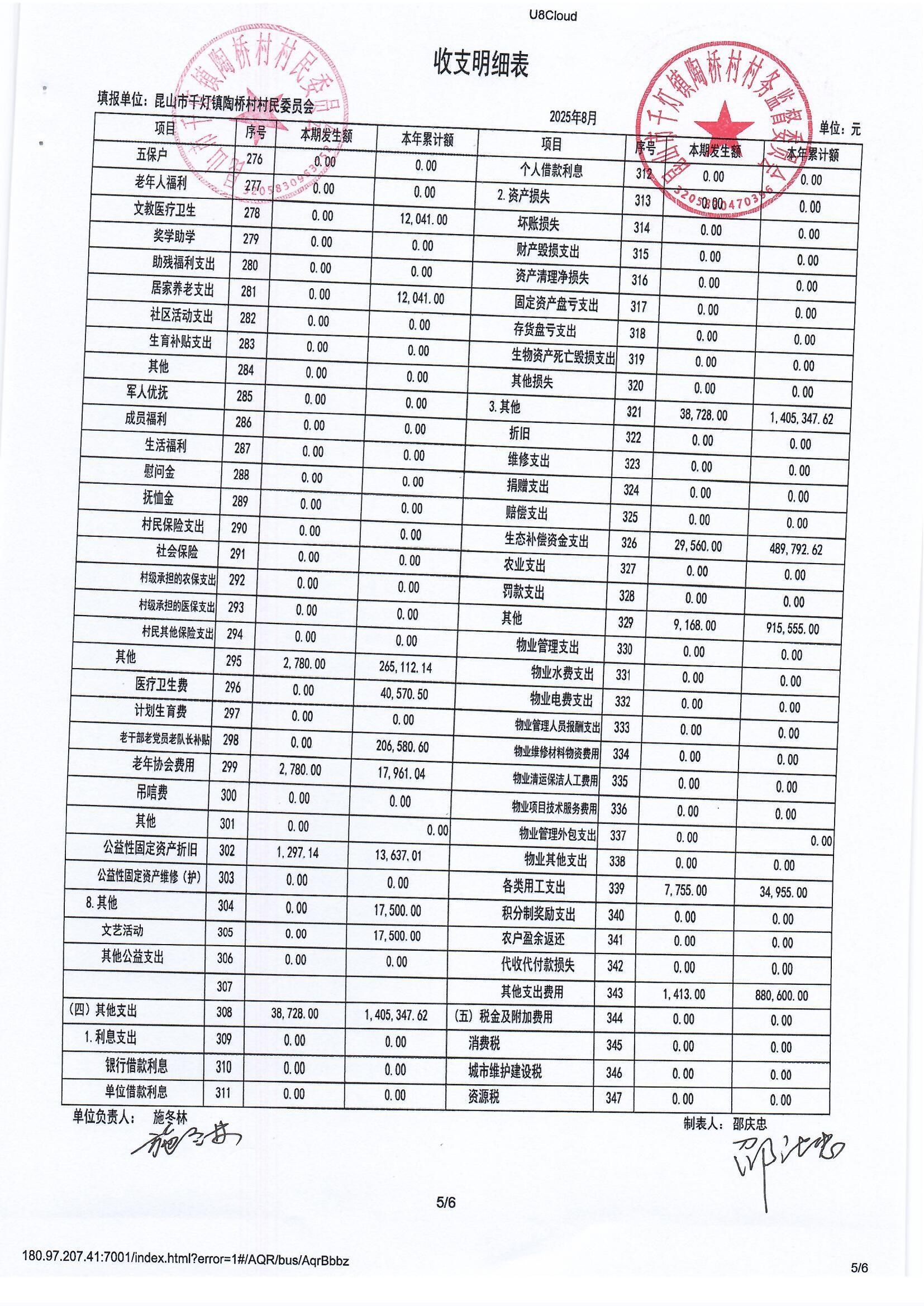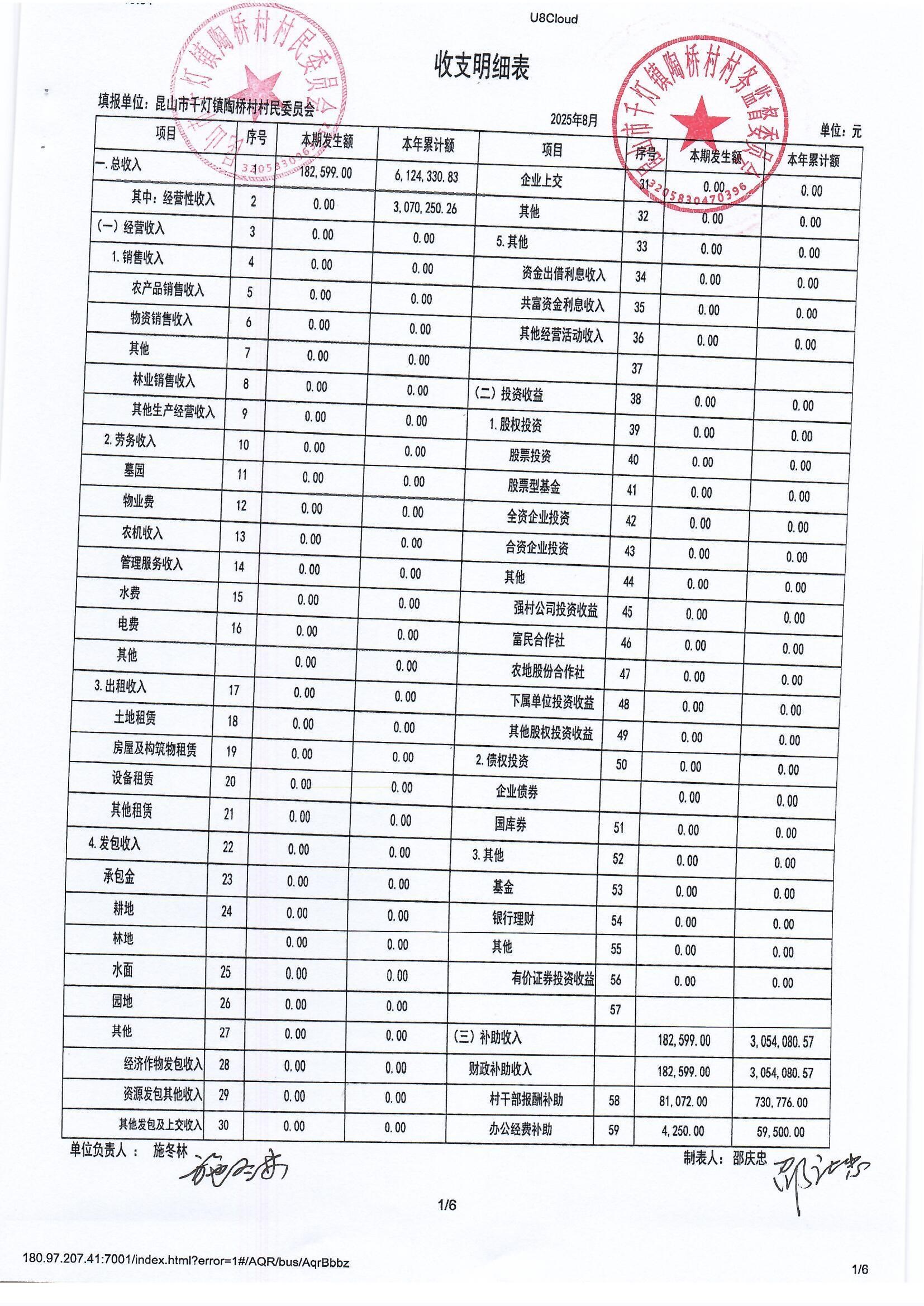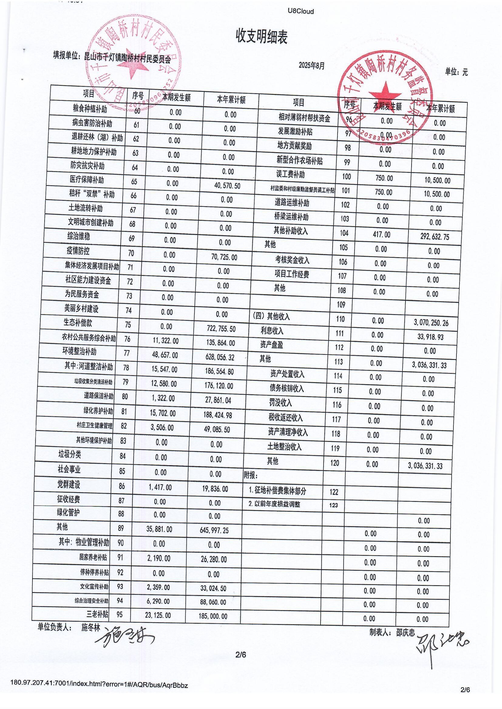2025年8月份陶橋村村民委員會(huì)財(cái)務(wù)公開內(nèi)容: