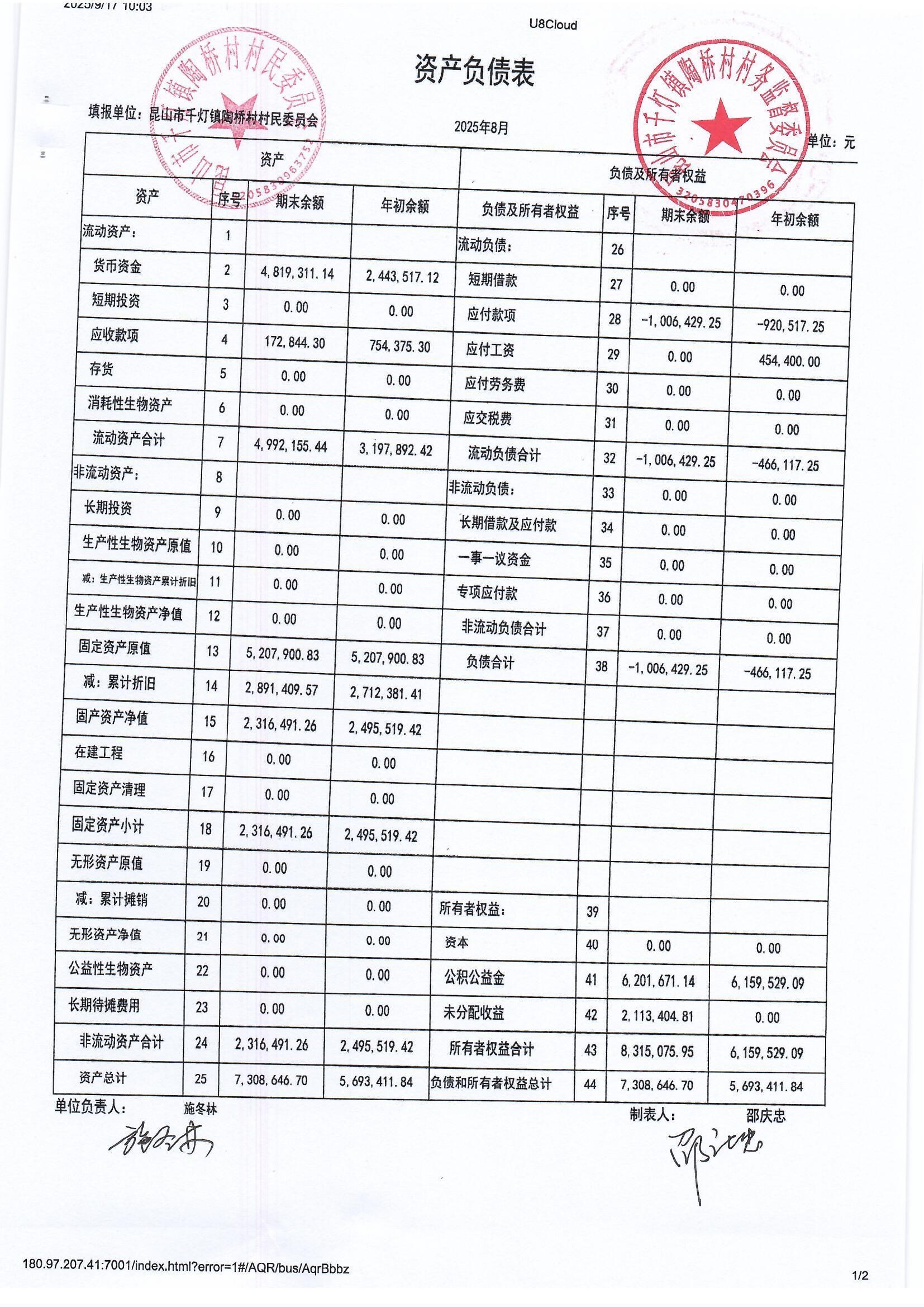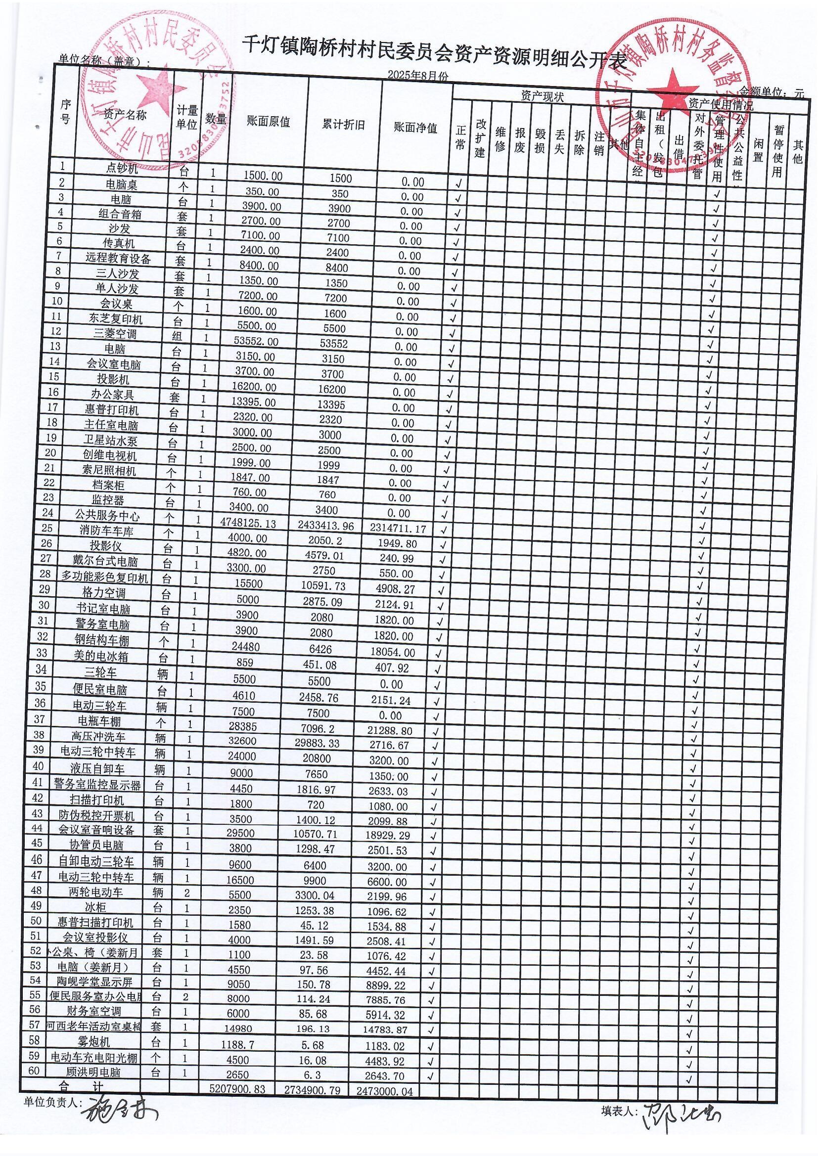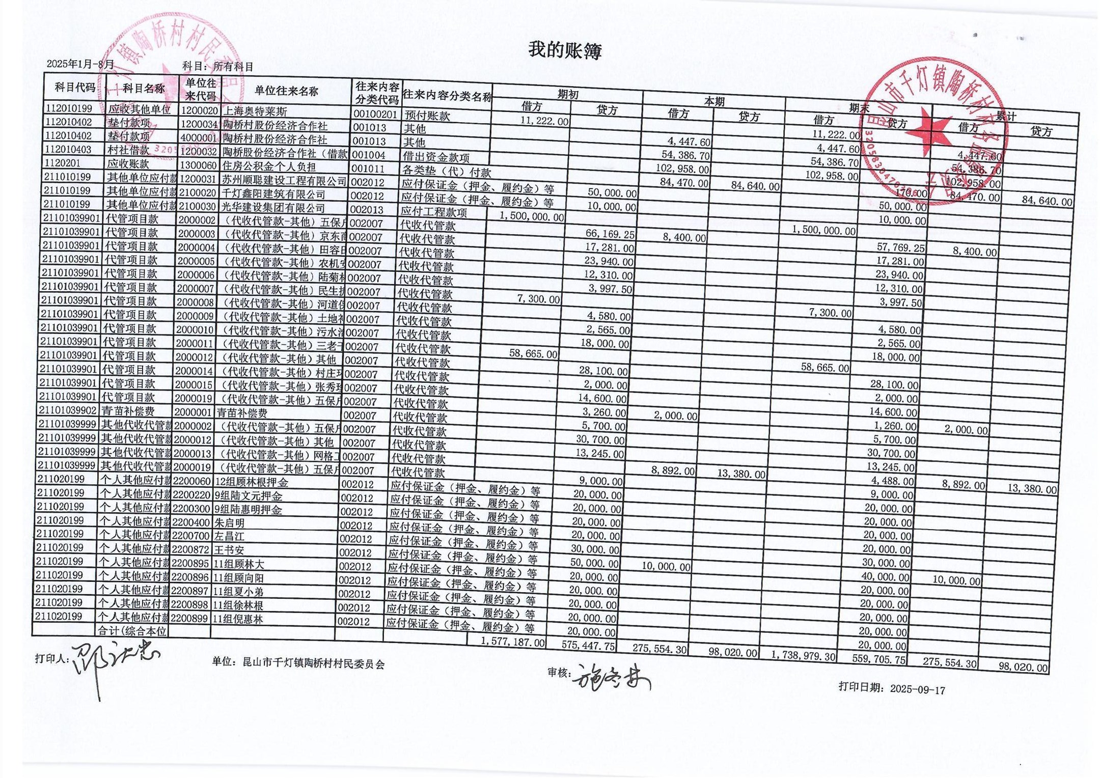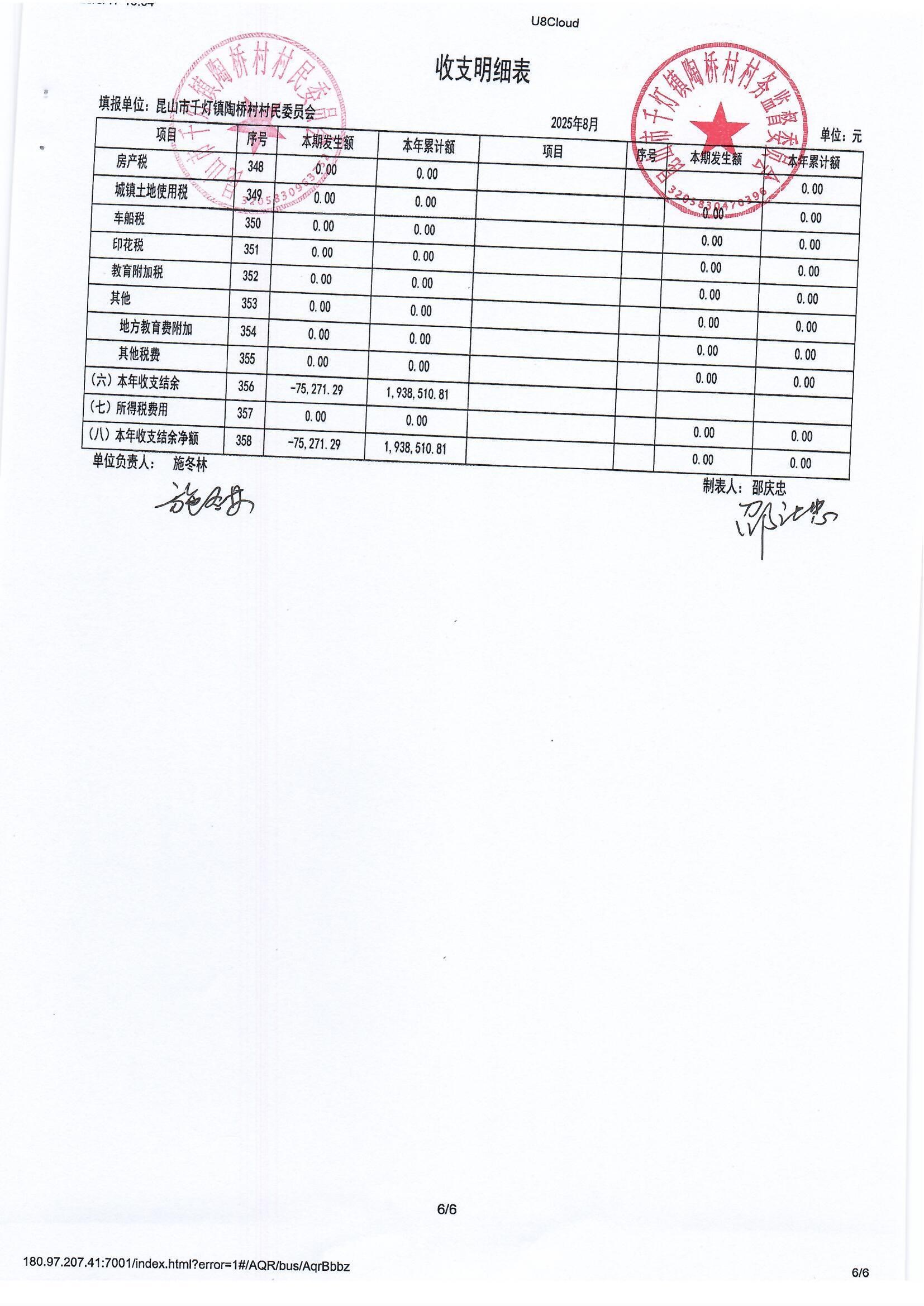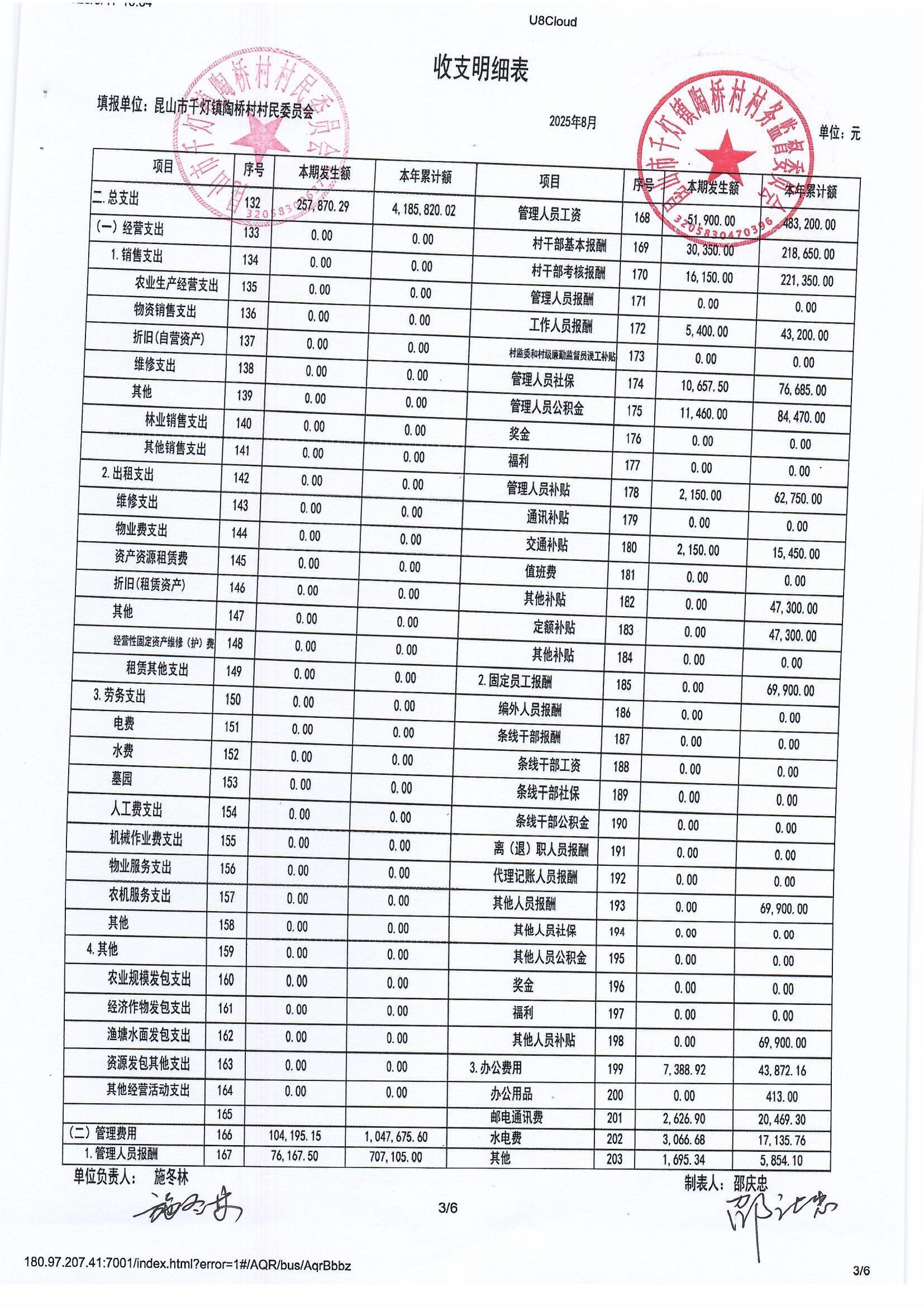 2025年8月份陶橋村村民委員會(huì)財(cái)務(wù)公開內(nèi)容: