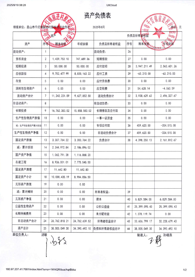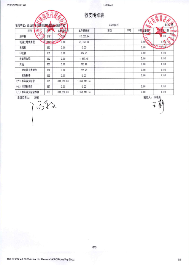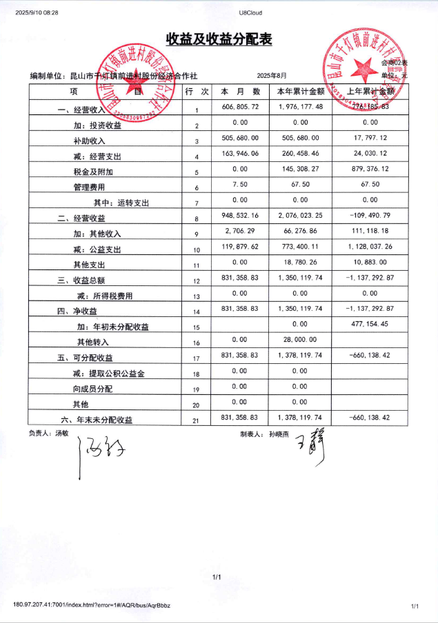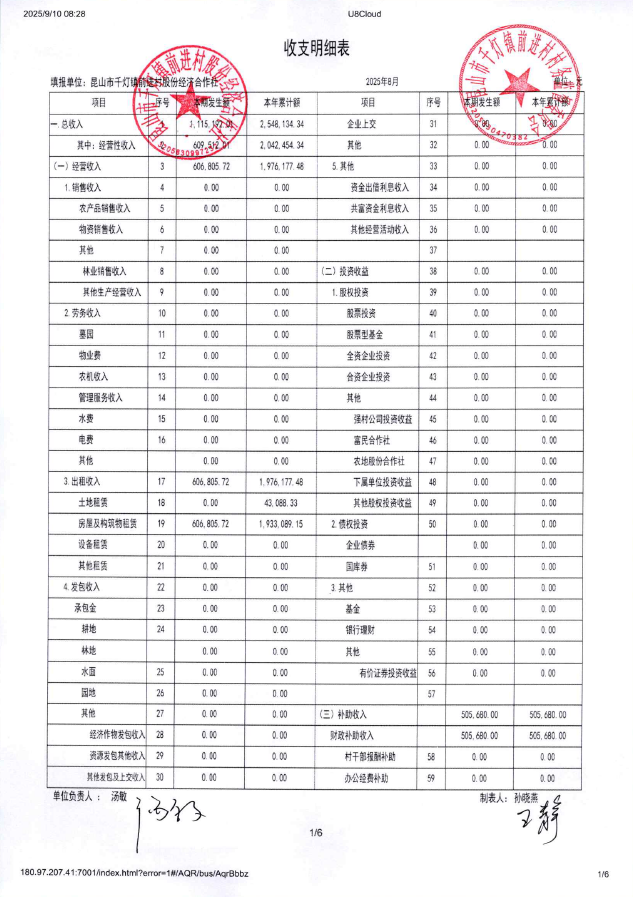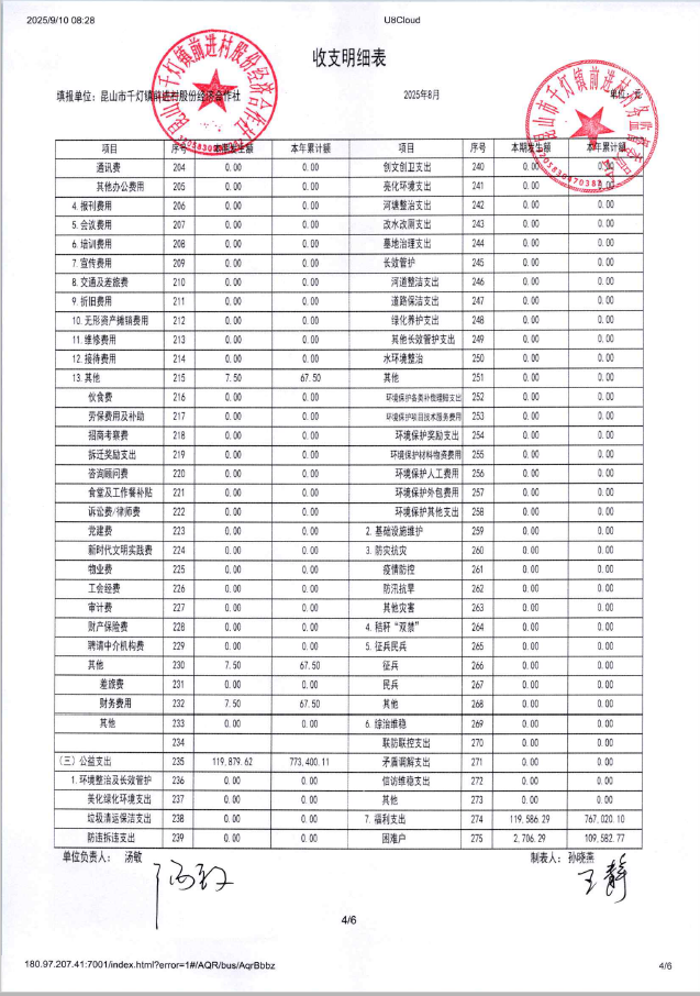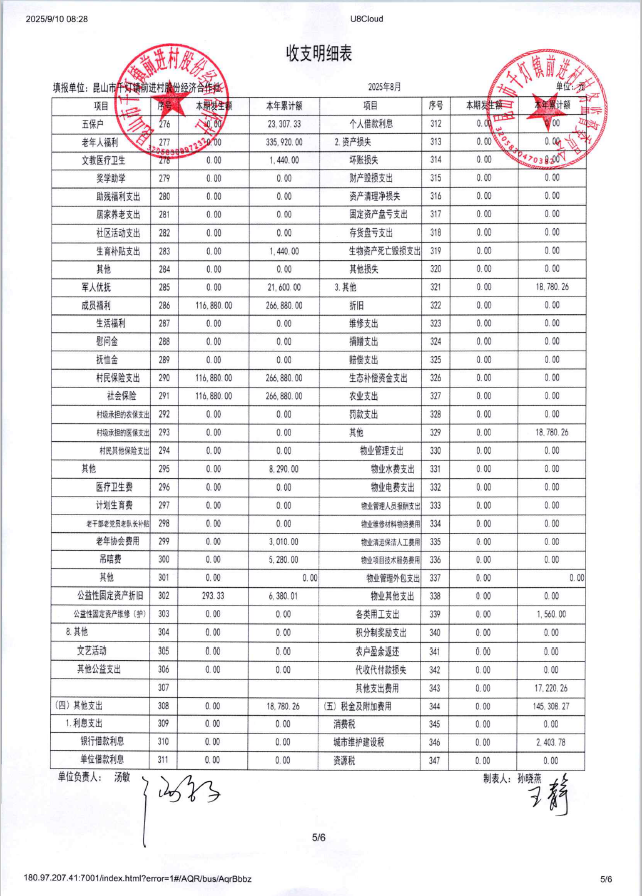 2025年8月前進(jìn)村股份經(jīng)濟(jì)合作社財(cái)務(wù)公開
