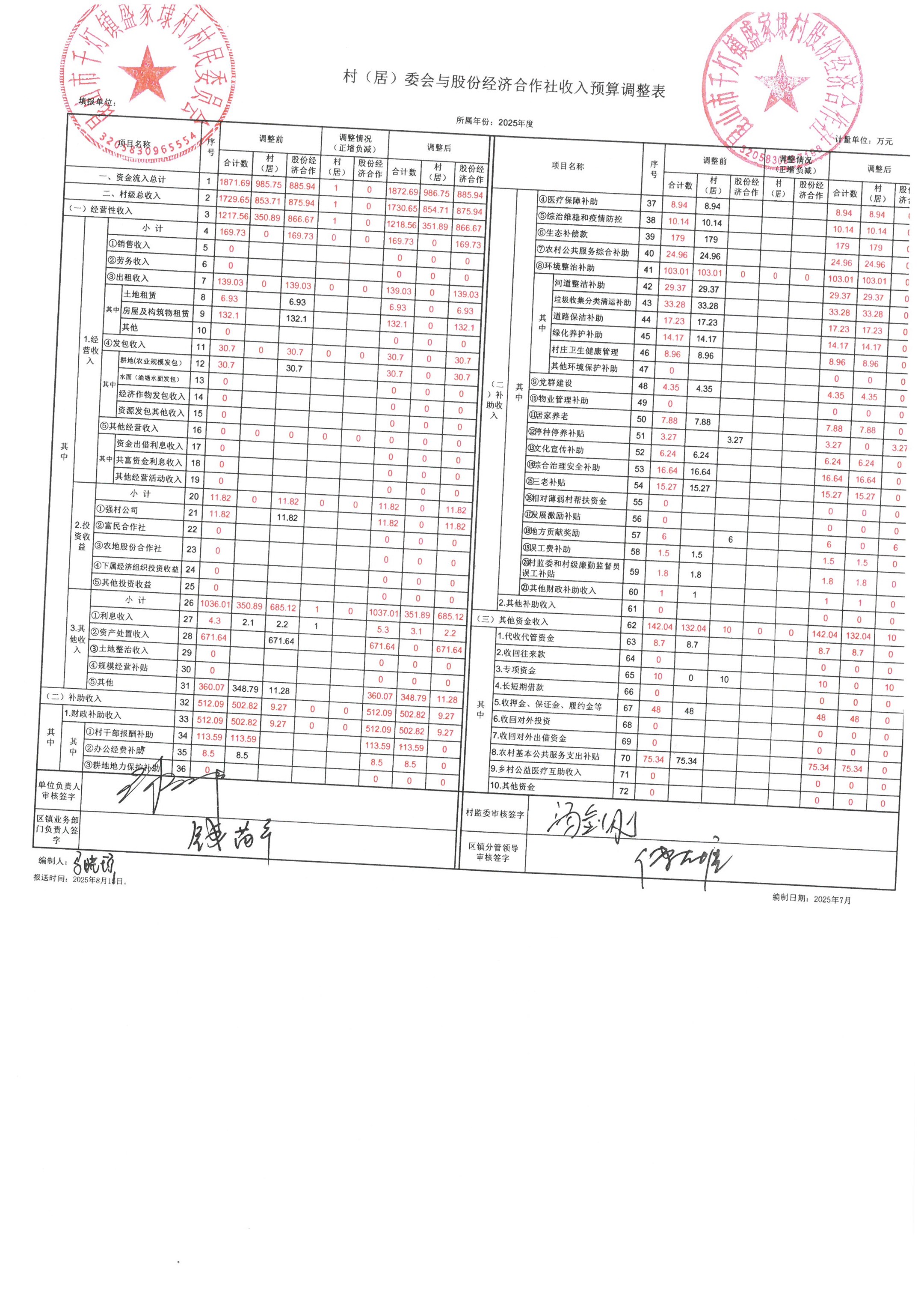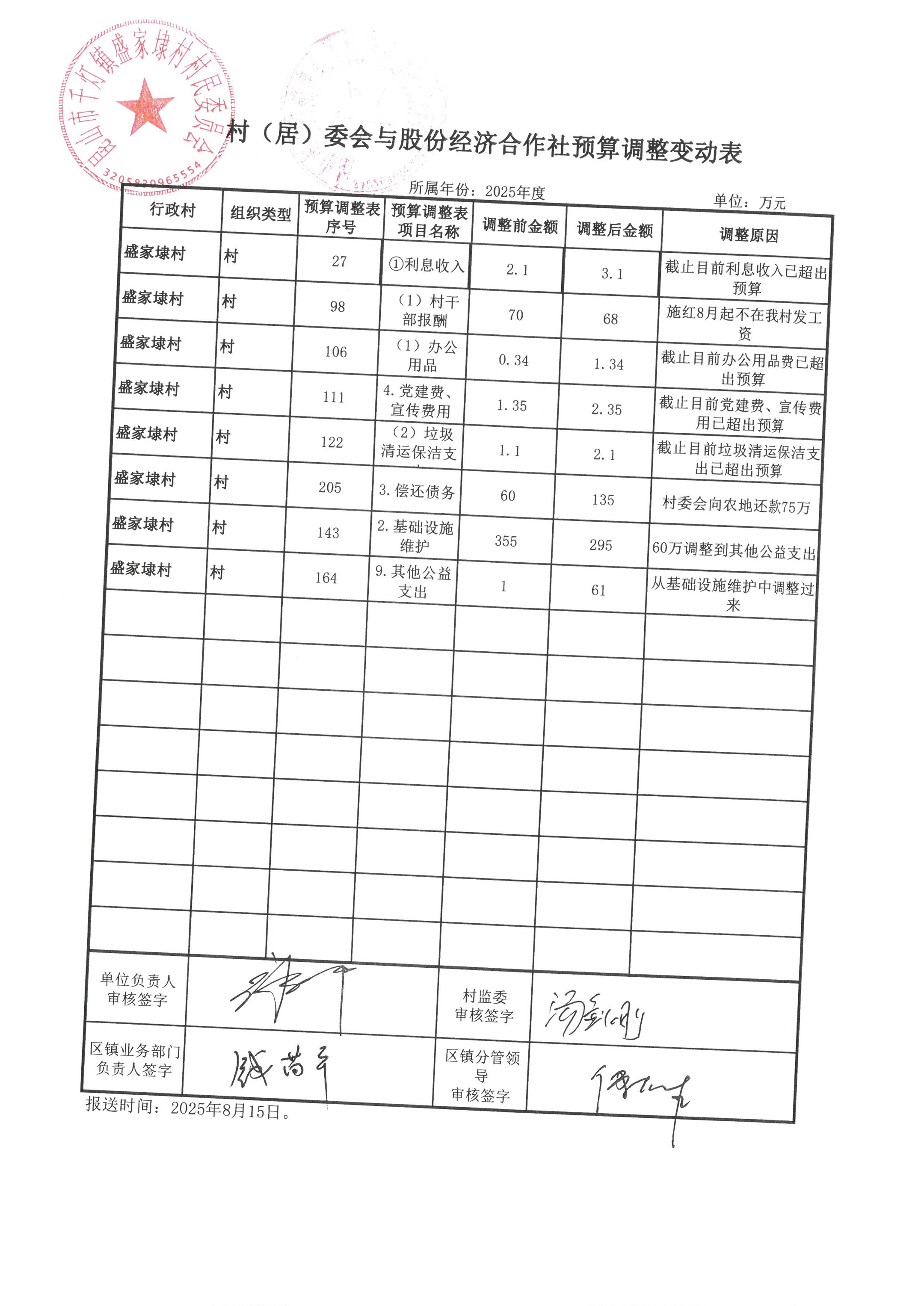 2025年8月份盛家埭村、股份經(jīng)濟合作社預算調整不定期公開