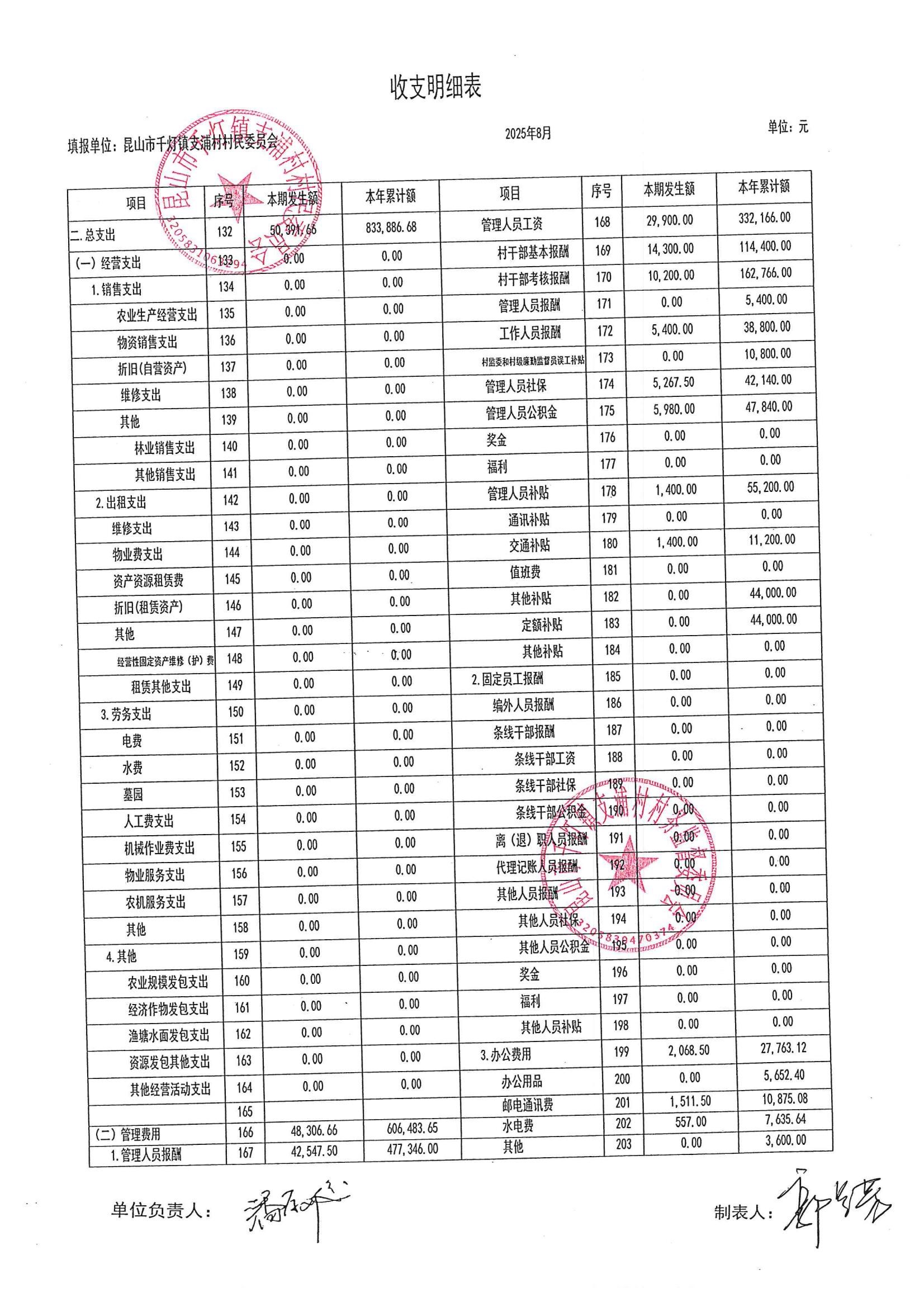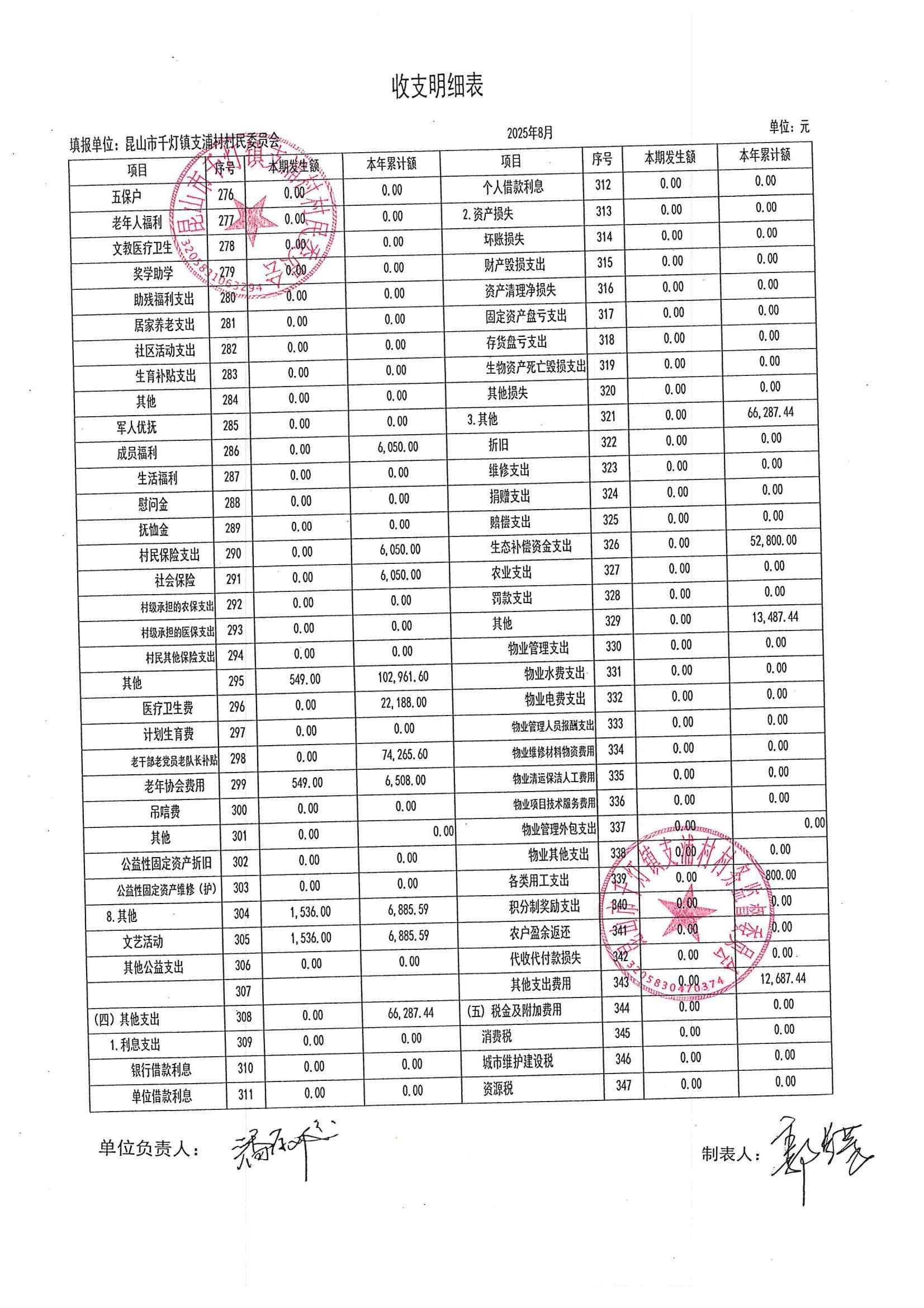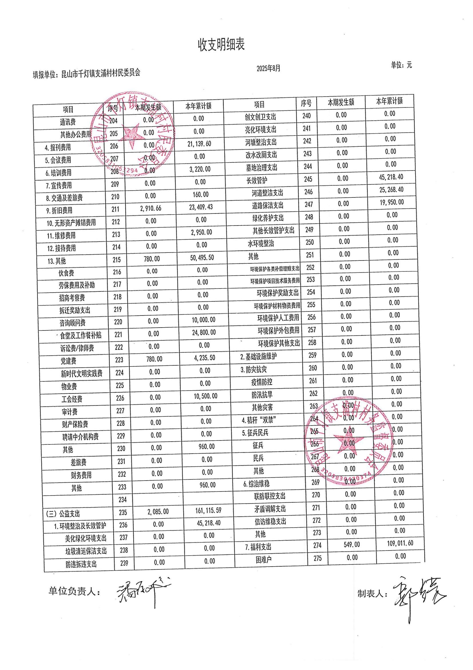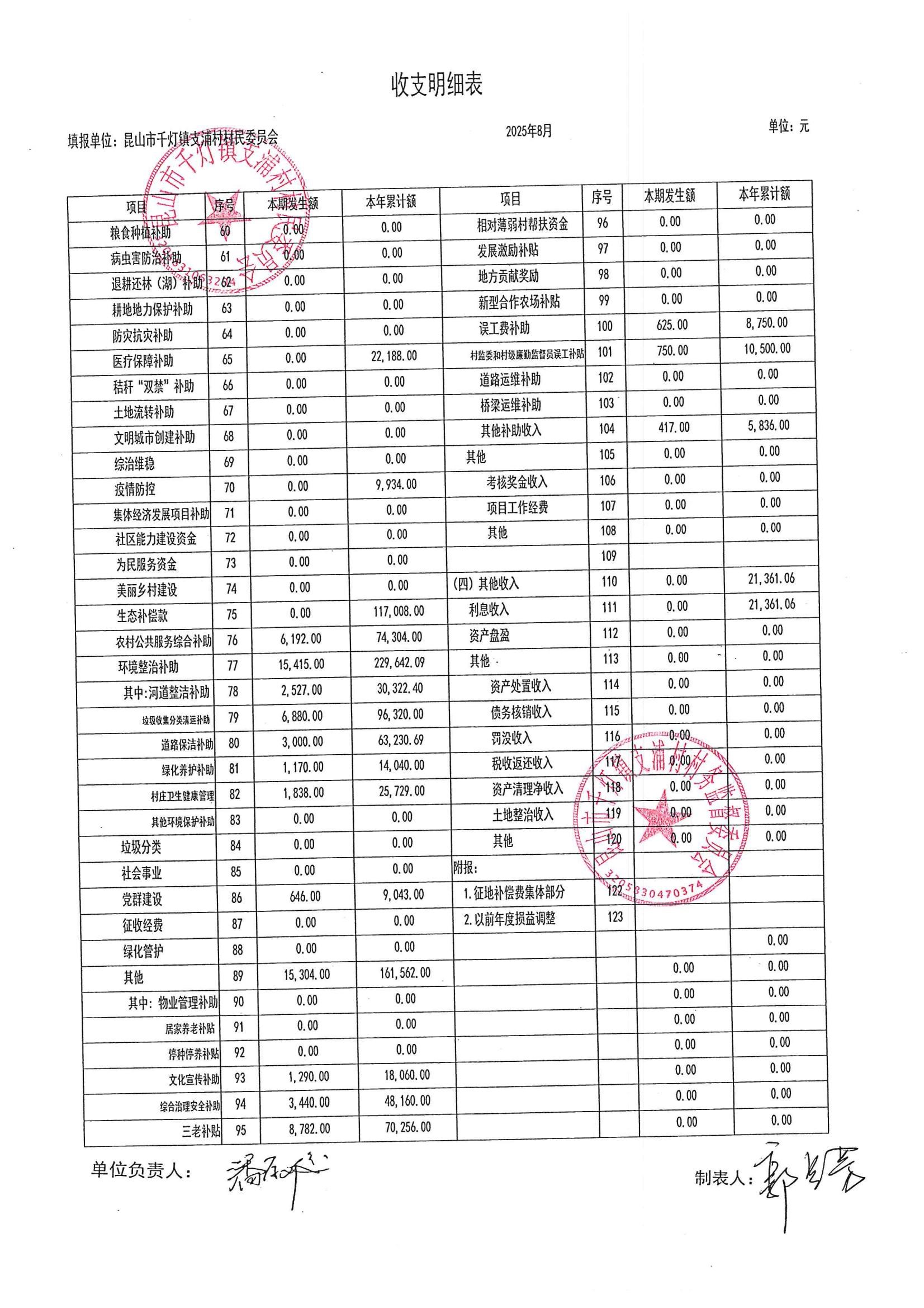 支浦村2025年8月份財(cái)務(wù)公開