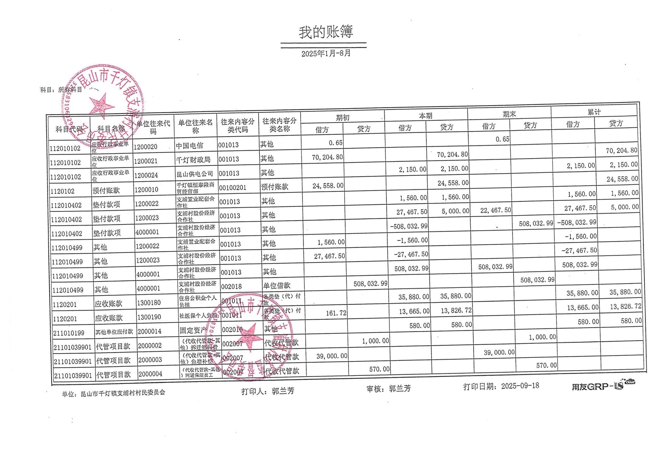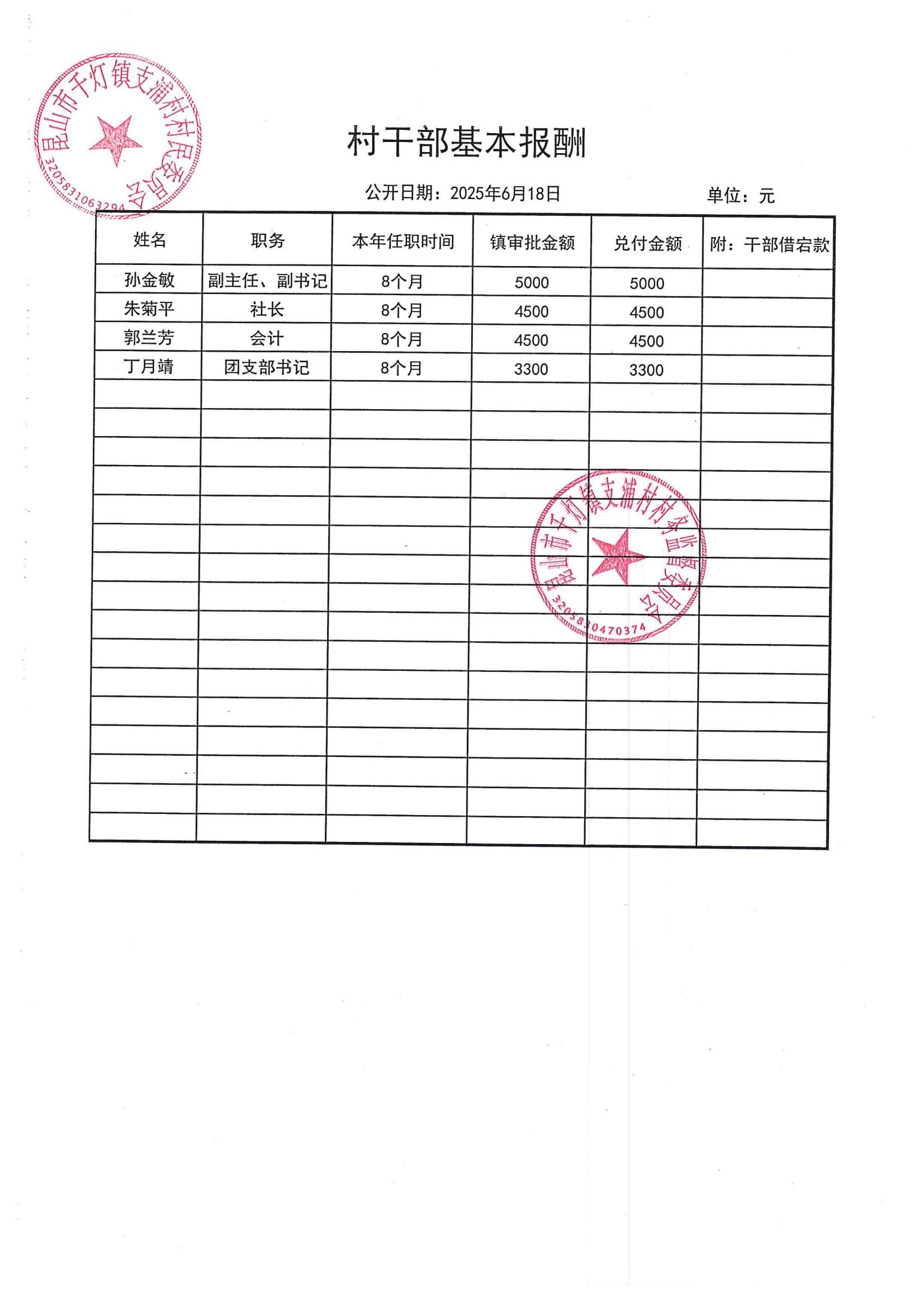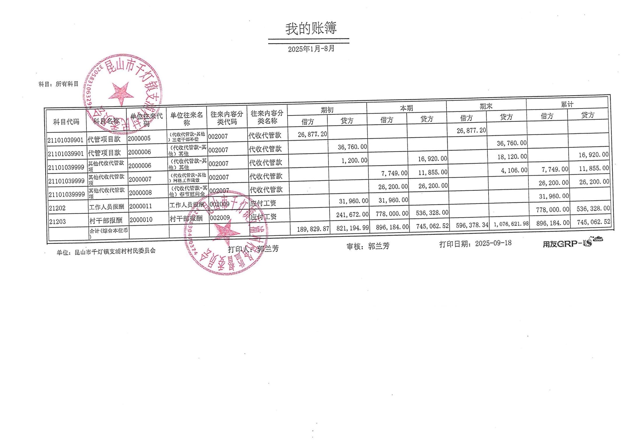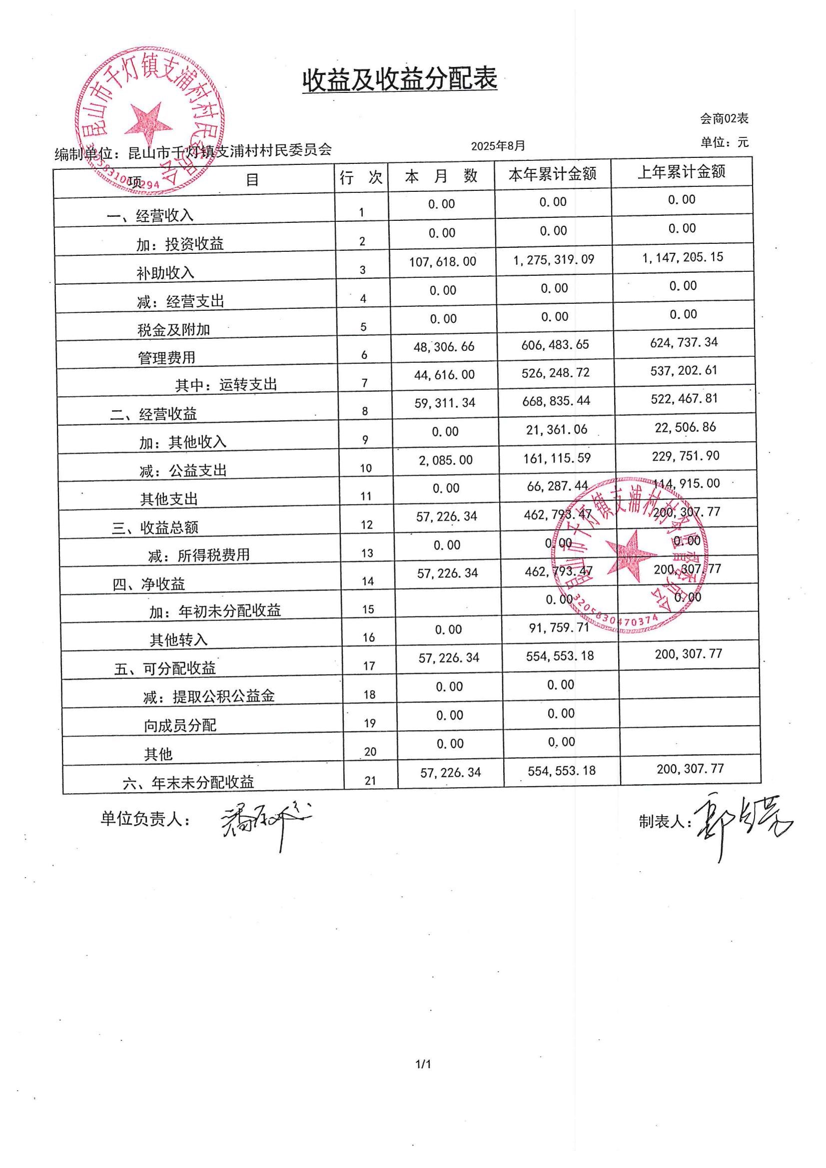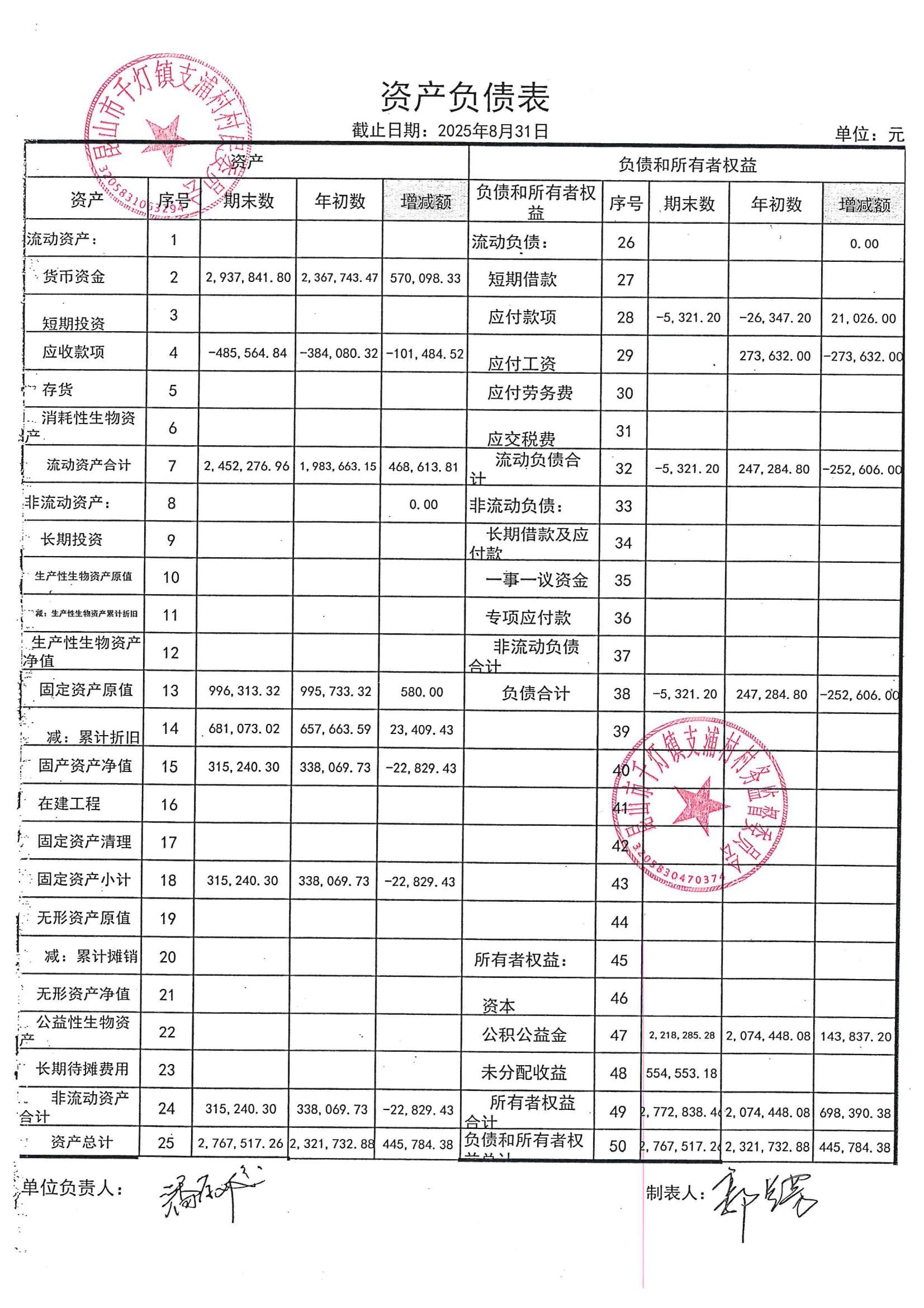 支浦村2025年8月份財(cái)務(wù)公開