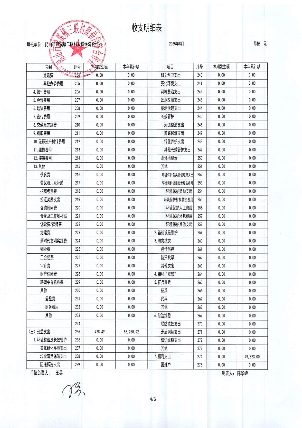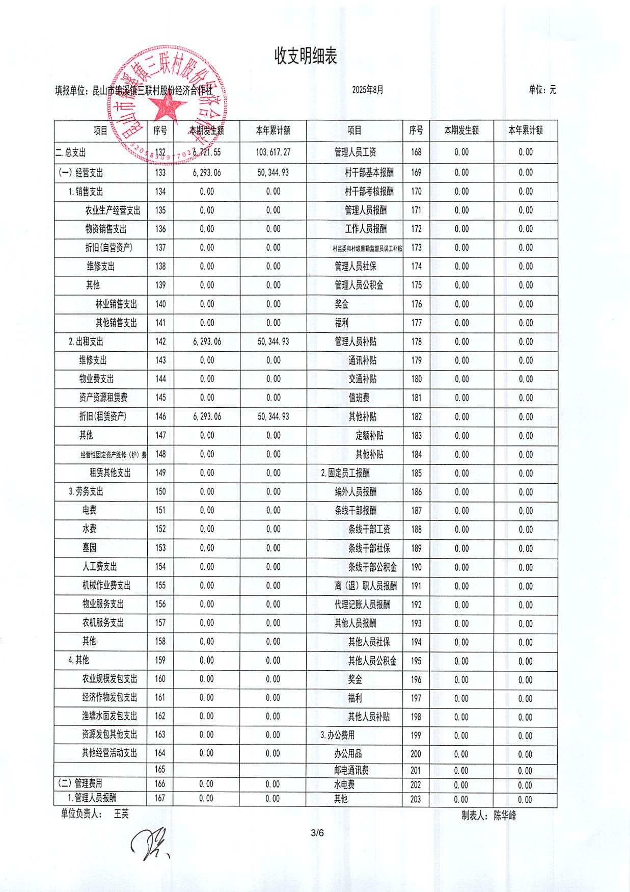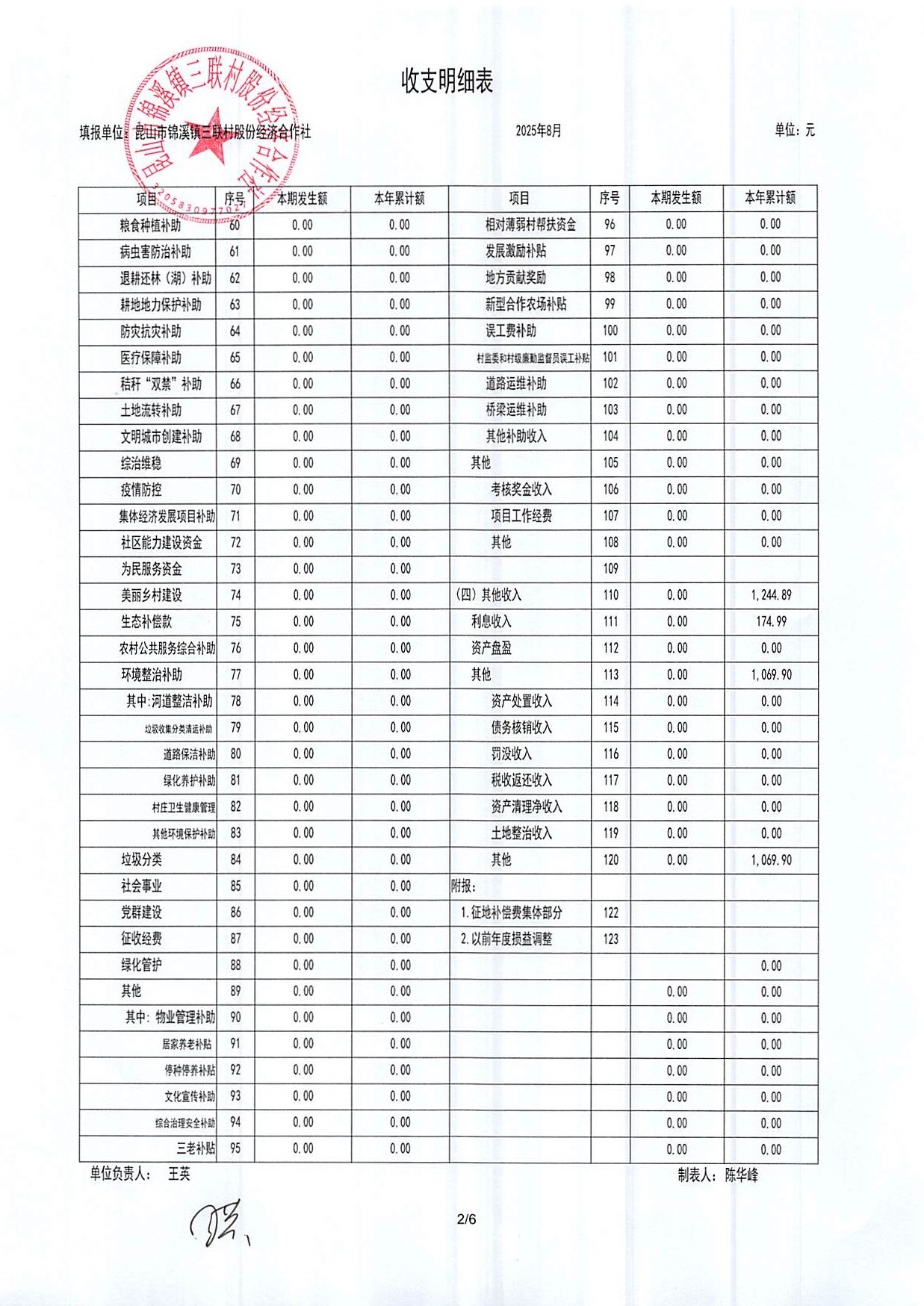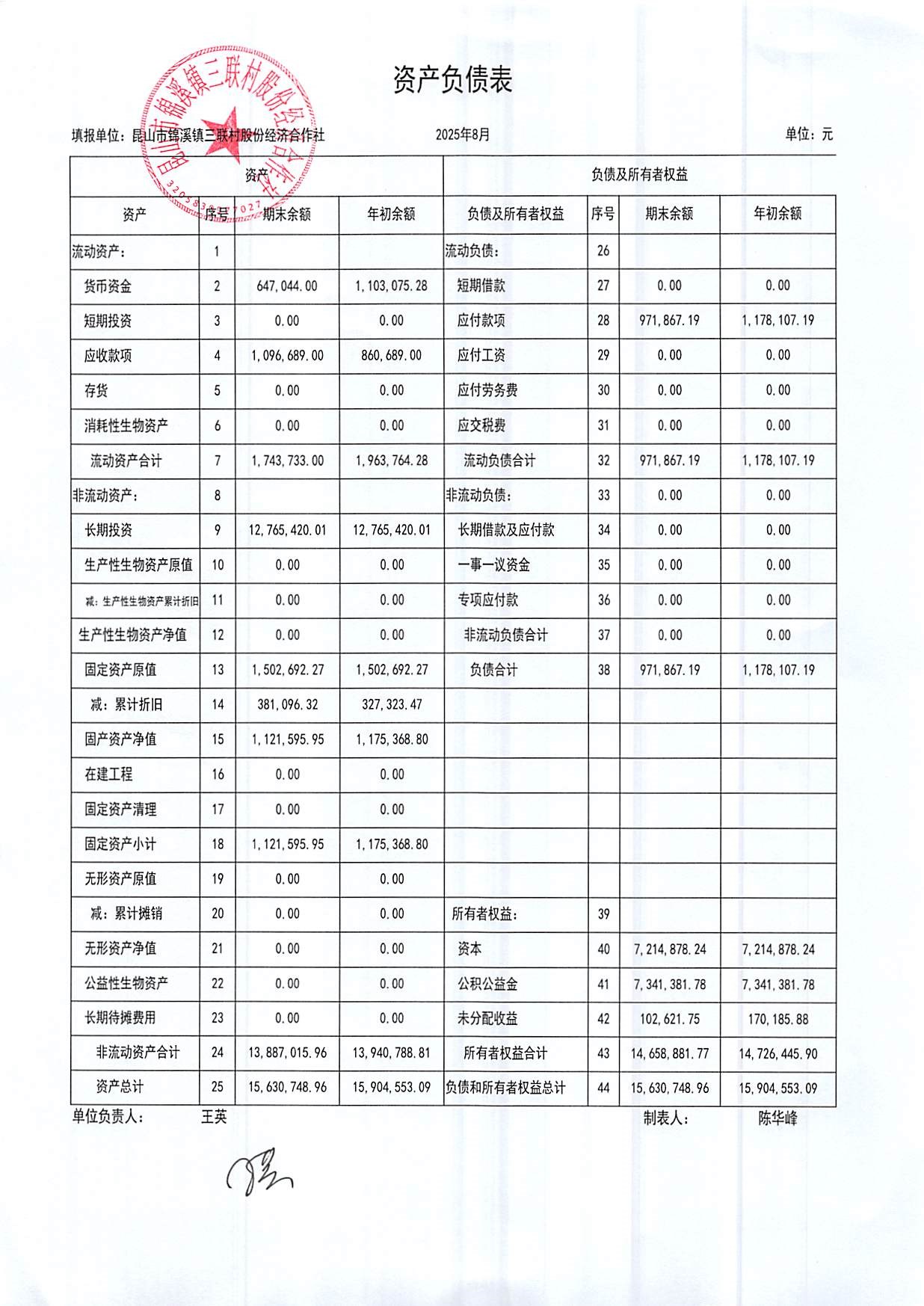 2025年三聯(lián)村股份經(jīng)濟(jì)合作社8月份財(cái)務(wù)公開
