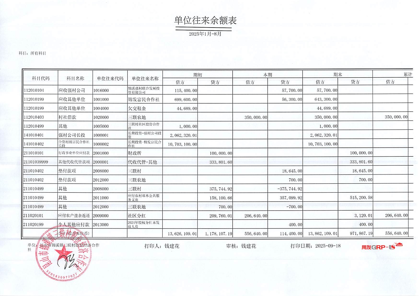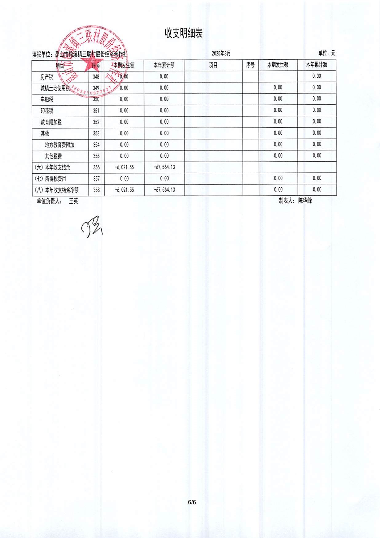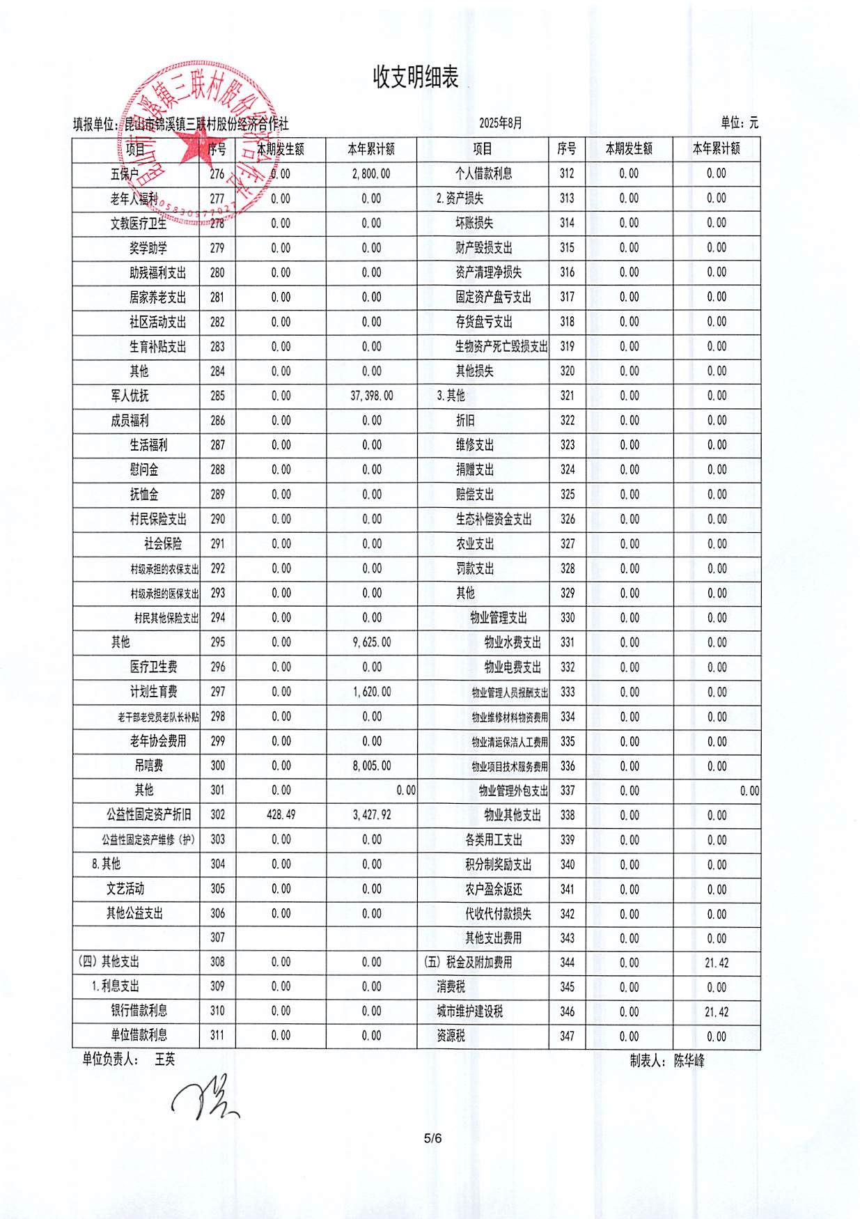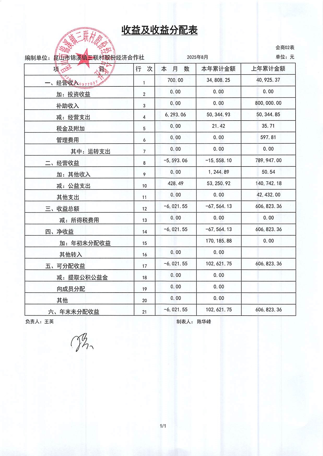 2025年三聯(lián)村股份經(jīng)濟(jì)合作社8月份財(cái)務(wù)公開