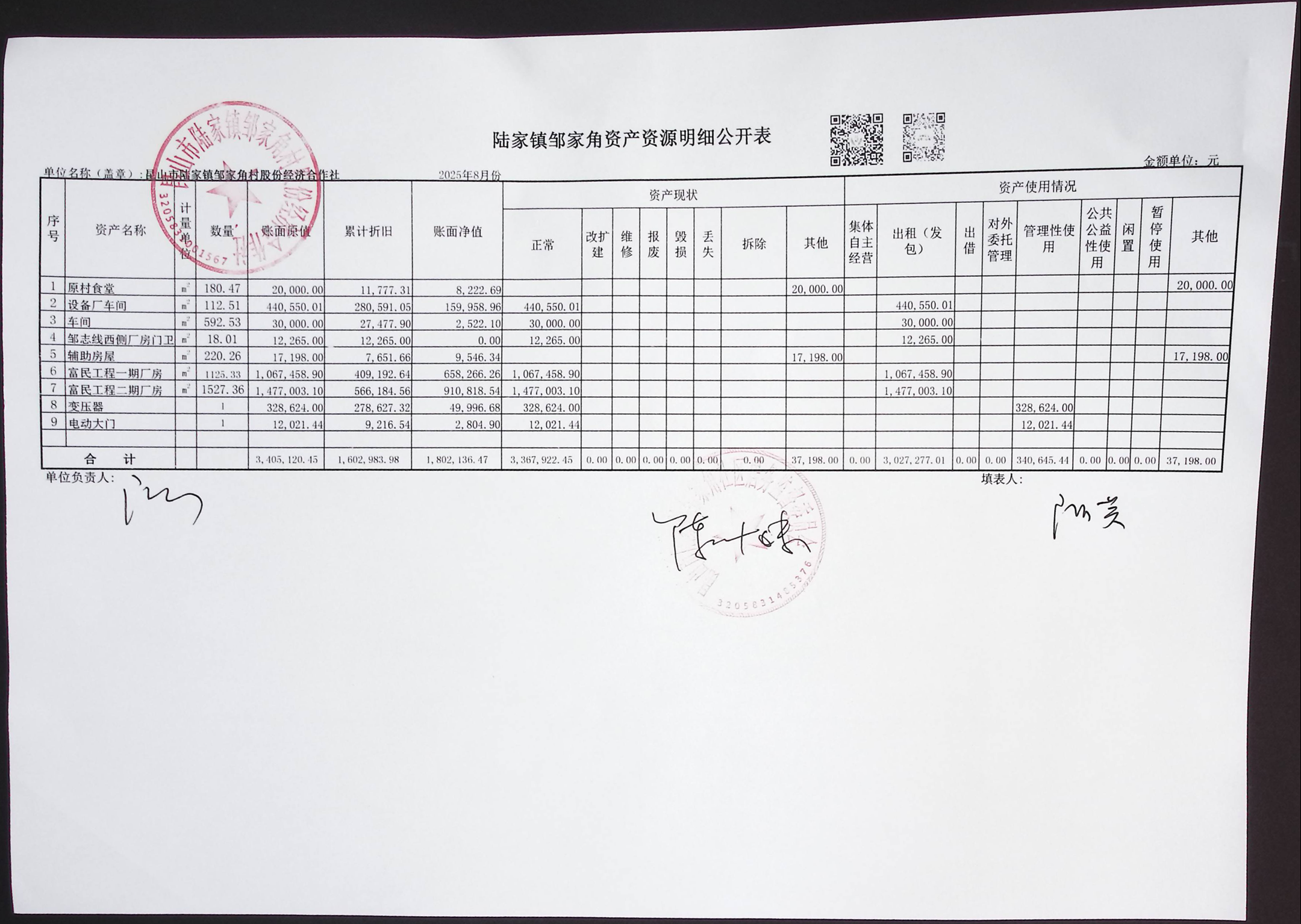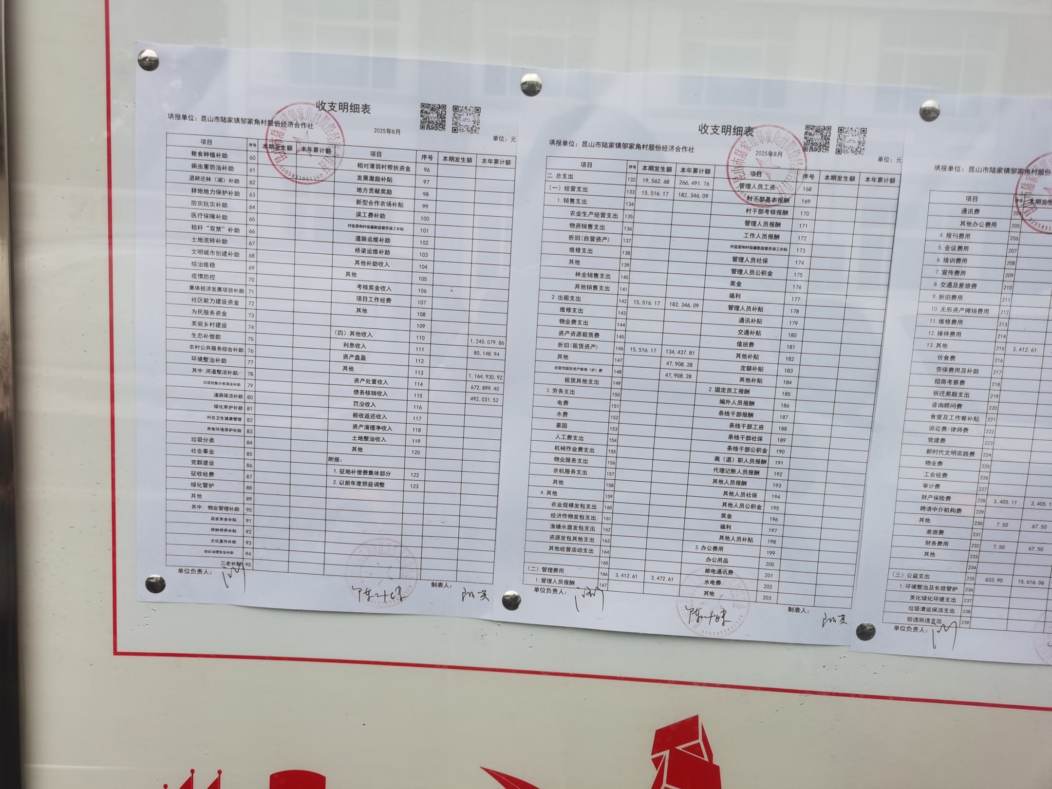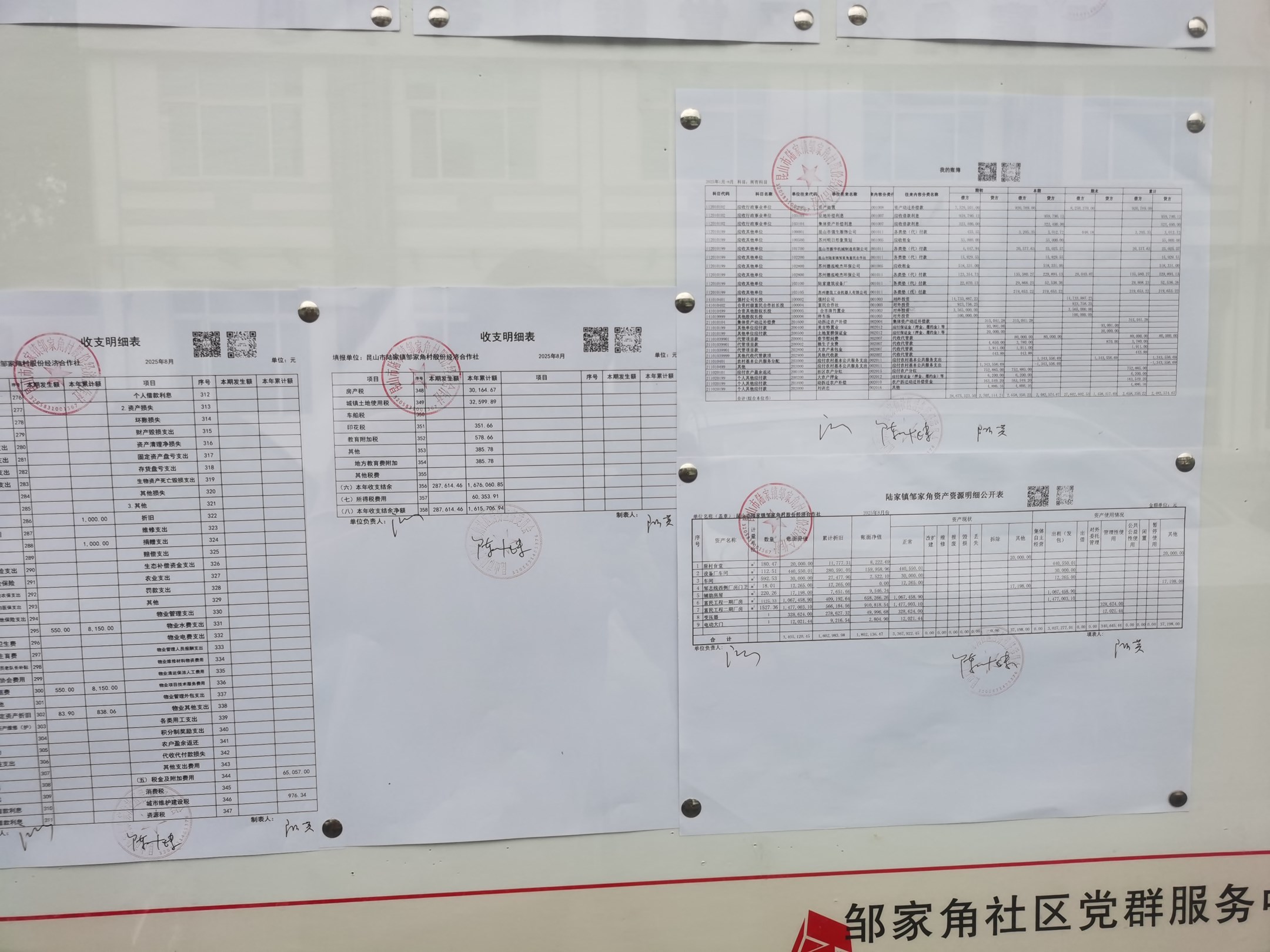 鄒家角村股份經(jīng)濟(jì)合作社2025年8月份財(cái)務(wù)公開