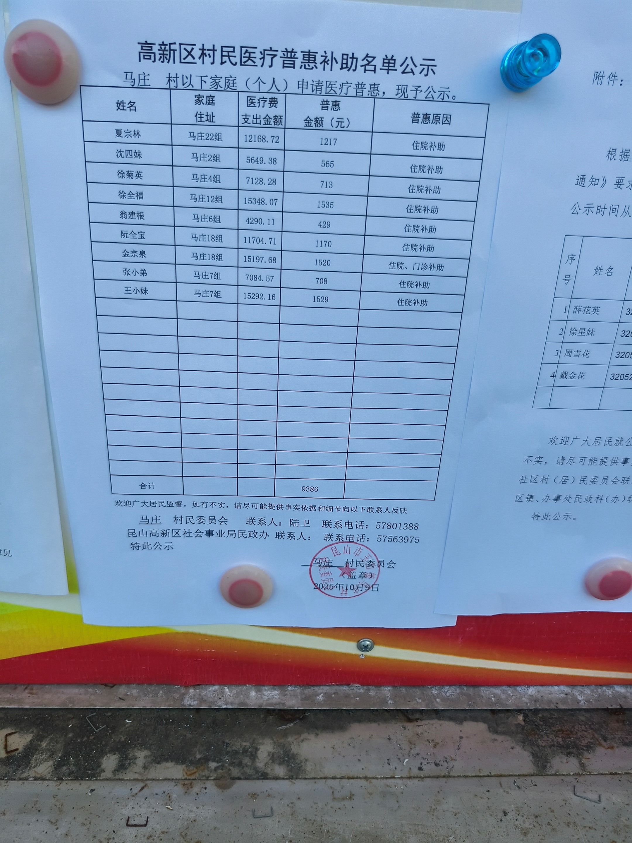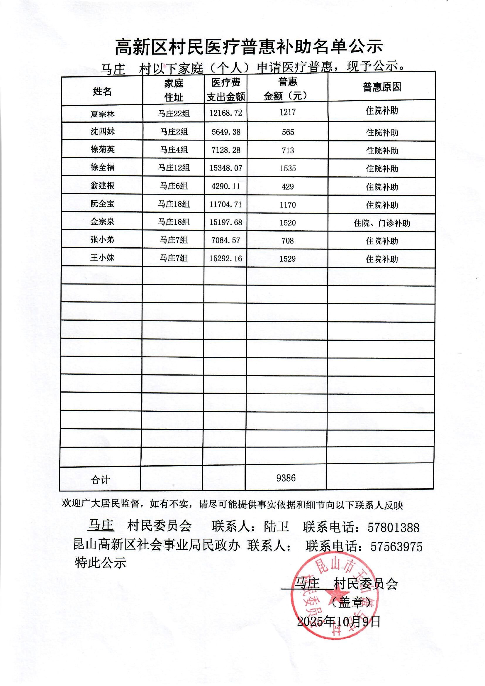 2025年10月支付村民醫(yī)療普惠補(bǔ)助名單