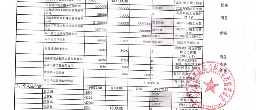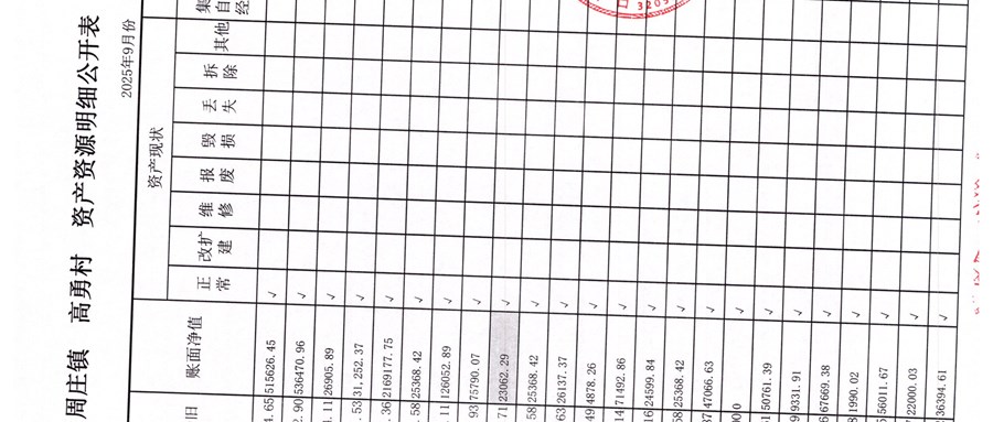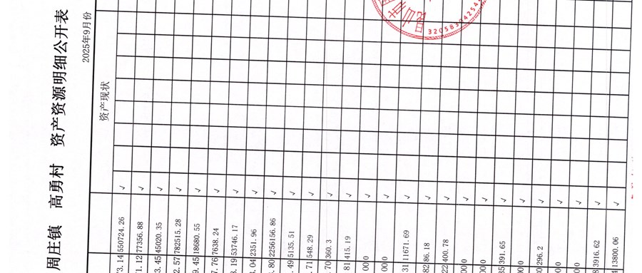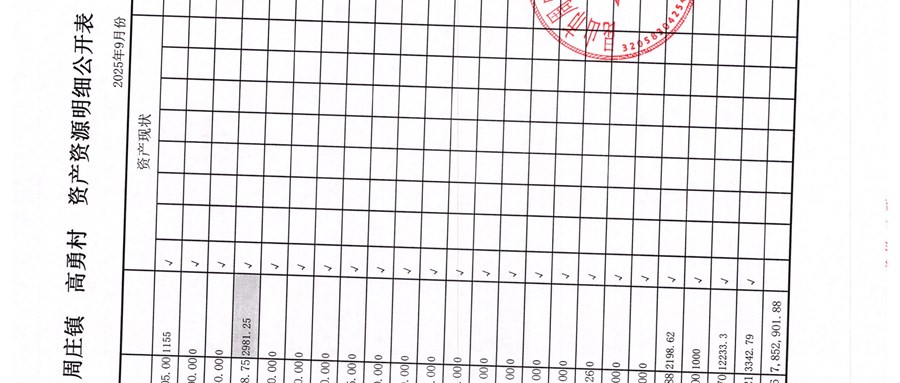 高勇村委會2025年9月份財務公開