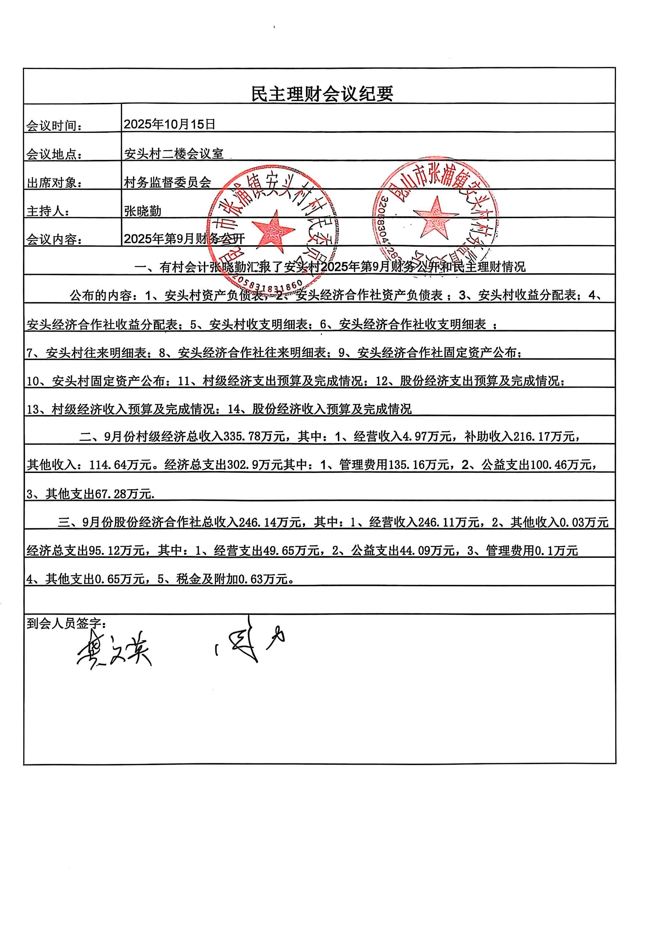安頭村2025年9月財(cái)務(wù)公開(kāi)