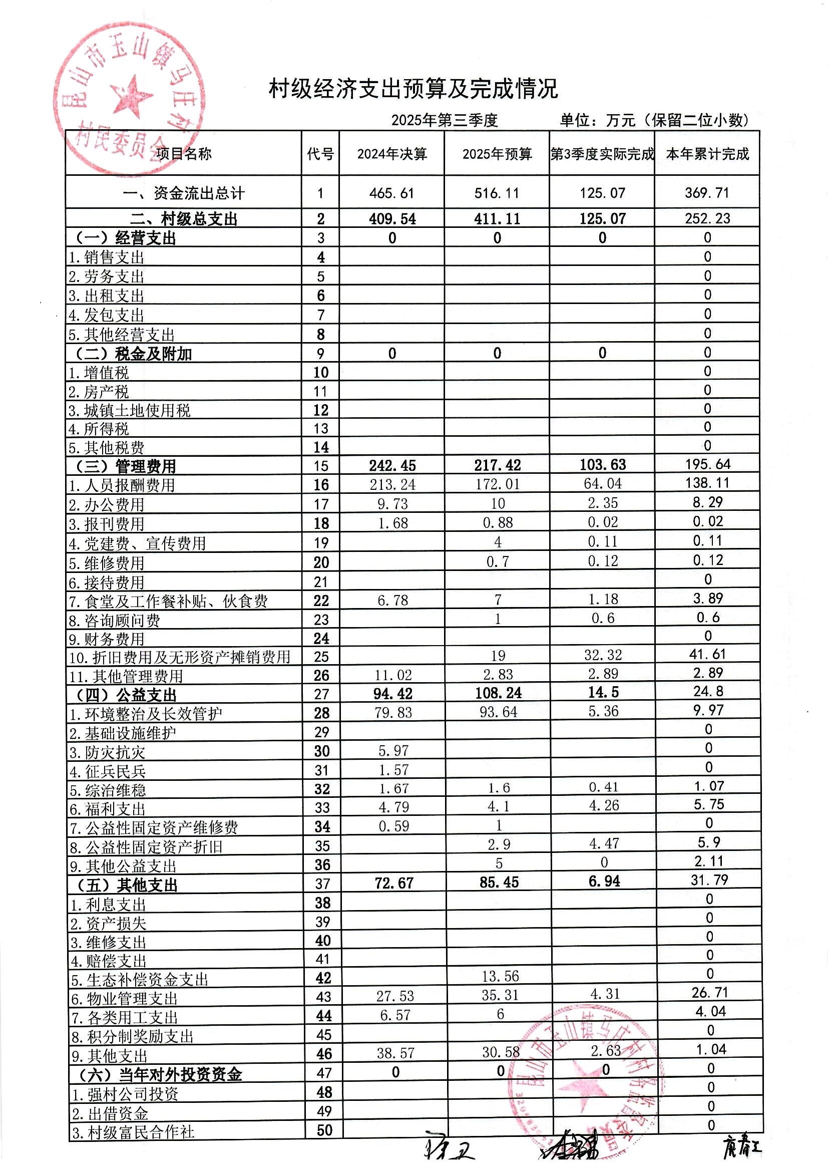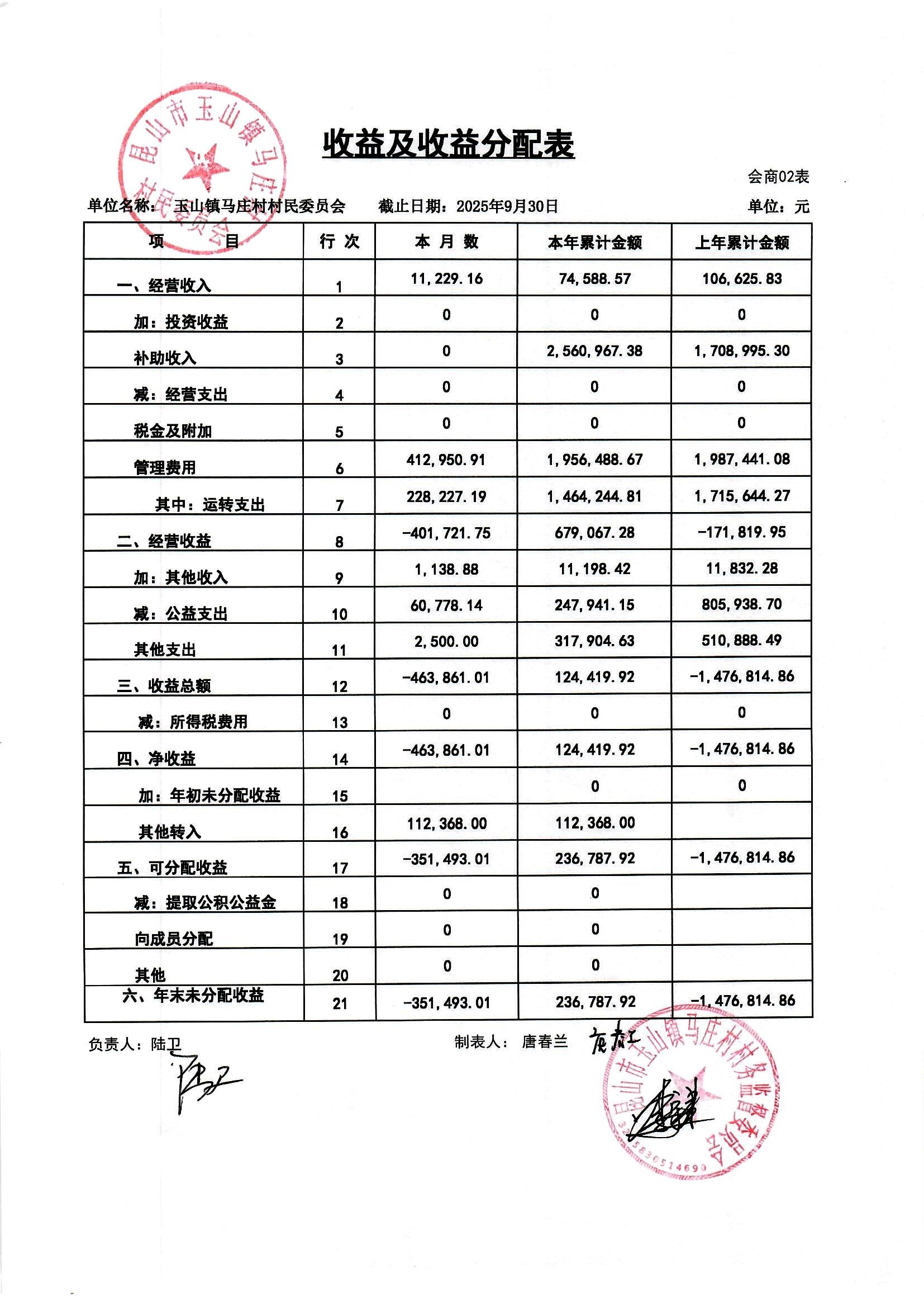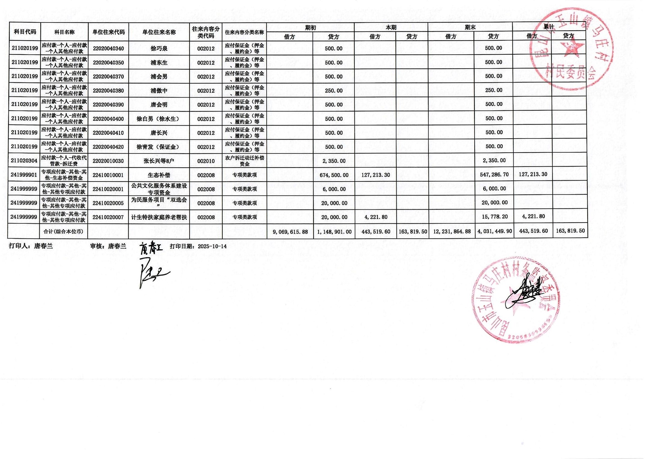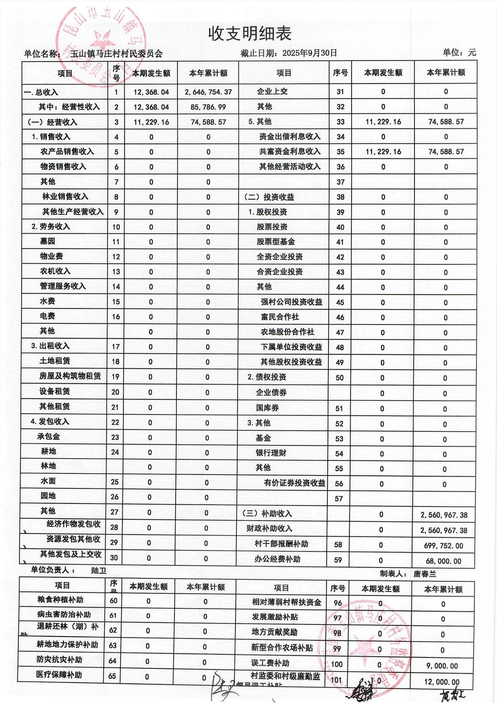 高新區(qū)馬莊村村民委員會2025年10月財(cái)務(wù)公開