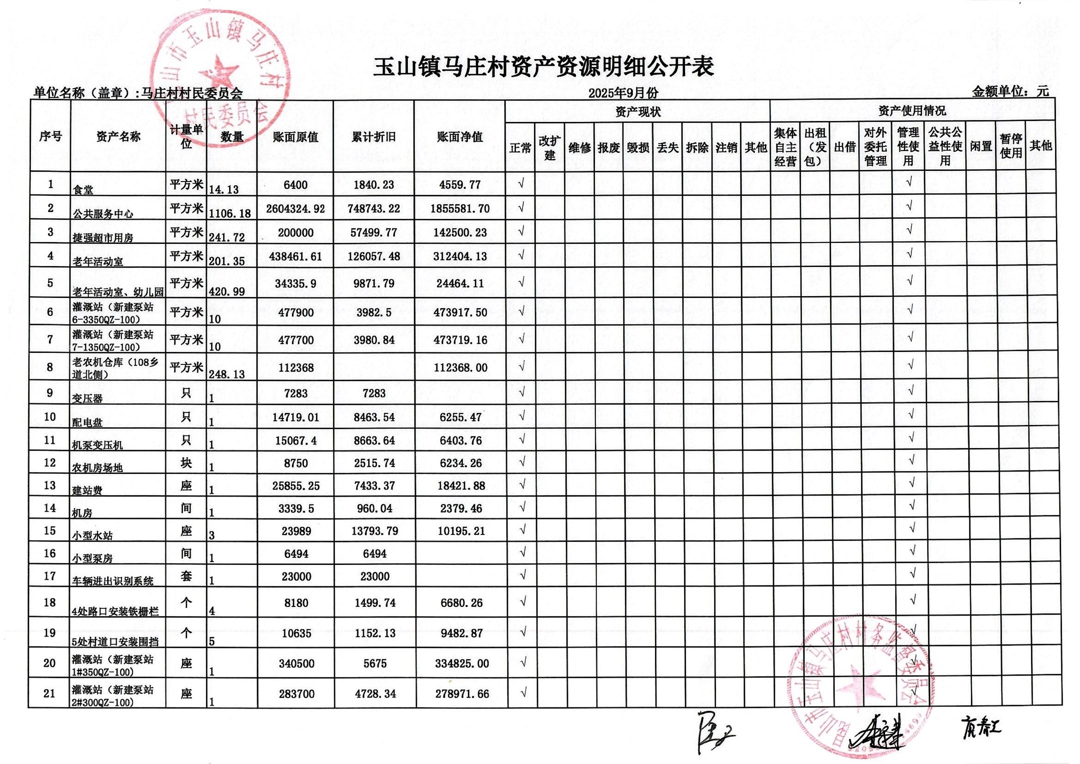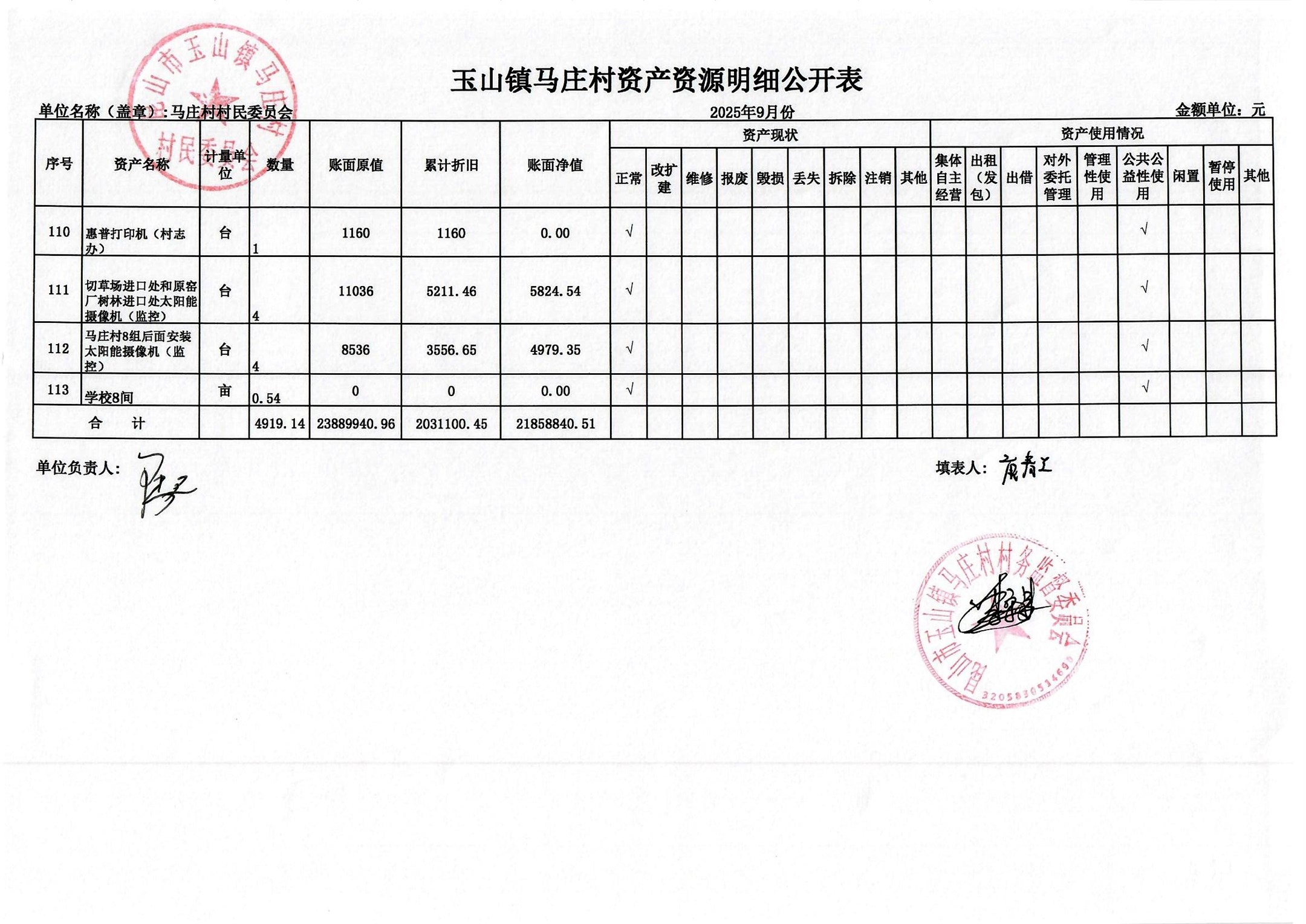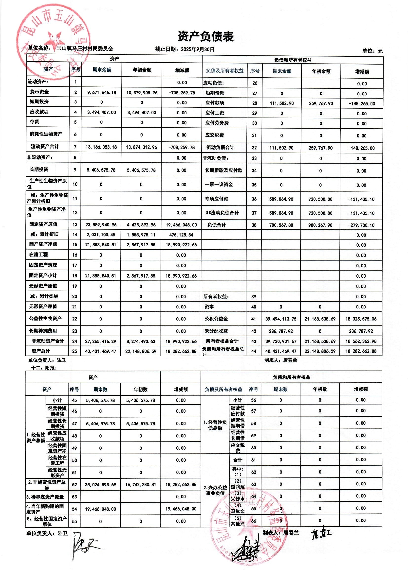 高新區(qū)馬莊村村民委員會2025年10月財(cái)務(wù)公開