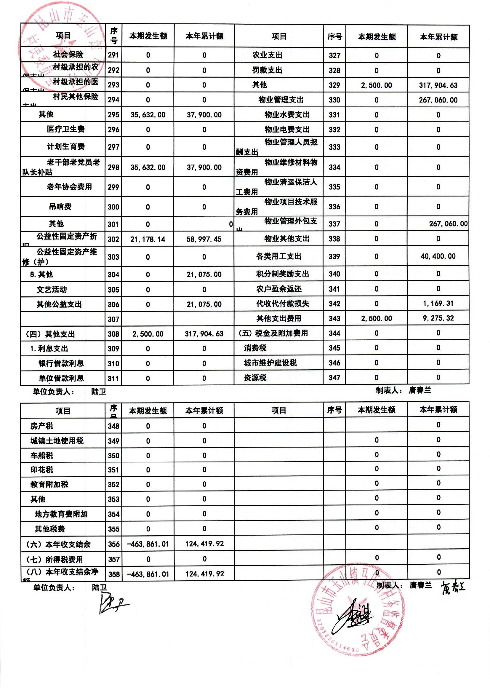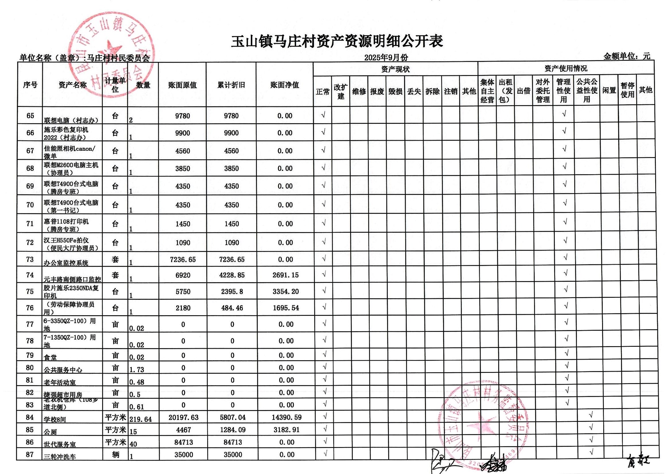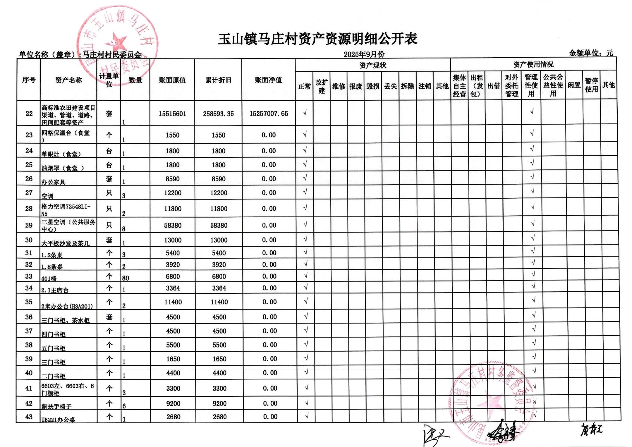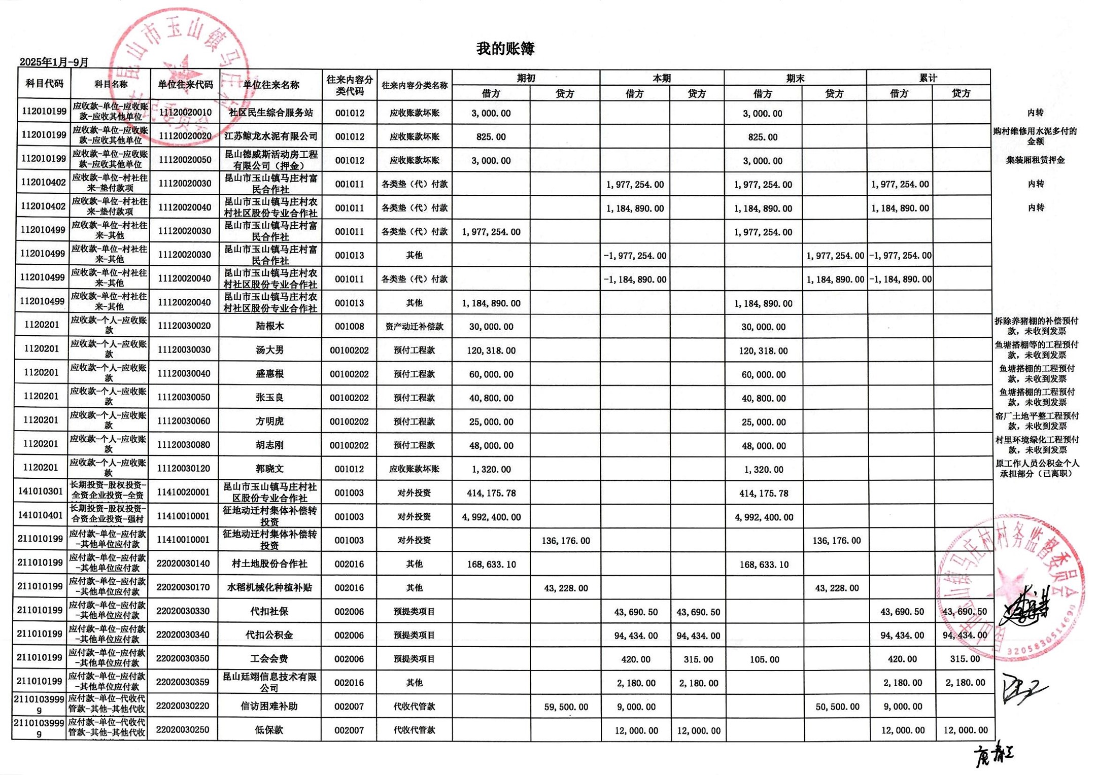 高新區(qū)馬莊村村民委員會2025年10月財(cái)務(wù)公開