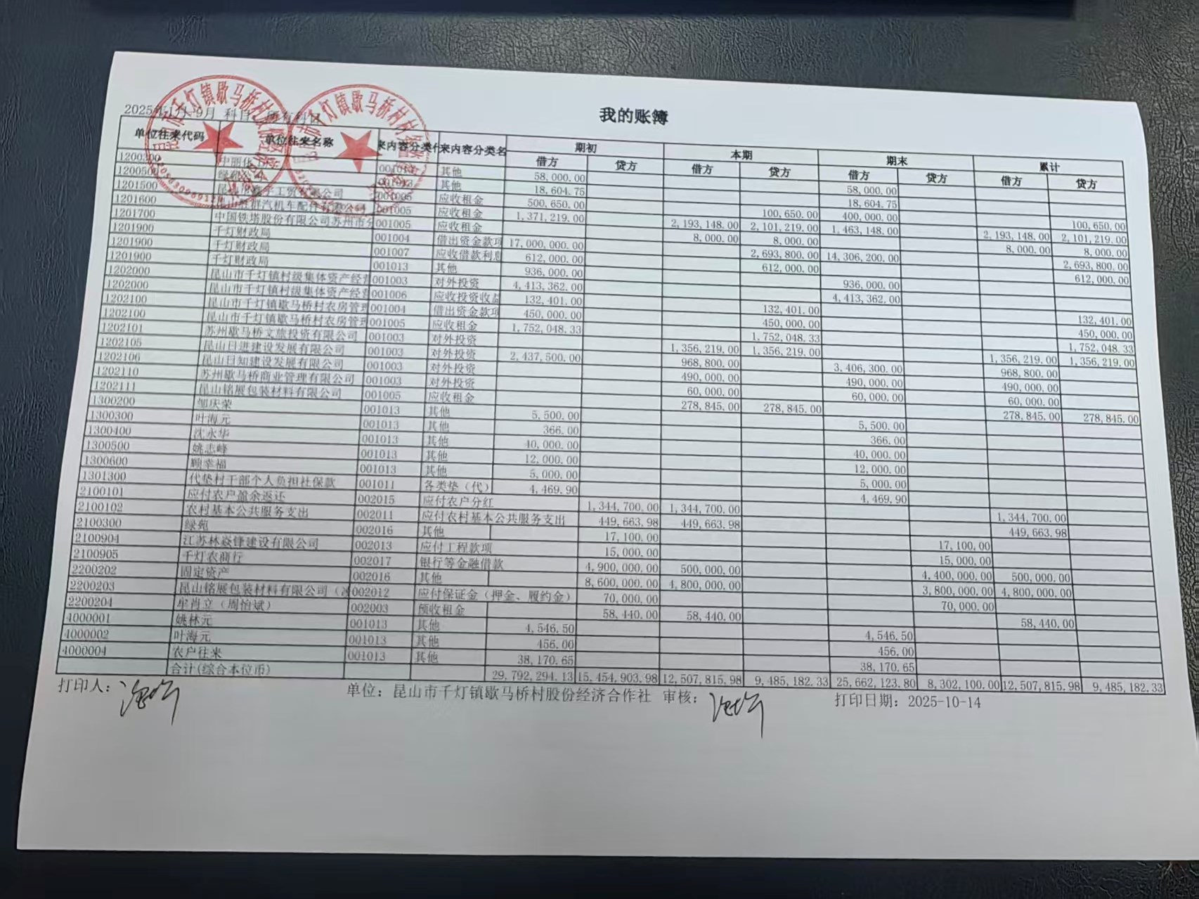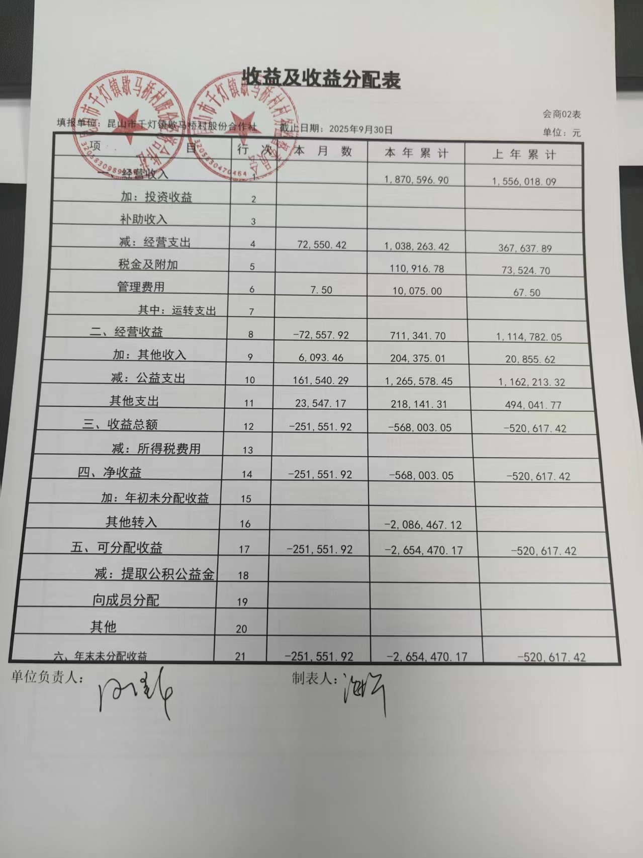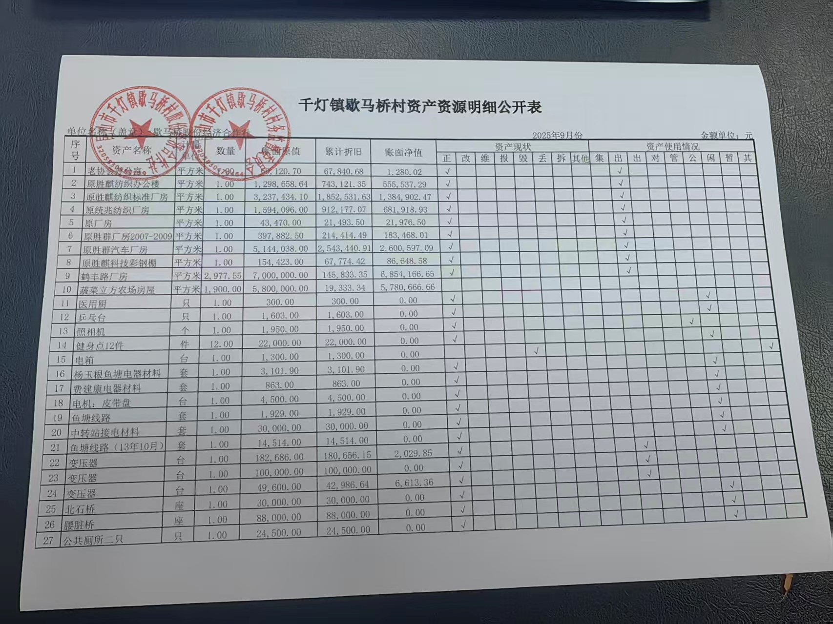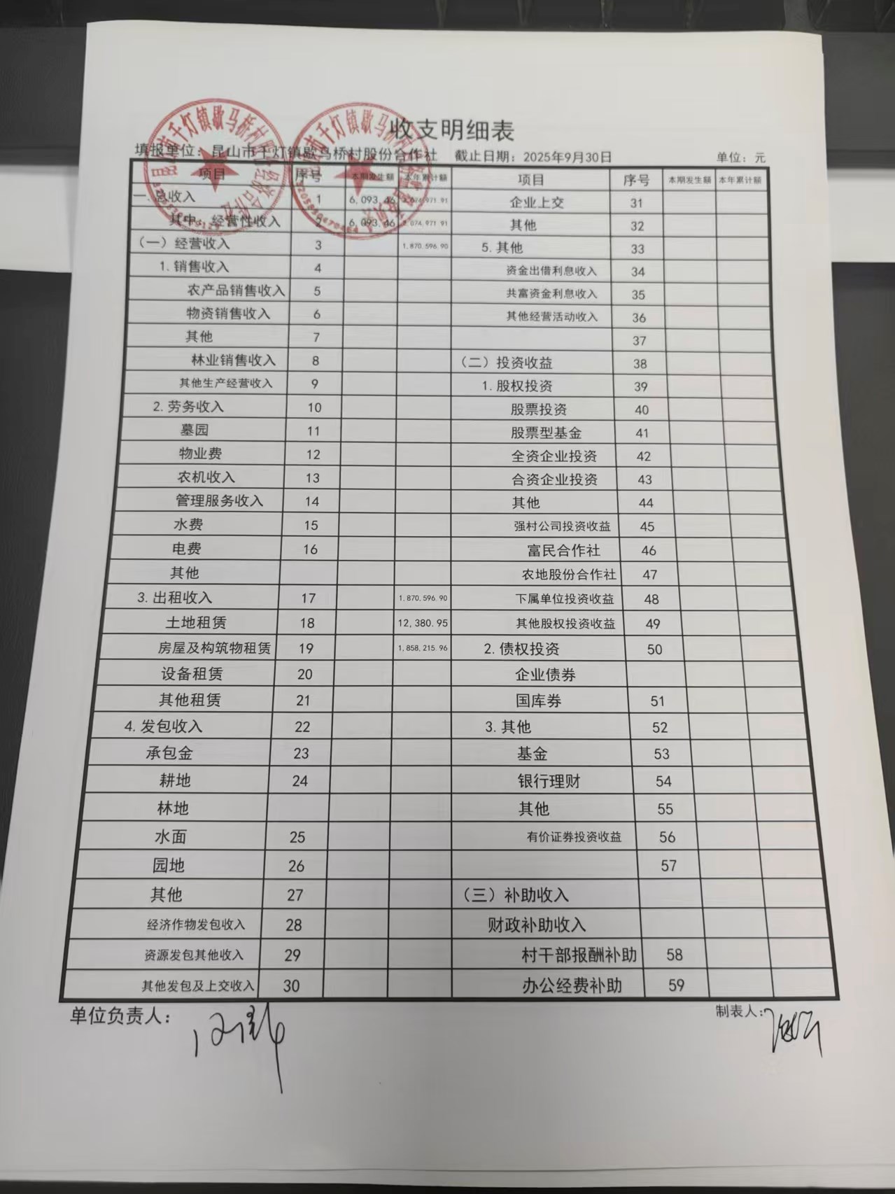 2025年9月份歇馬橋村股份經(jīng)濟(jì)合作社財(cái)務(wù)公開(kāi)