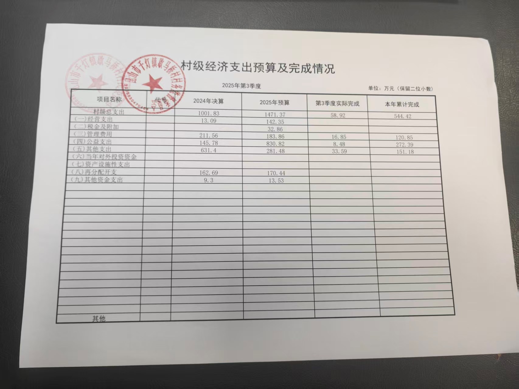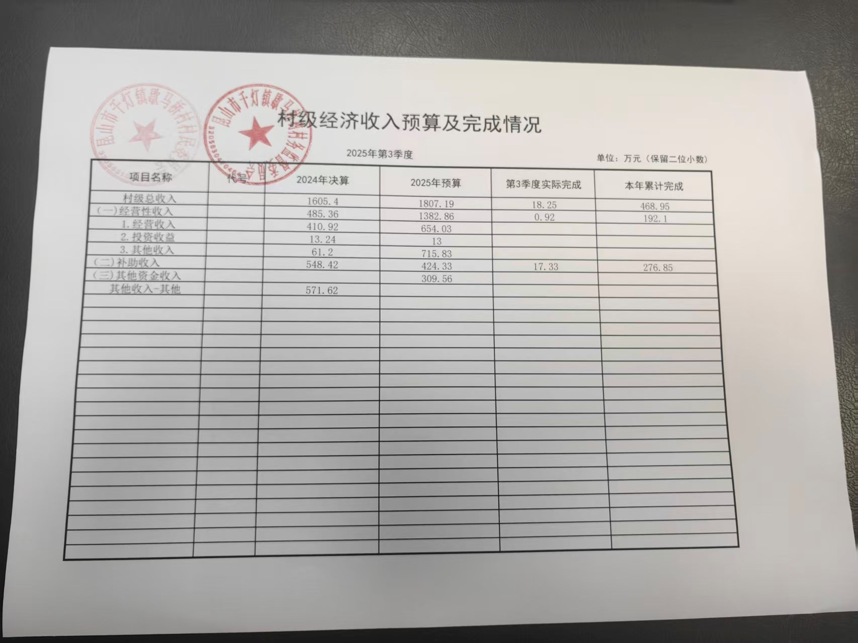 2025年第三季度村級經(jīng)濟收支預算及完成情況