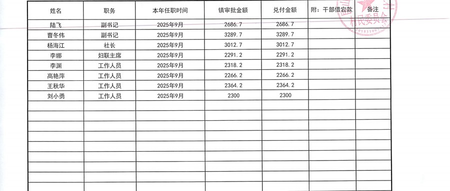 2025年9月定期財務(wù)公開(村委)
