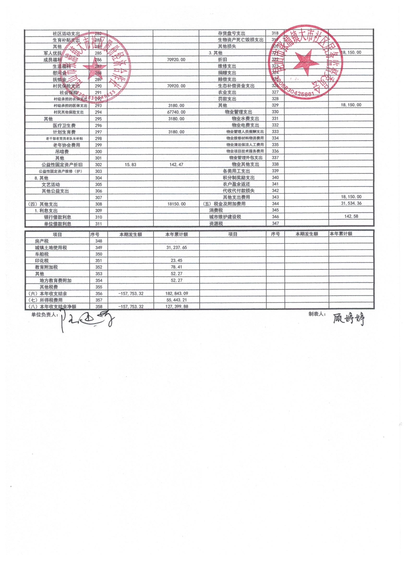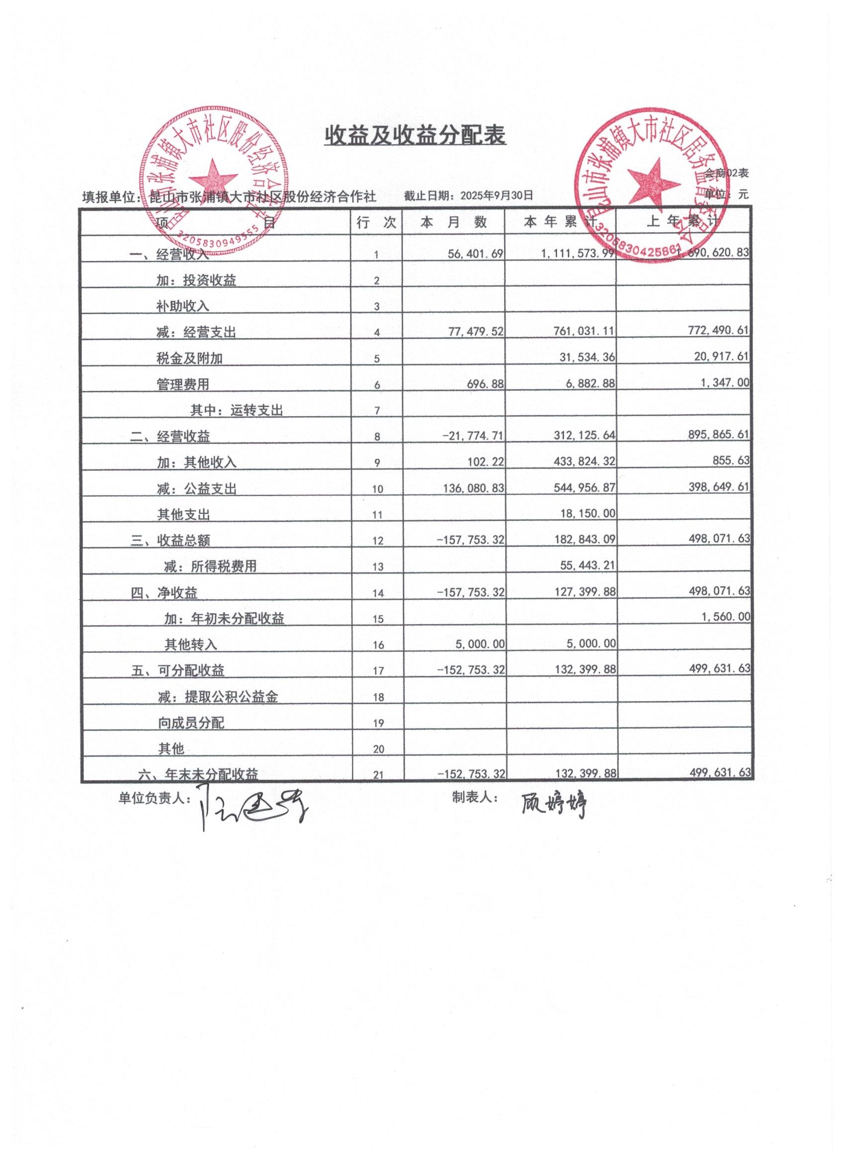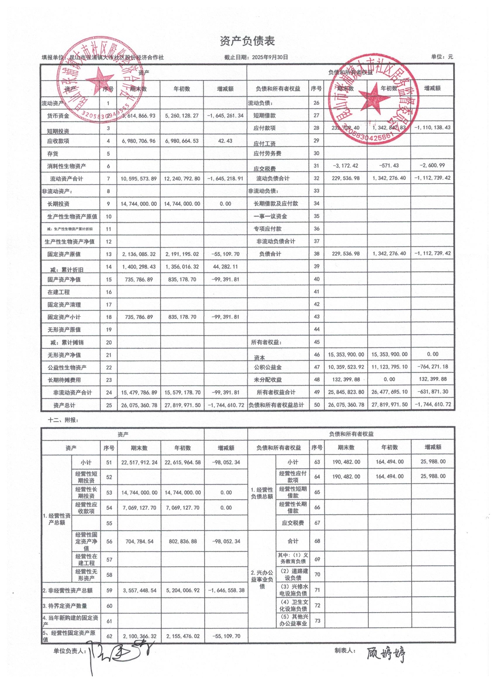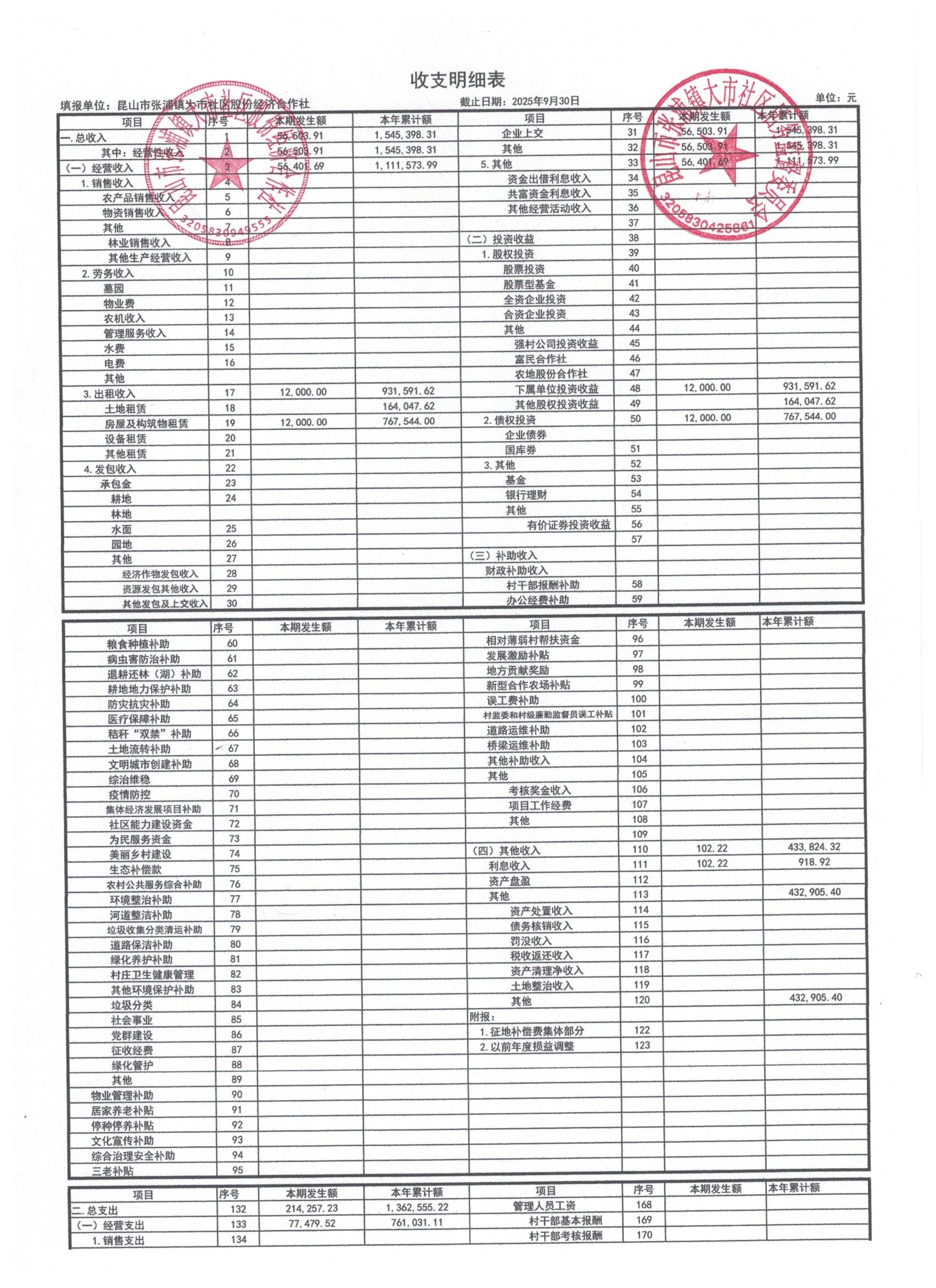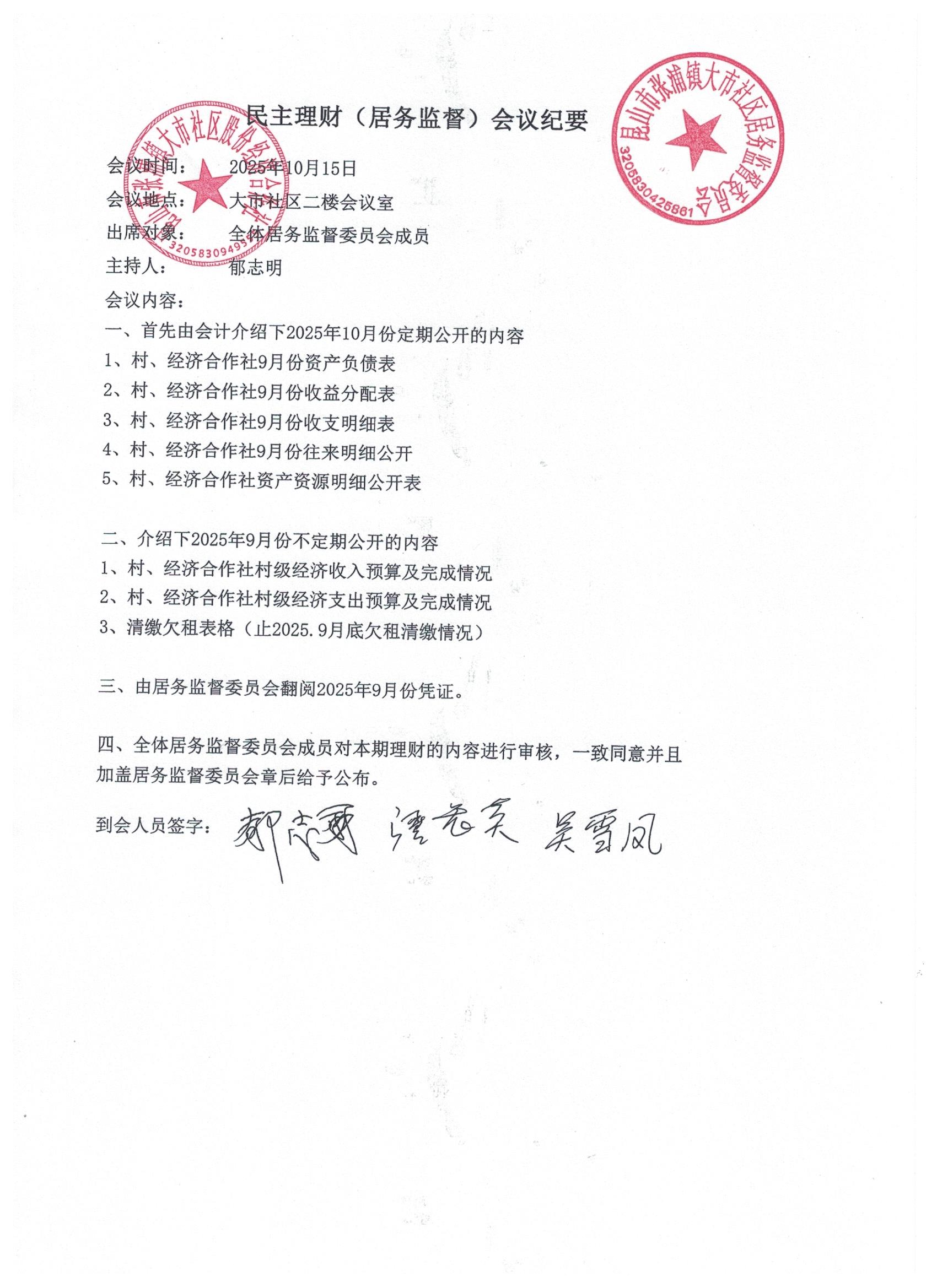 2025年大市社區(qū)股份經(jīng)濟(jì)合作社10月份財(cái)務(wù)公開