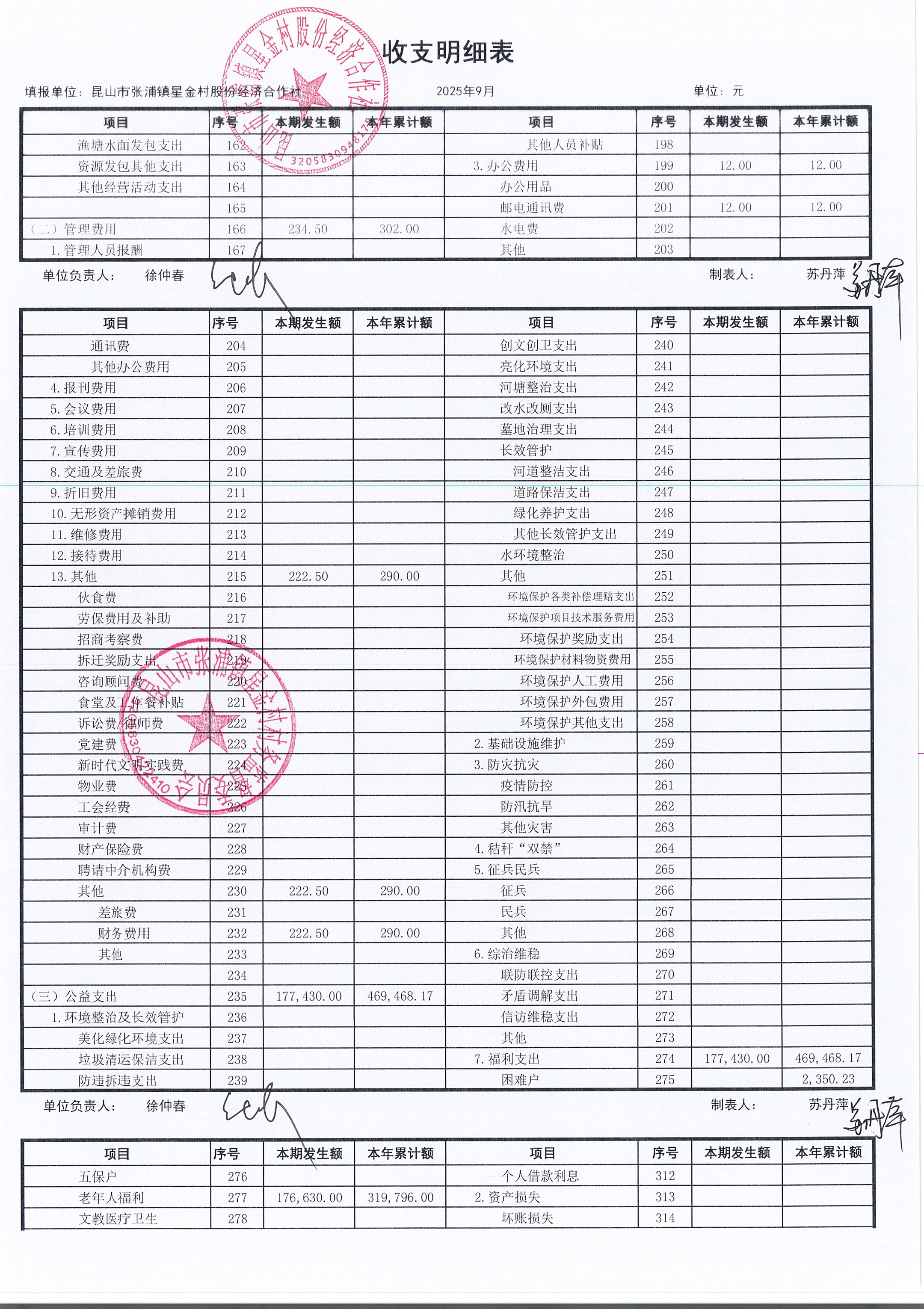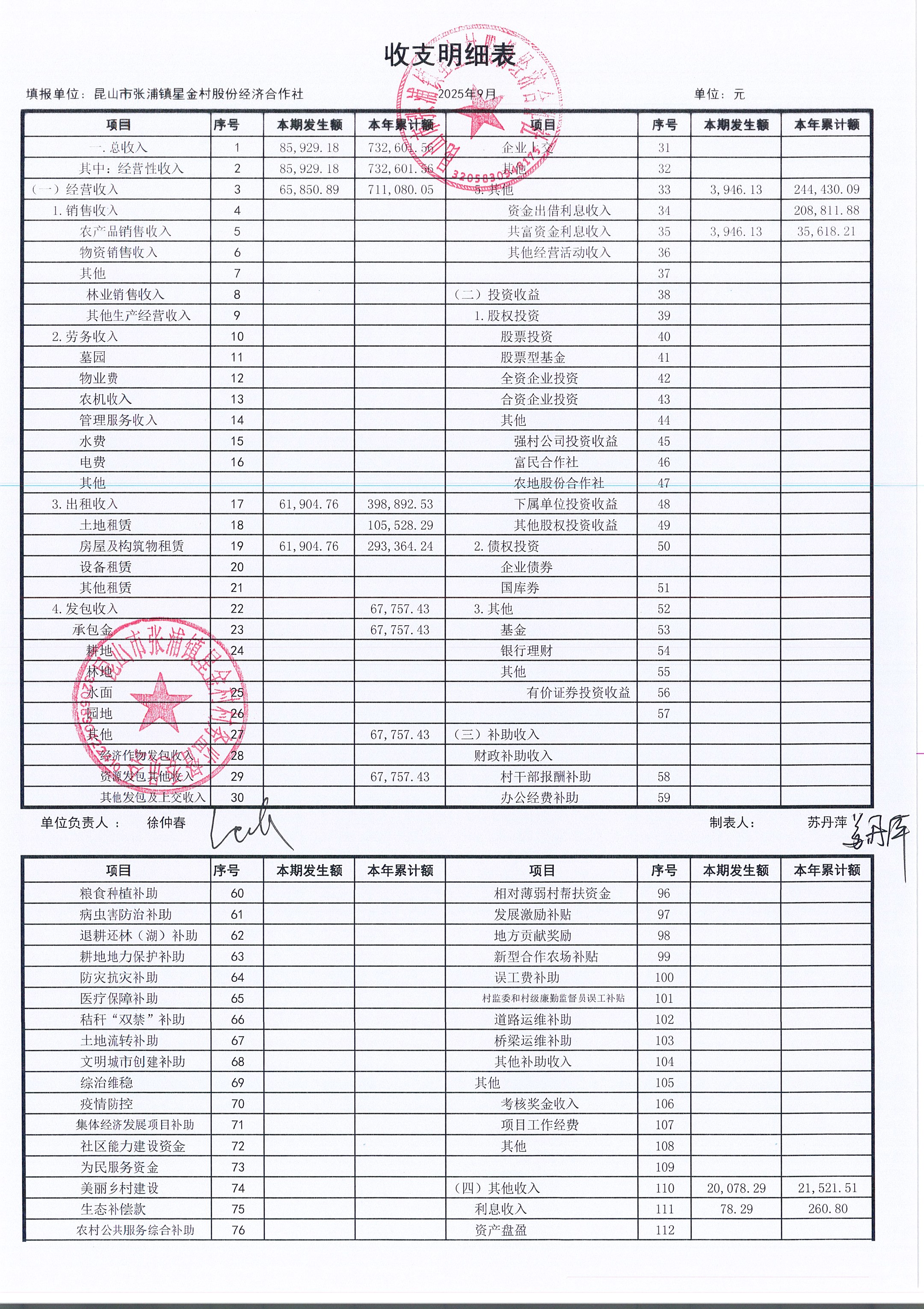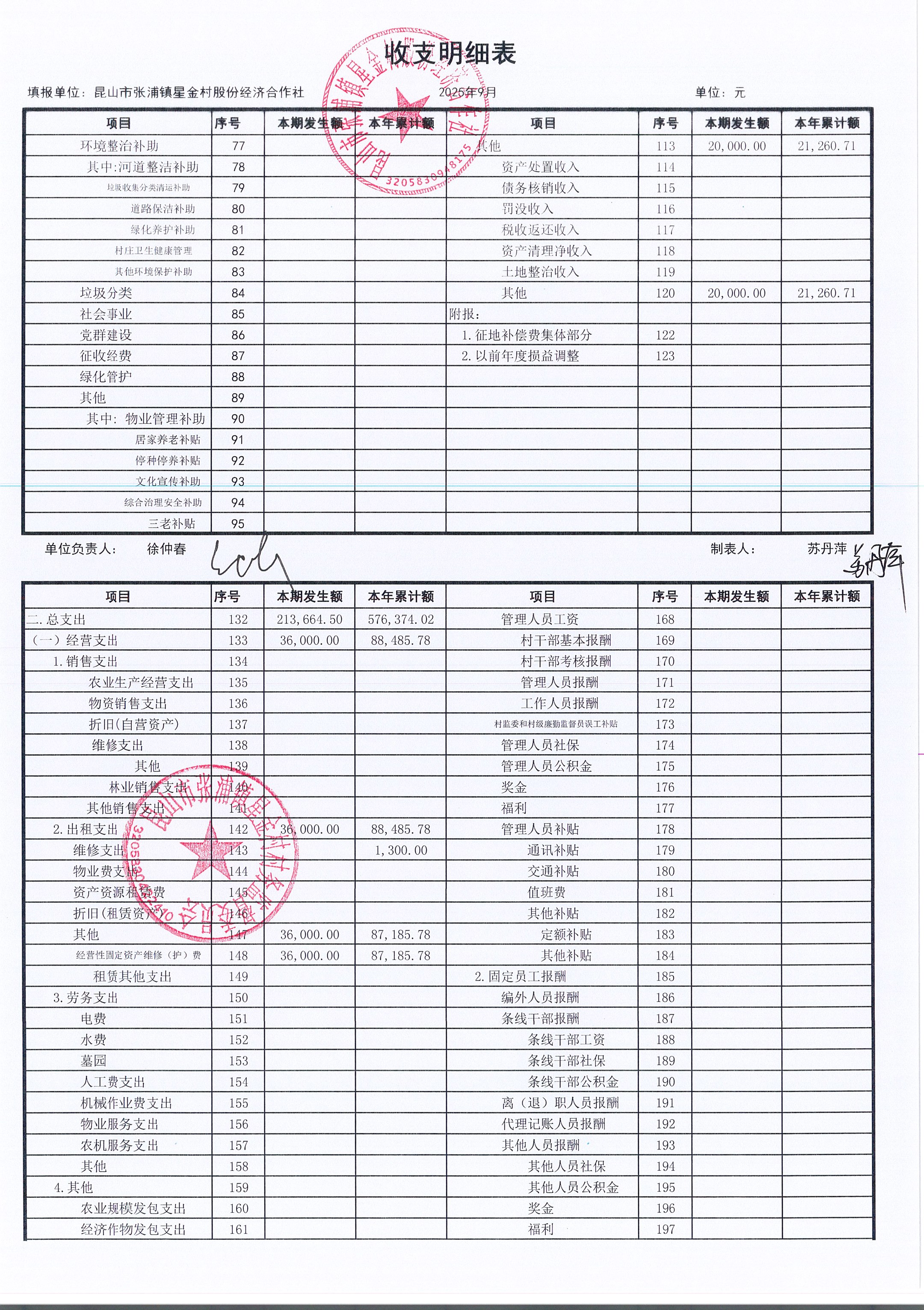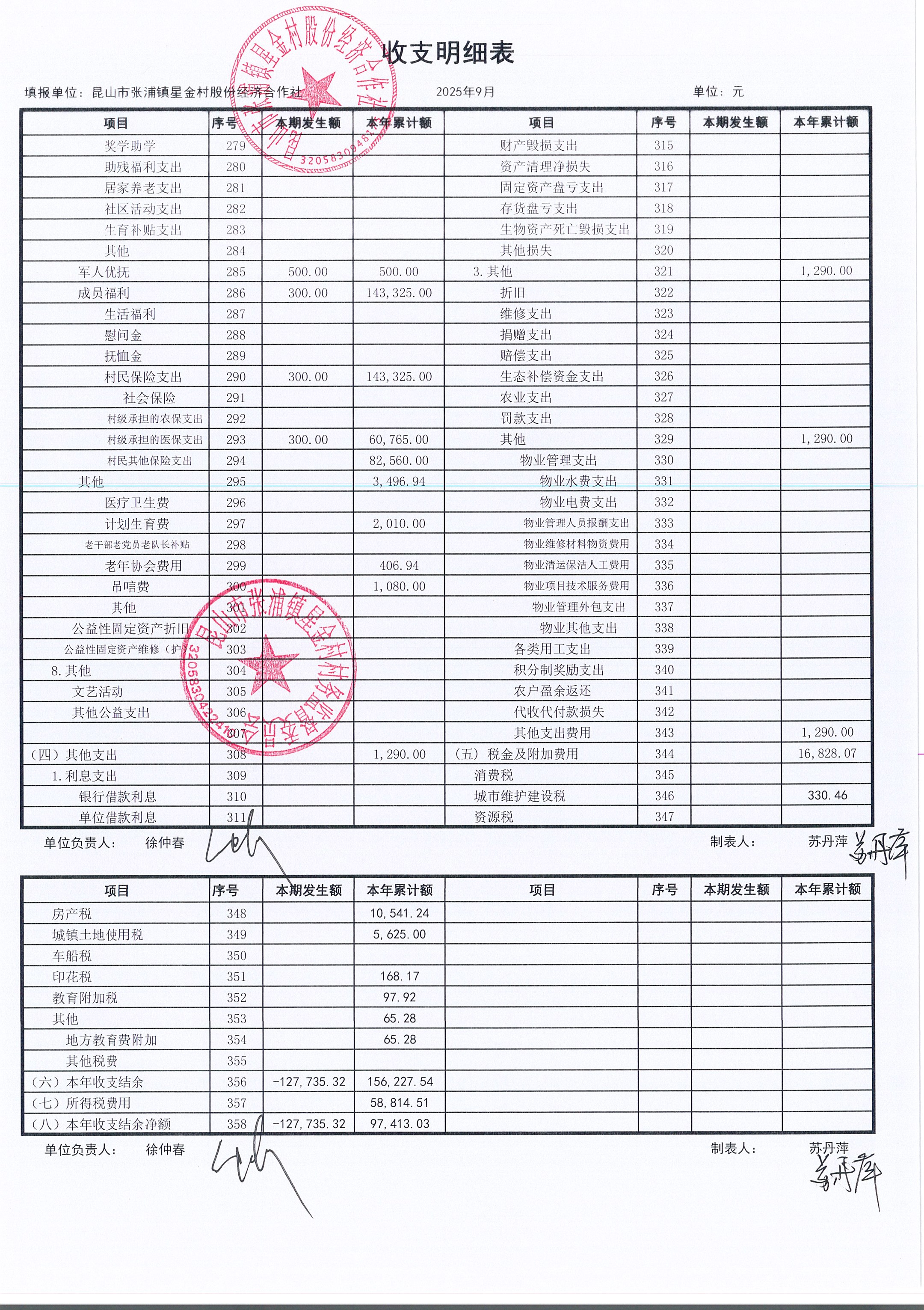 星金村股份經(jīng)濟合作社2025年09月財務(wù)公開