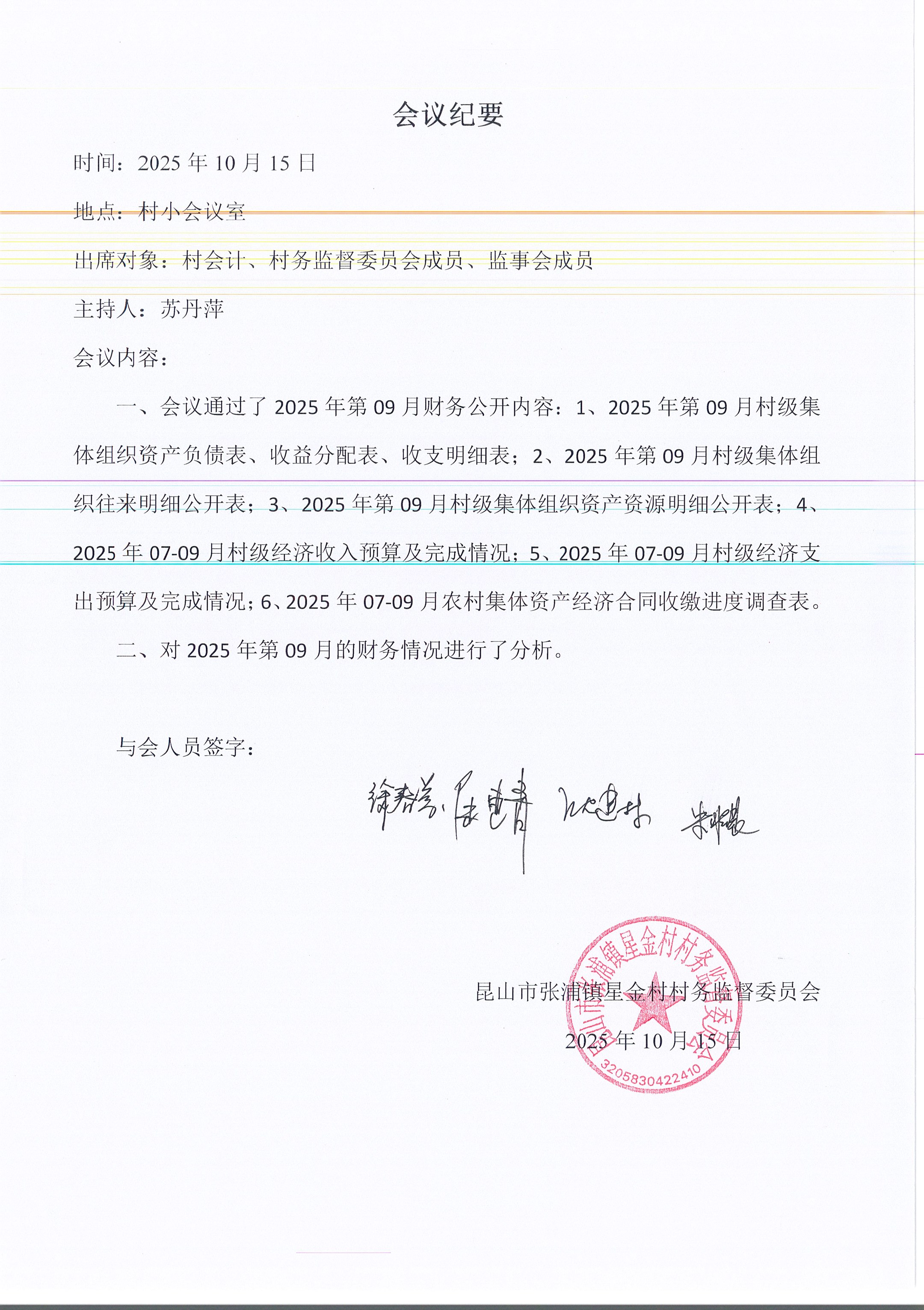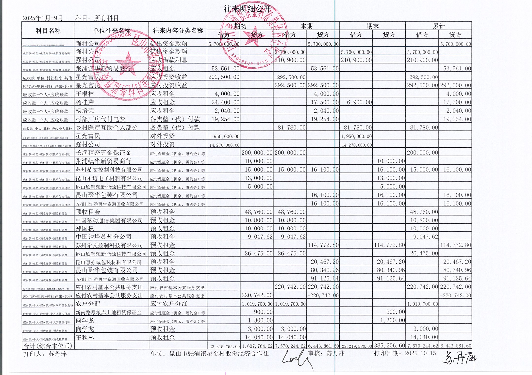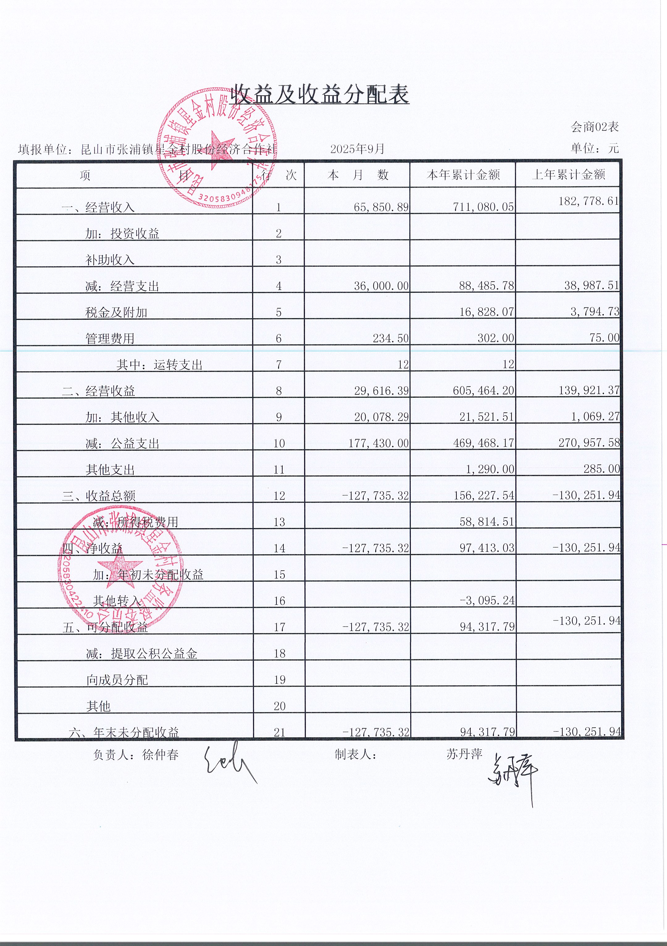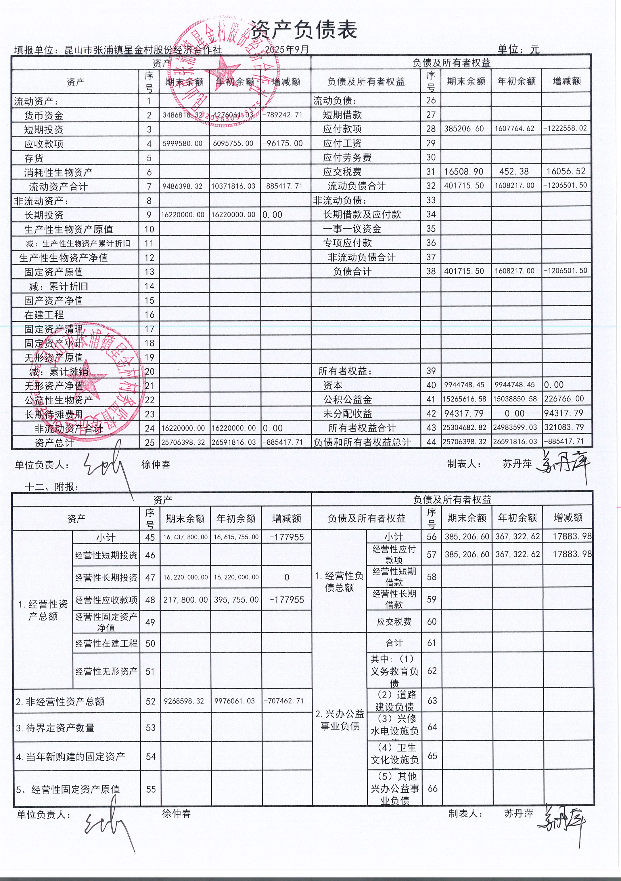 星金村股份經(jīng)濟合作社2025年09月財務(wù)公開