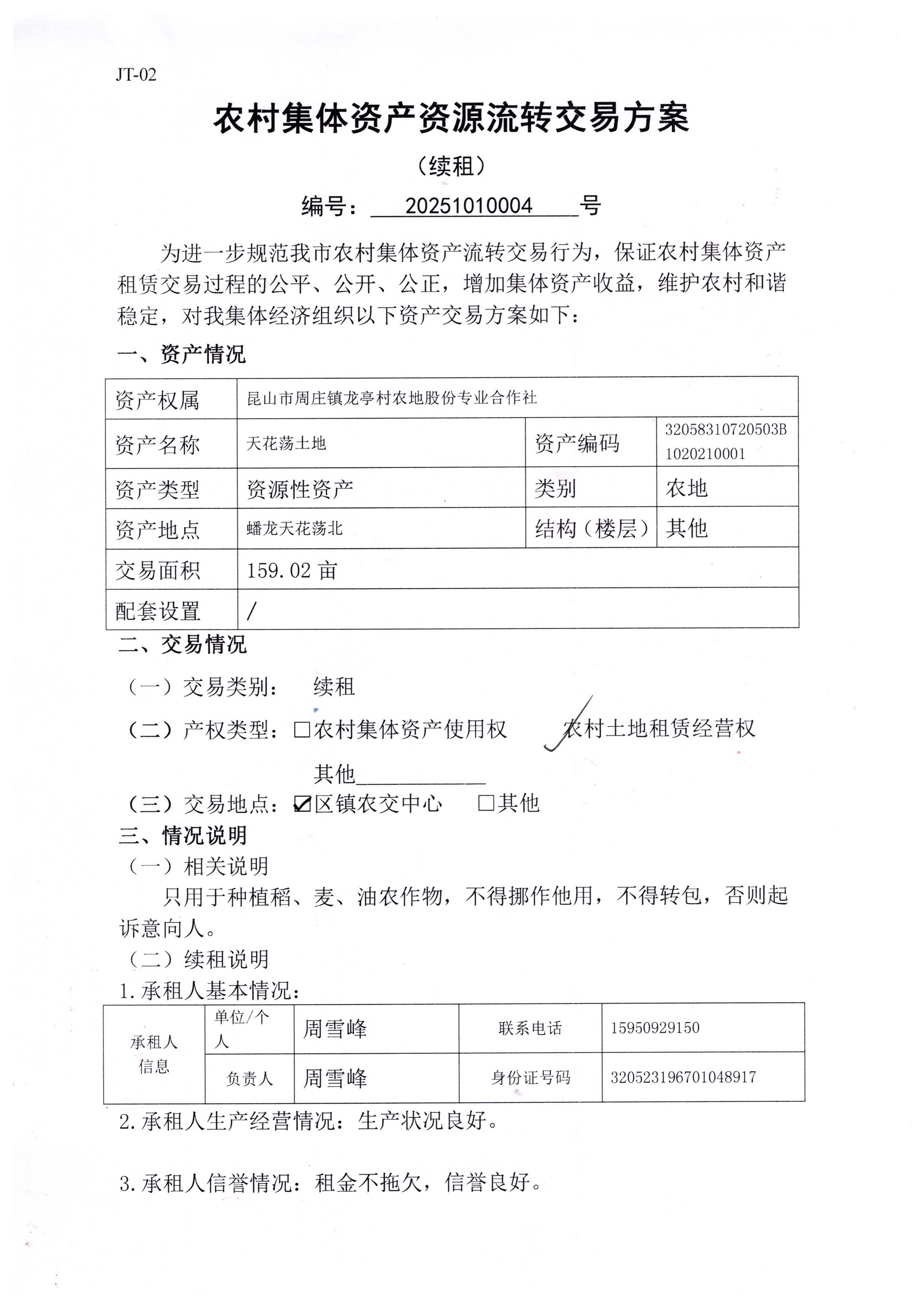 天花蕩土地159.02畝續(xù)租