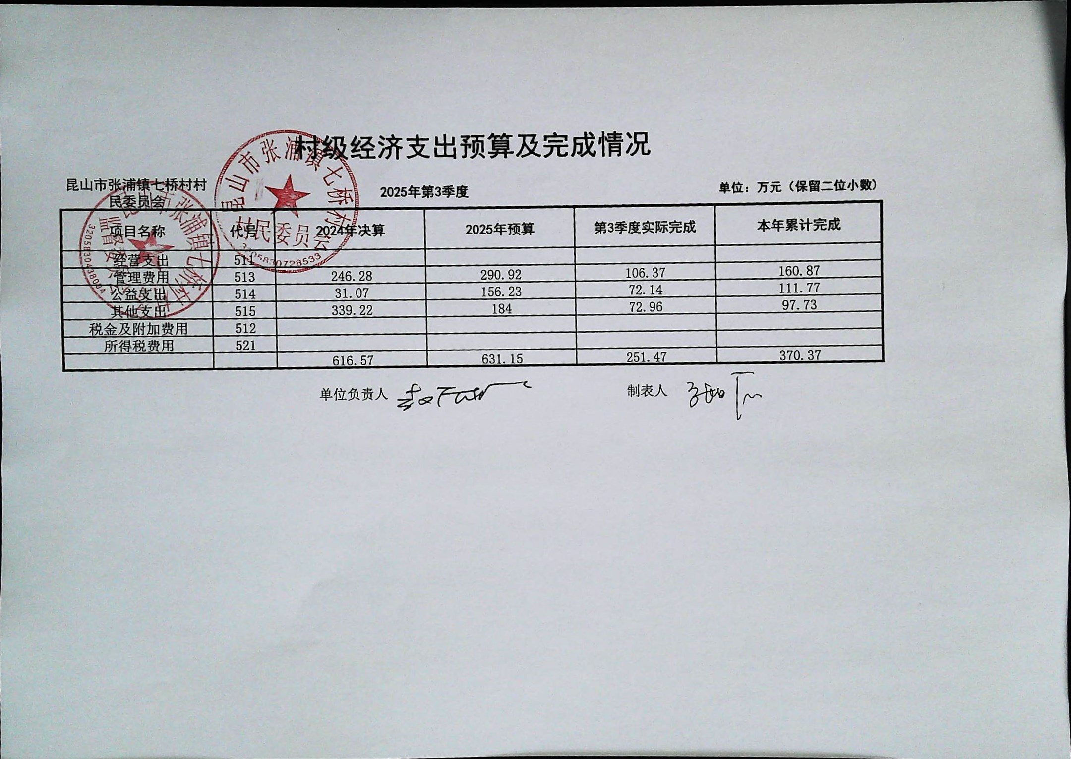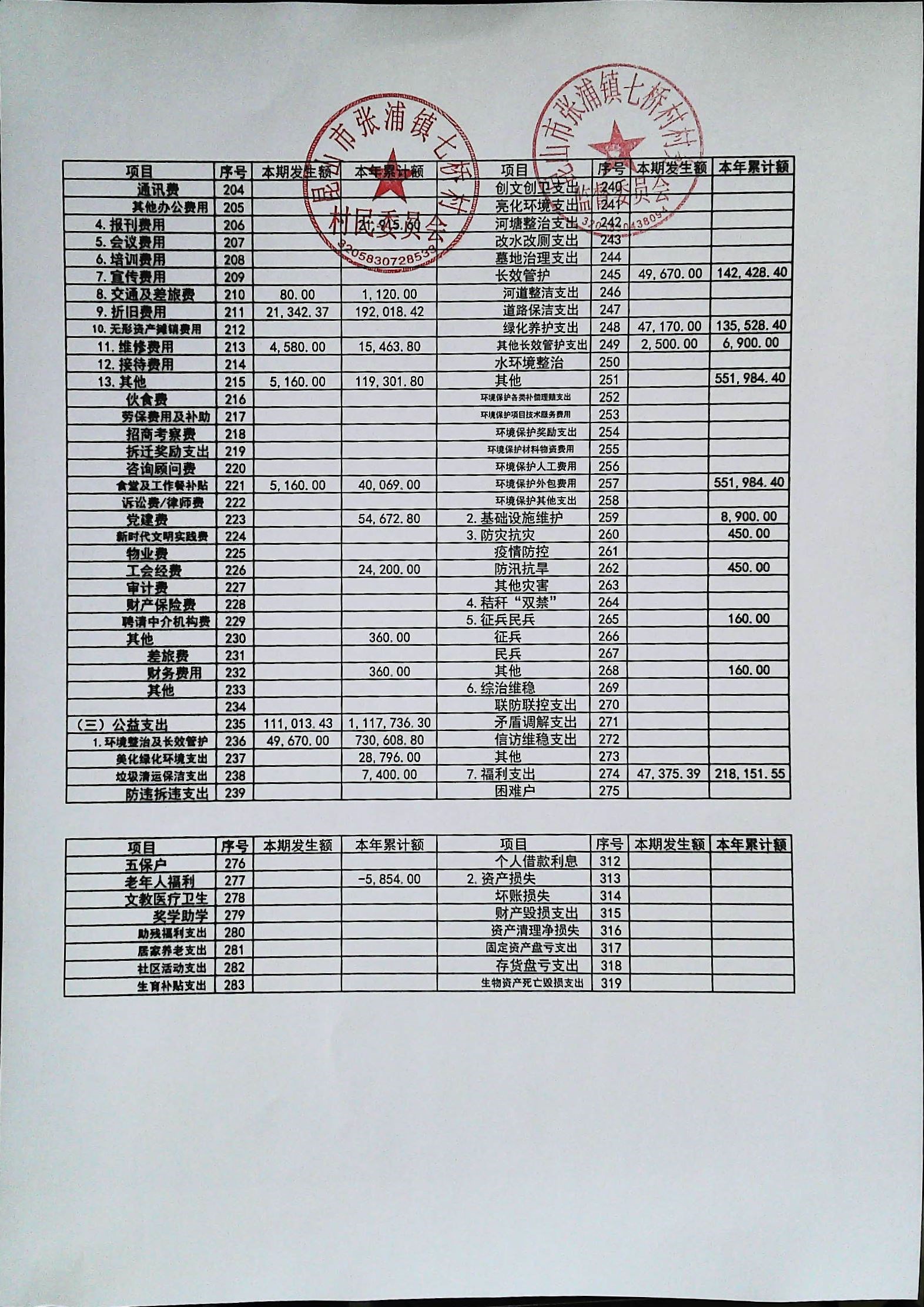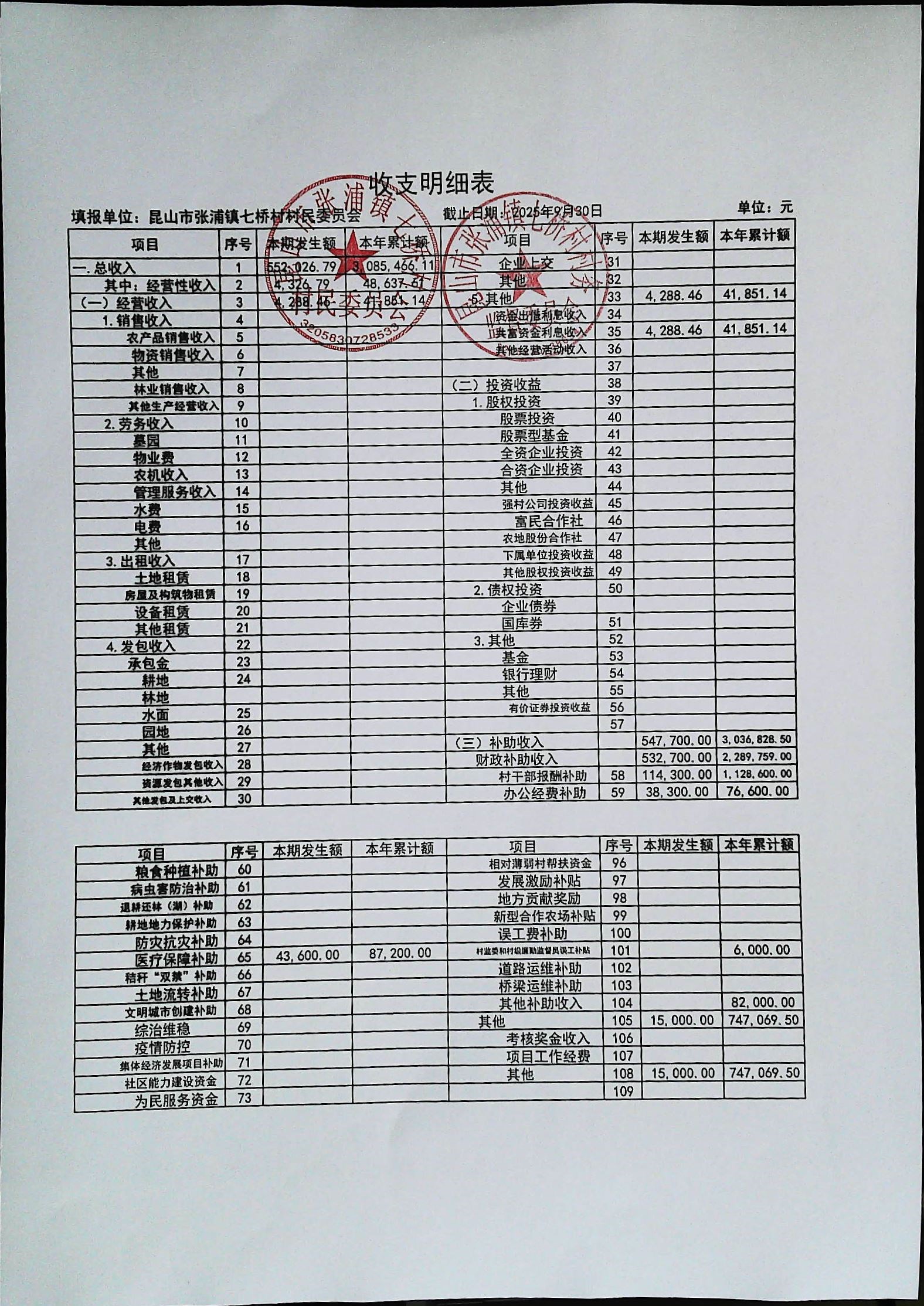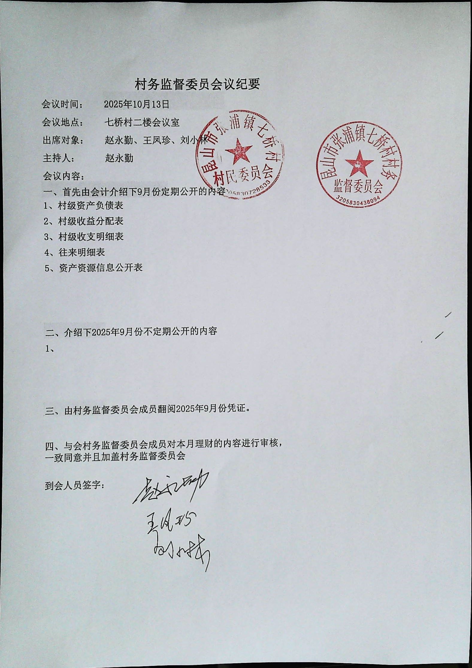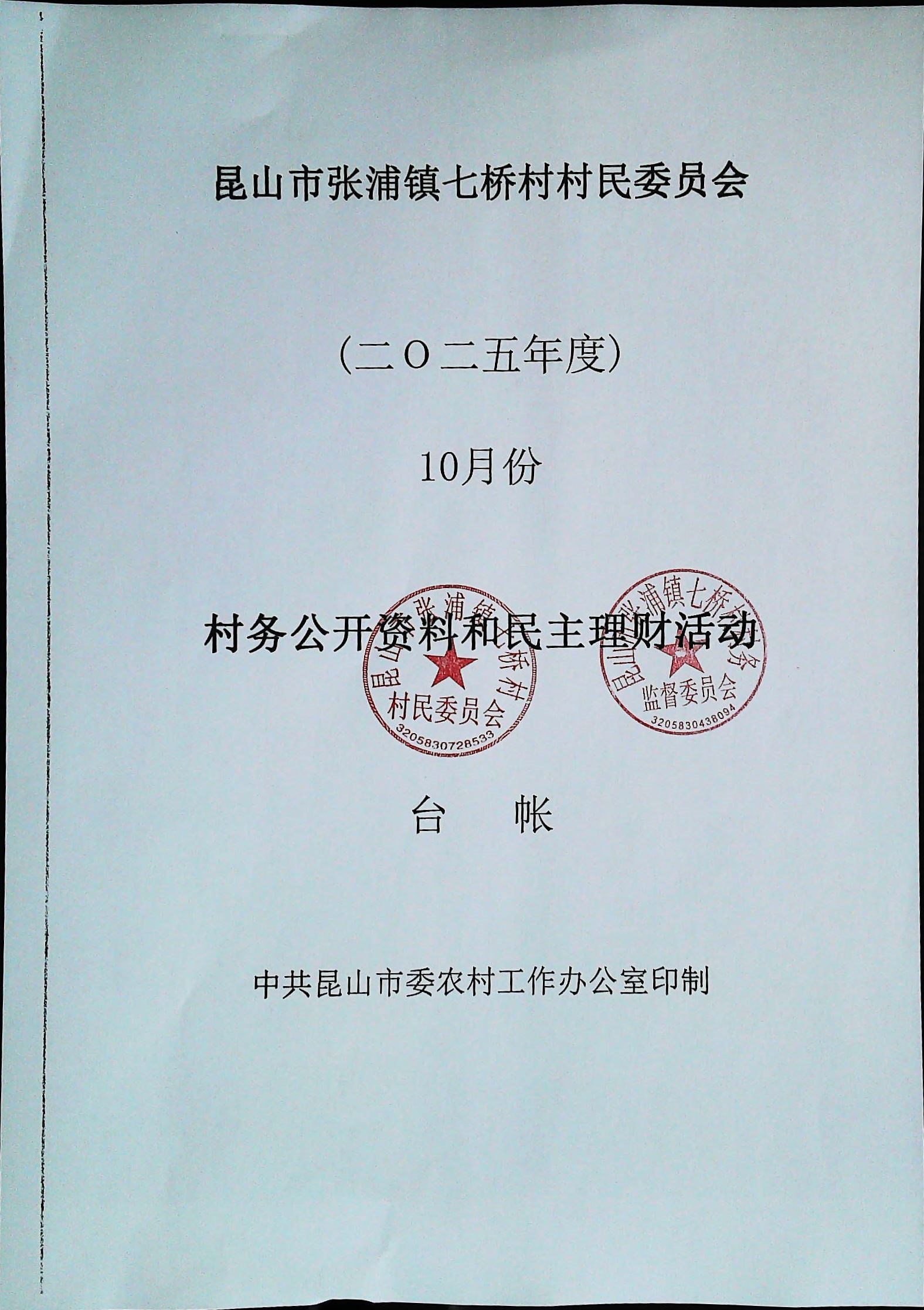 七橋村村民委員會(huì)2025年10月份財(cái)務(wù)公開