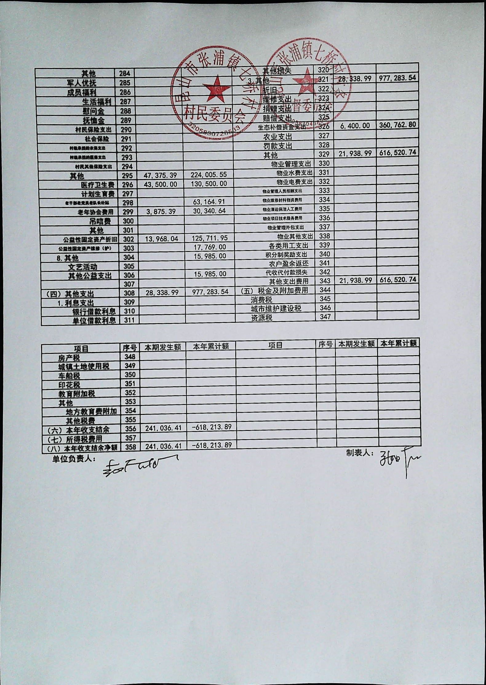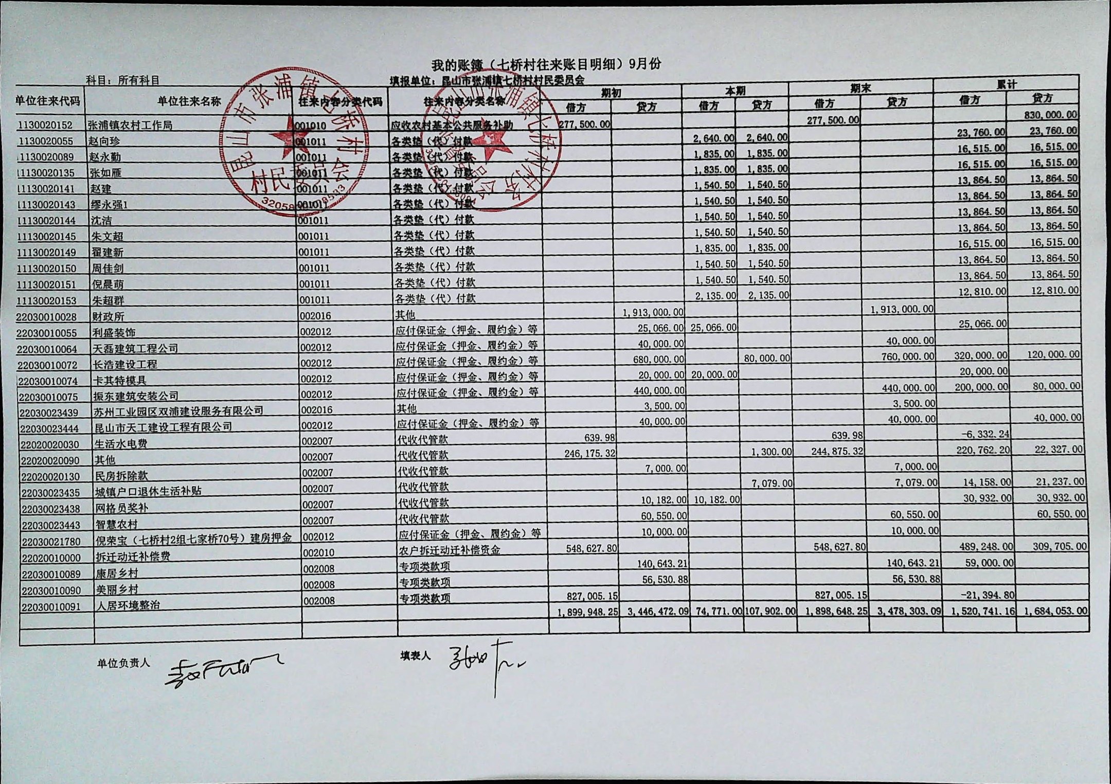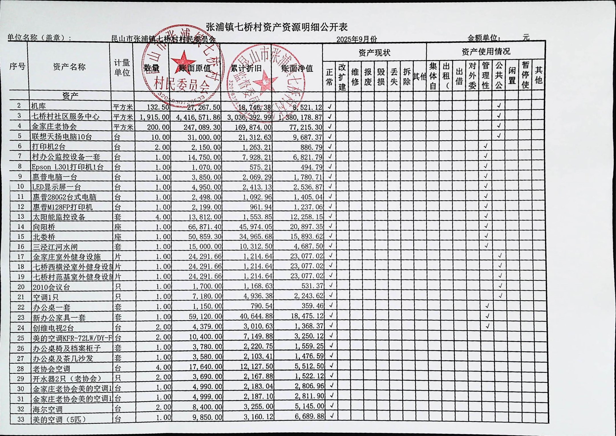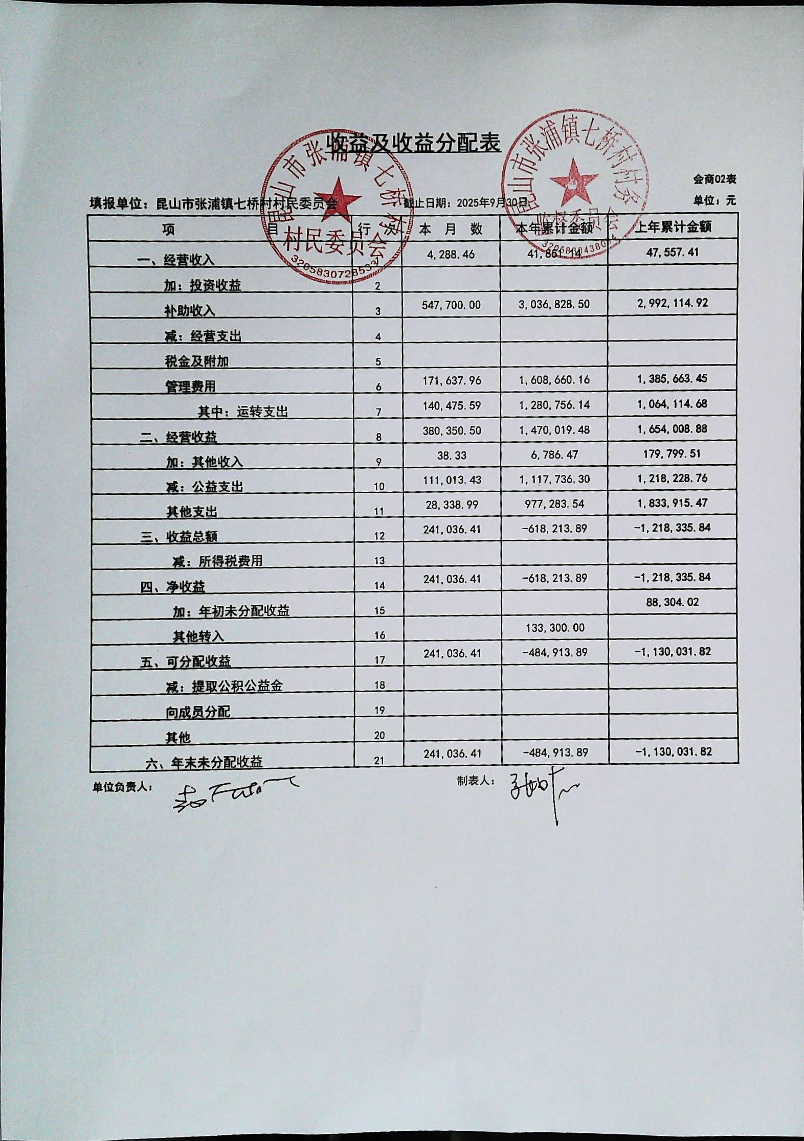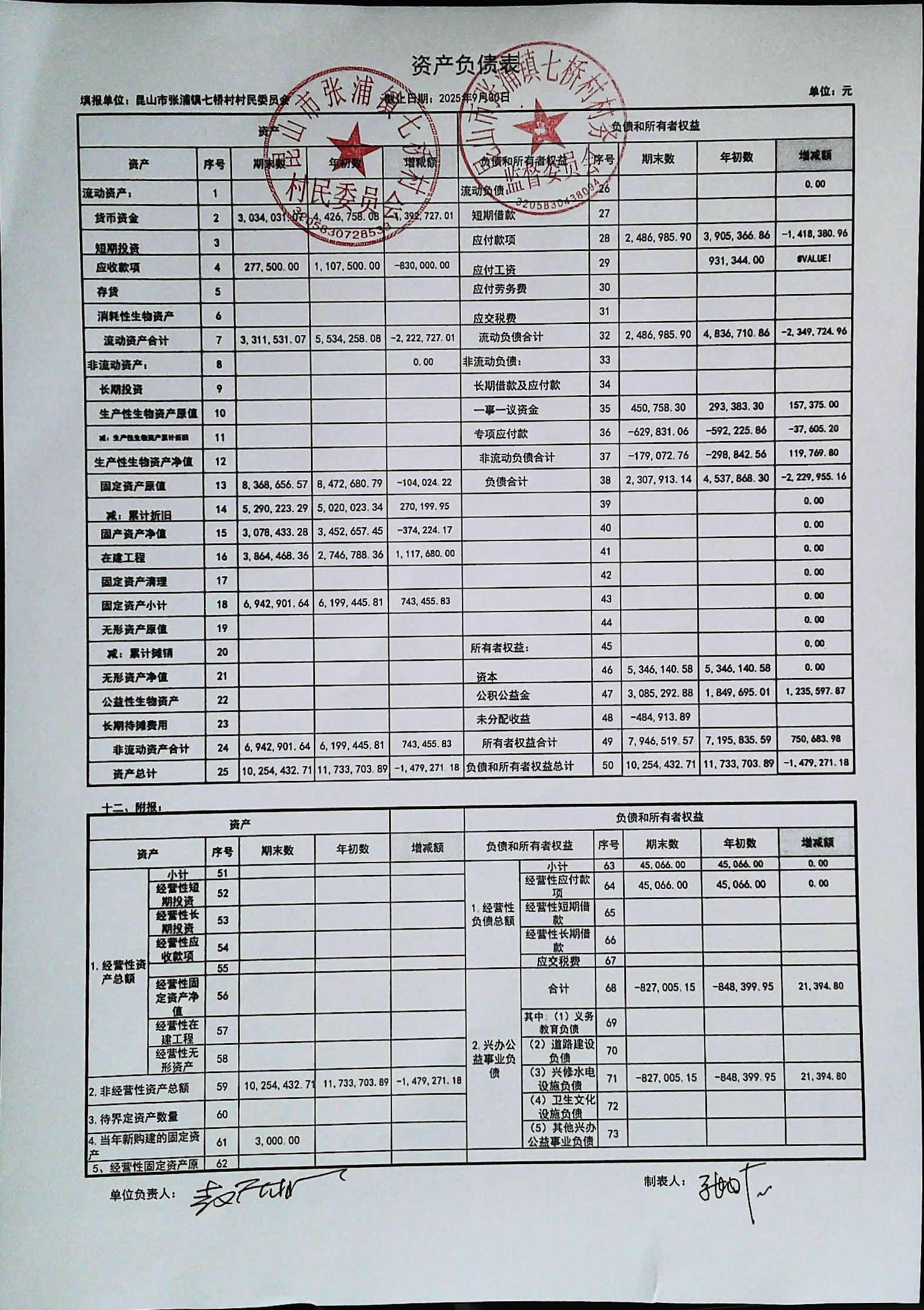 七橋村村民委員會(huì)2025年10月份財(cái)務(wù)公開