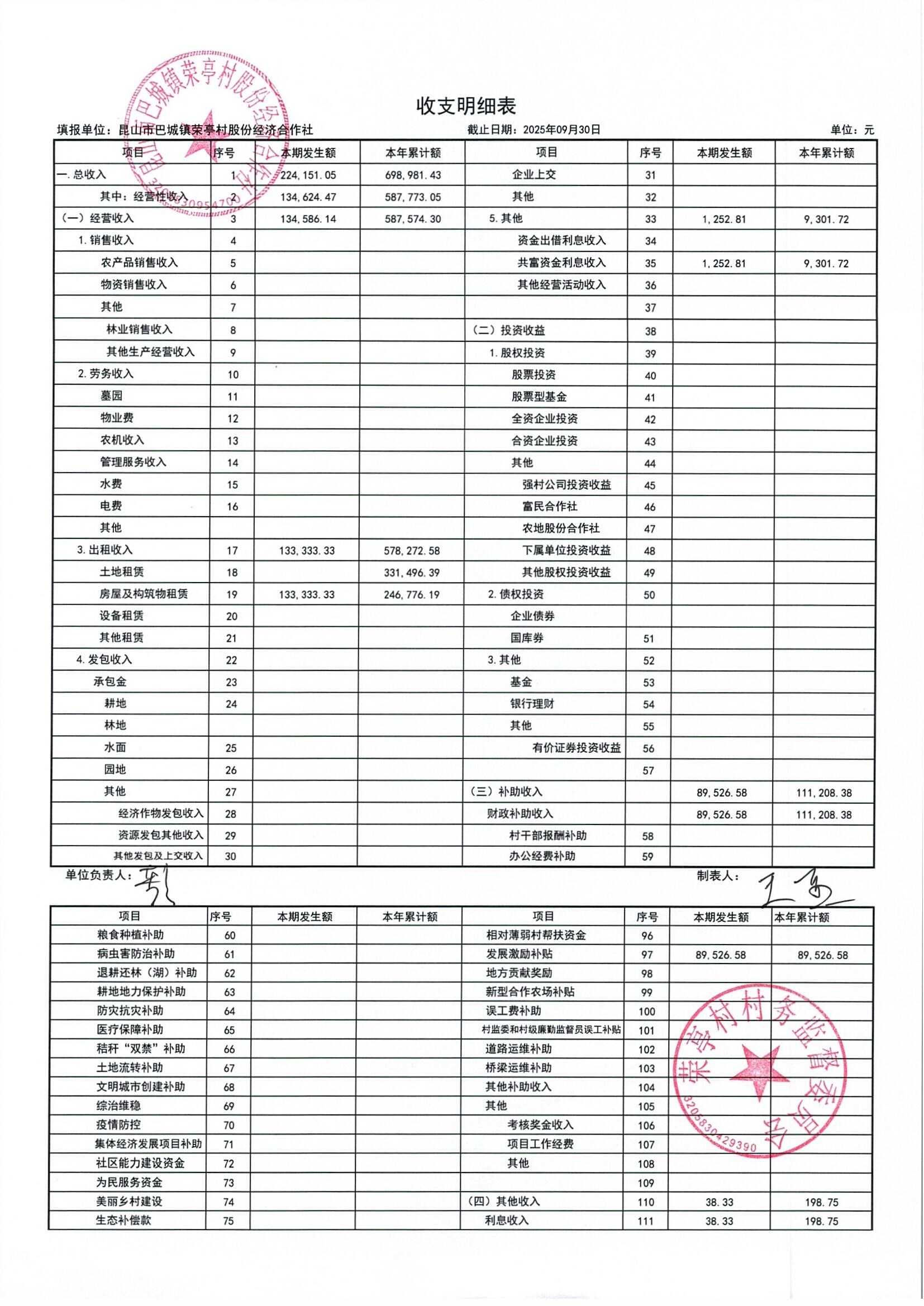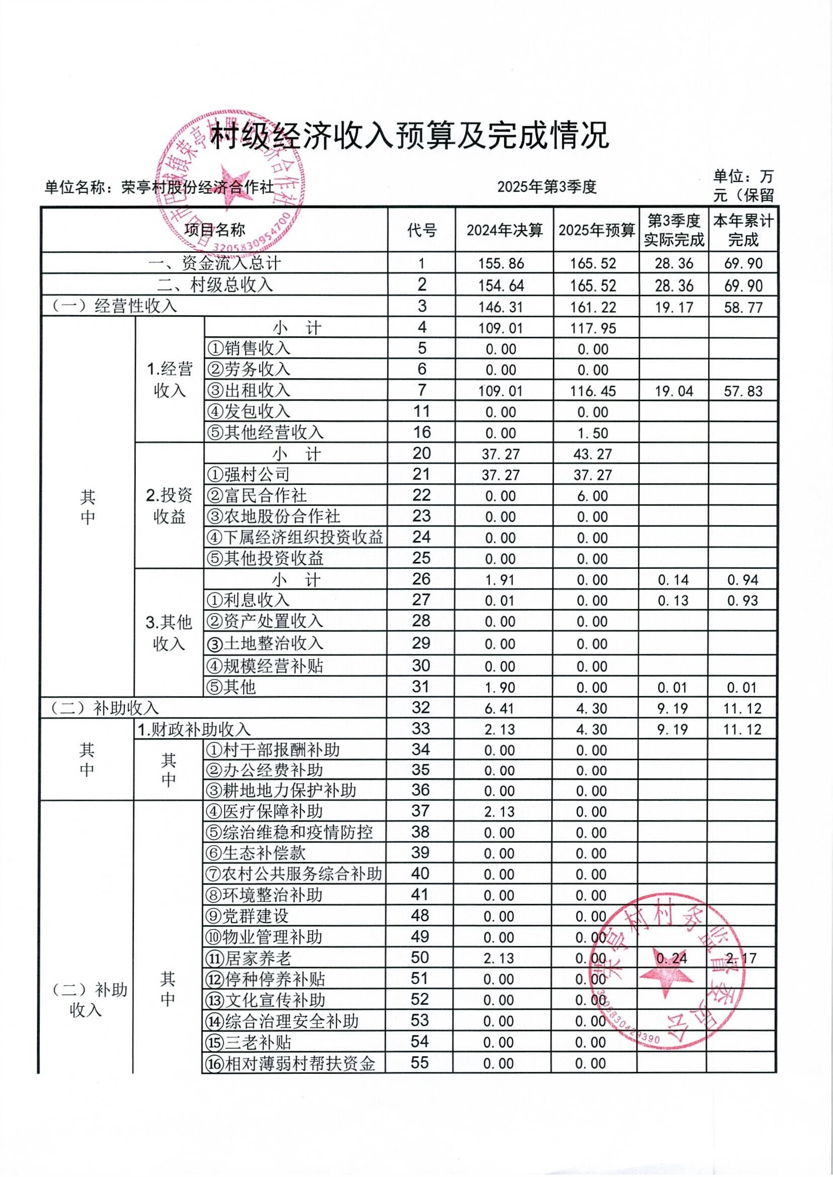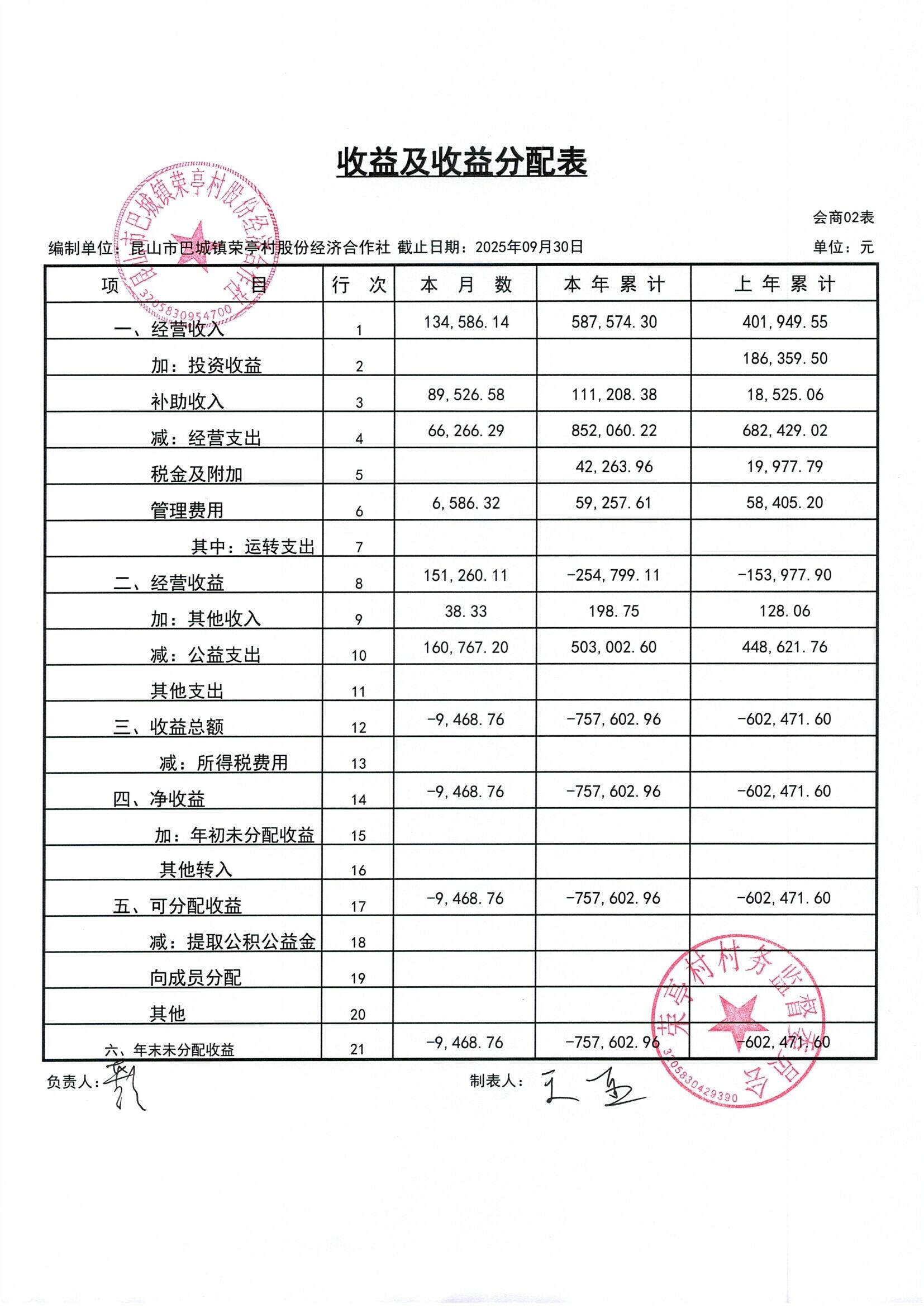 榮亭村股份經(jīng)濟(jì)合作社2025年9月財務(wù)公開