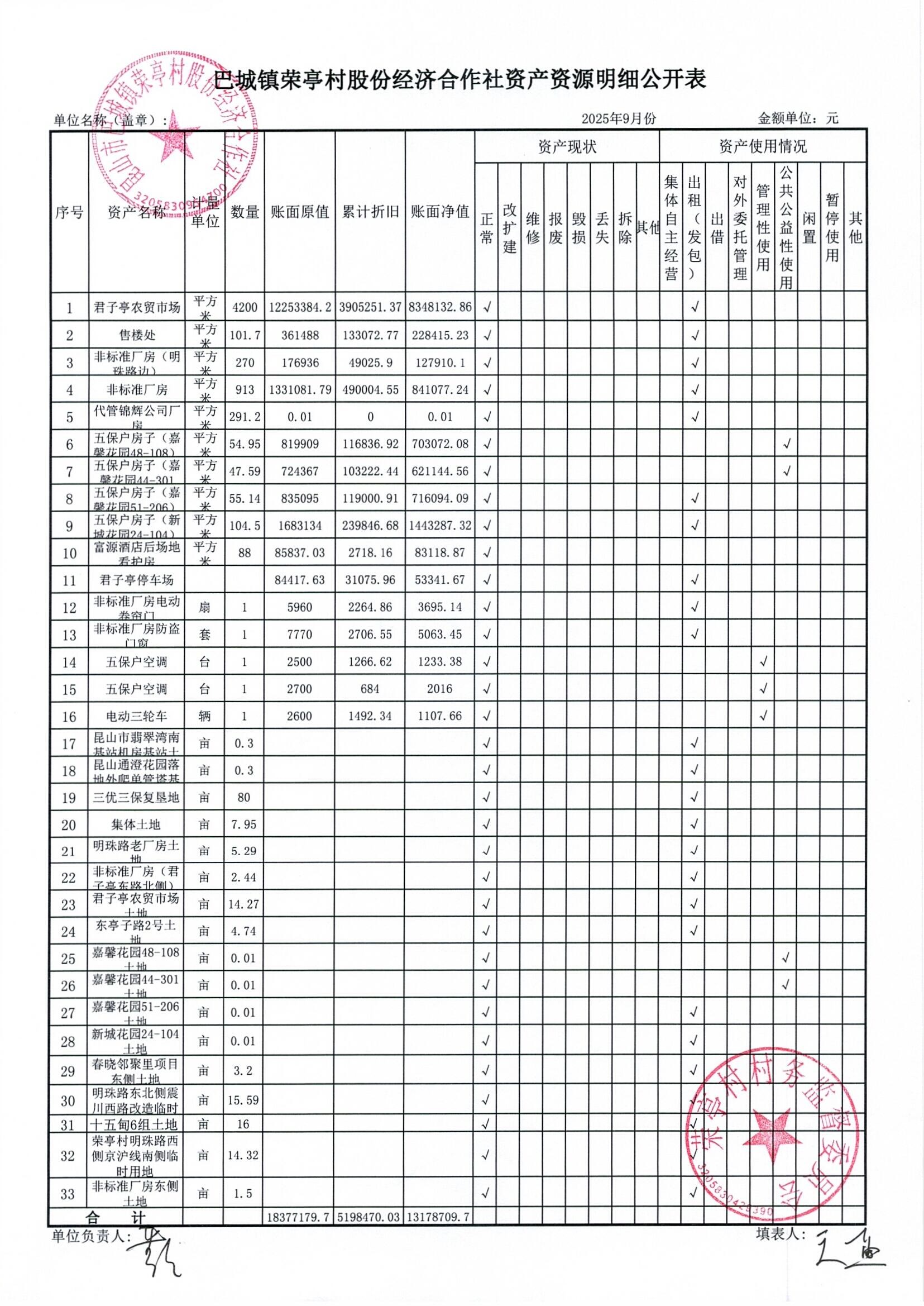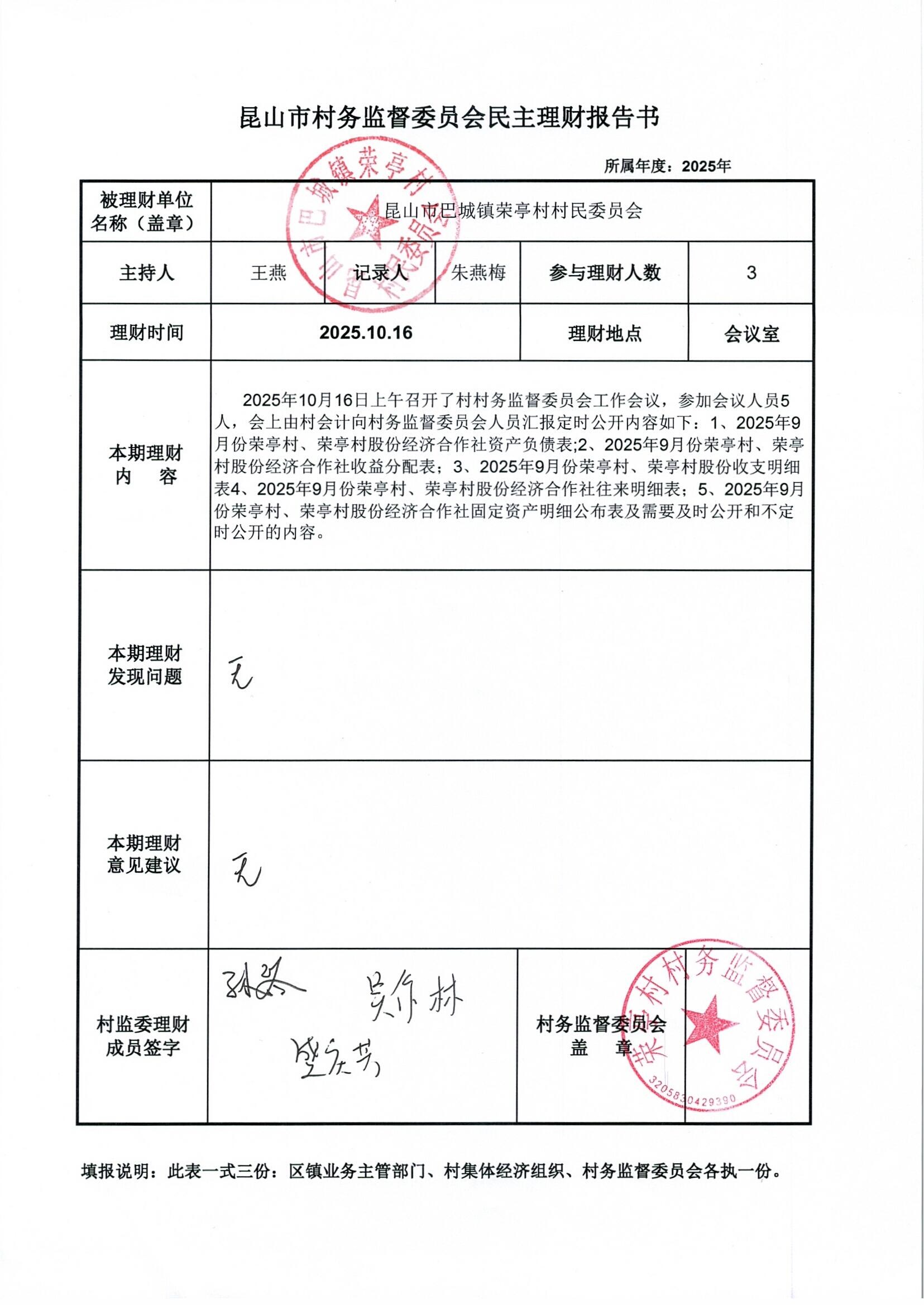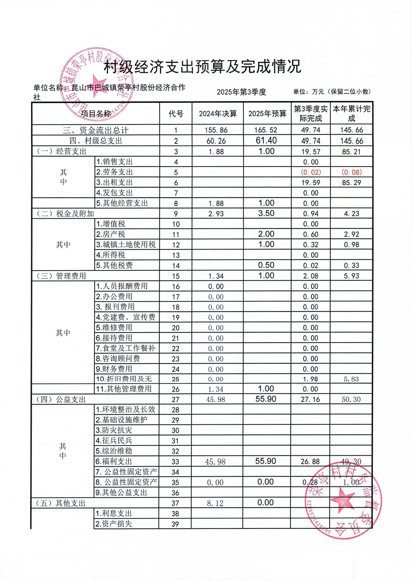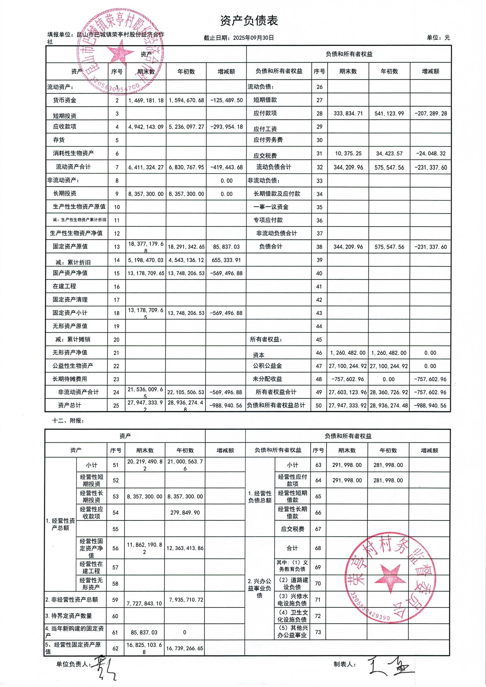 榮亭村股份經(jīng)濟(jì)合作社2025年9月財務(wù)公開