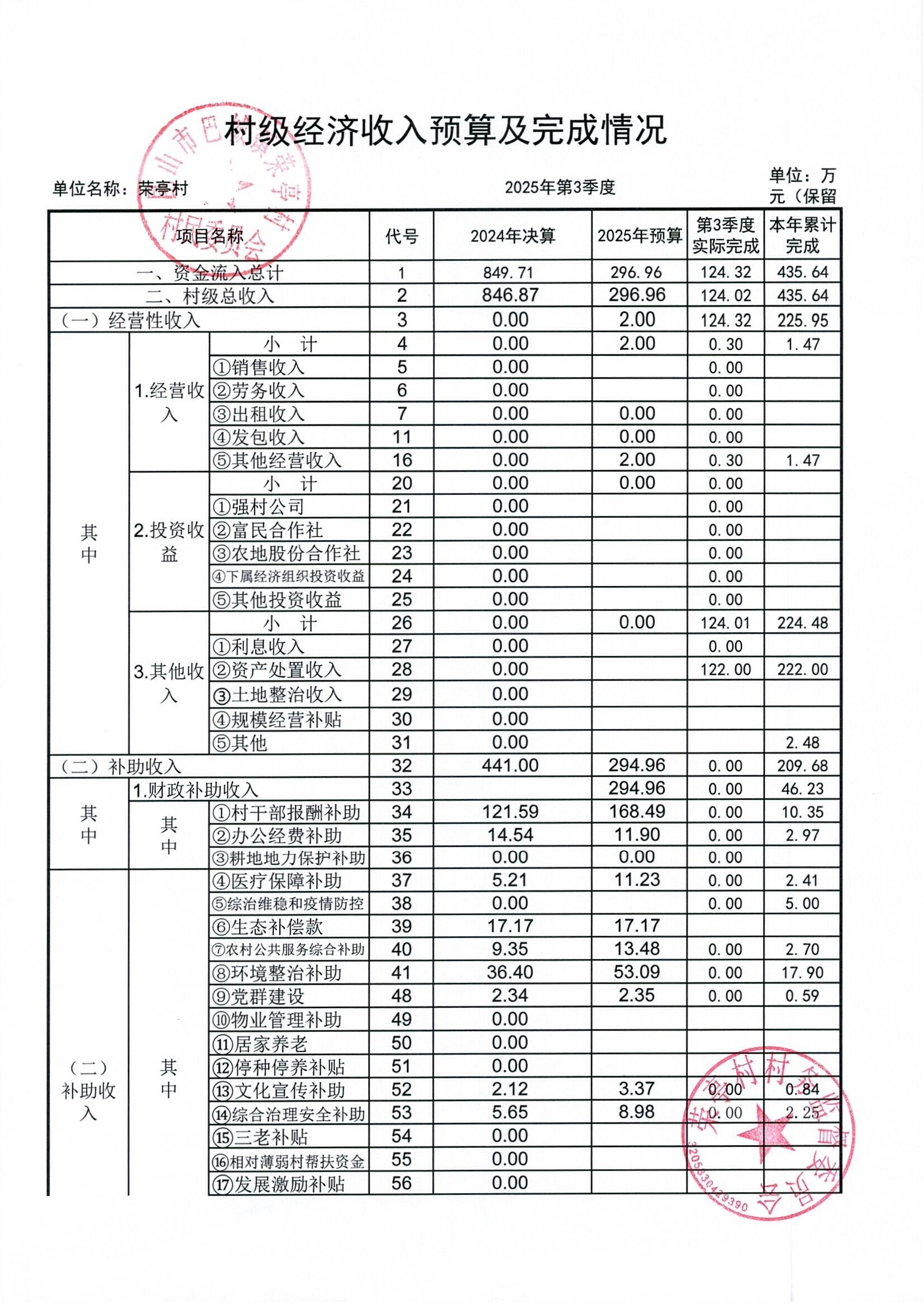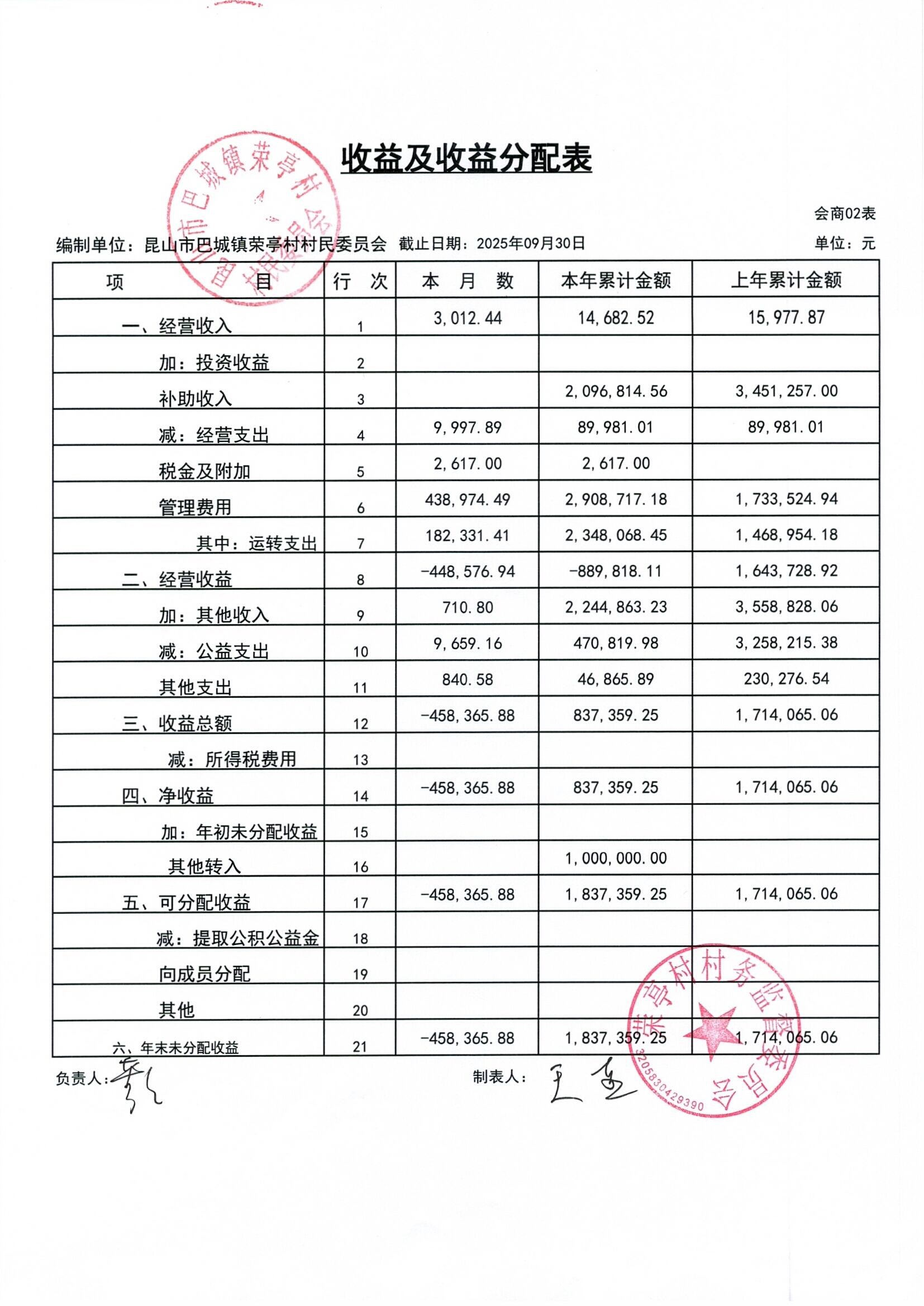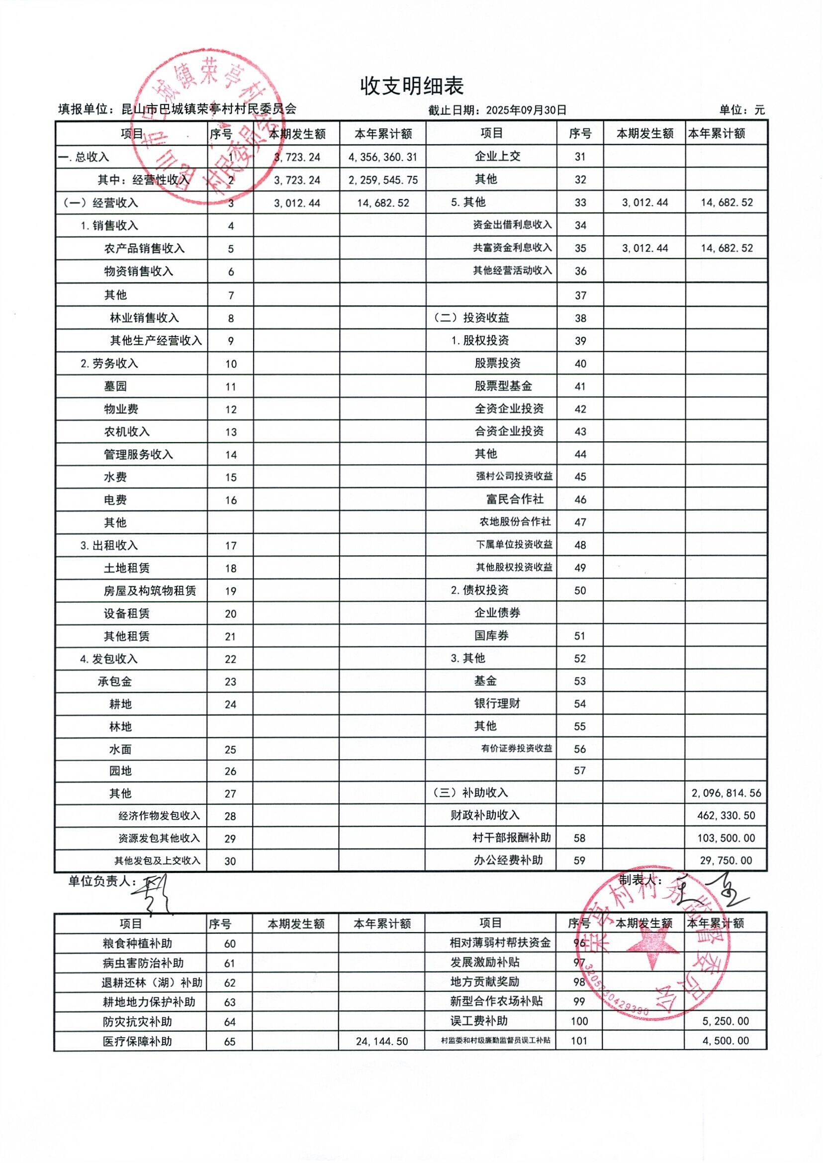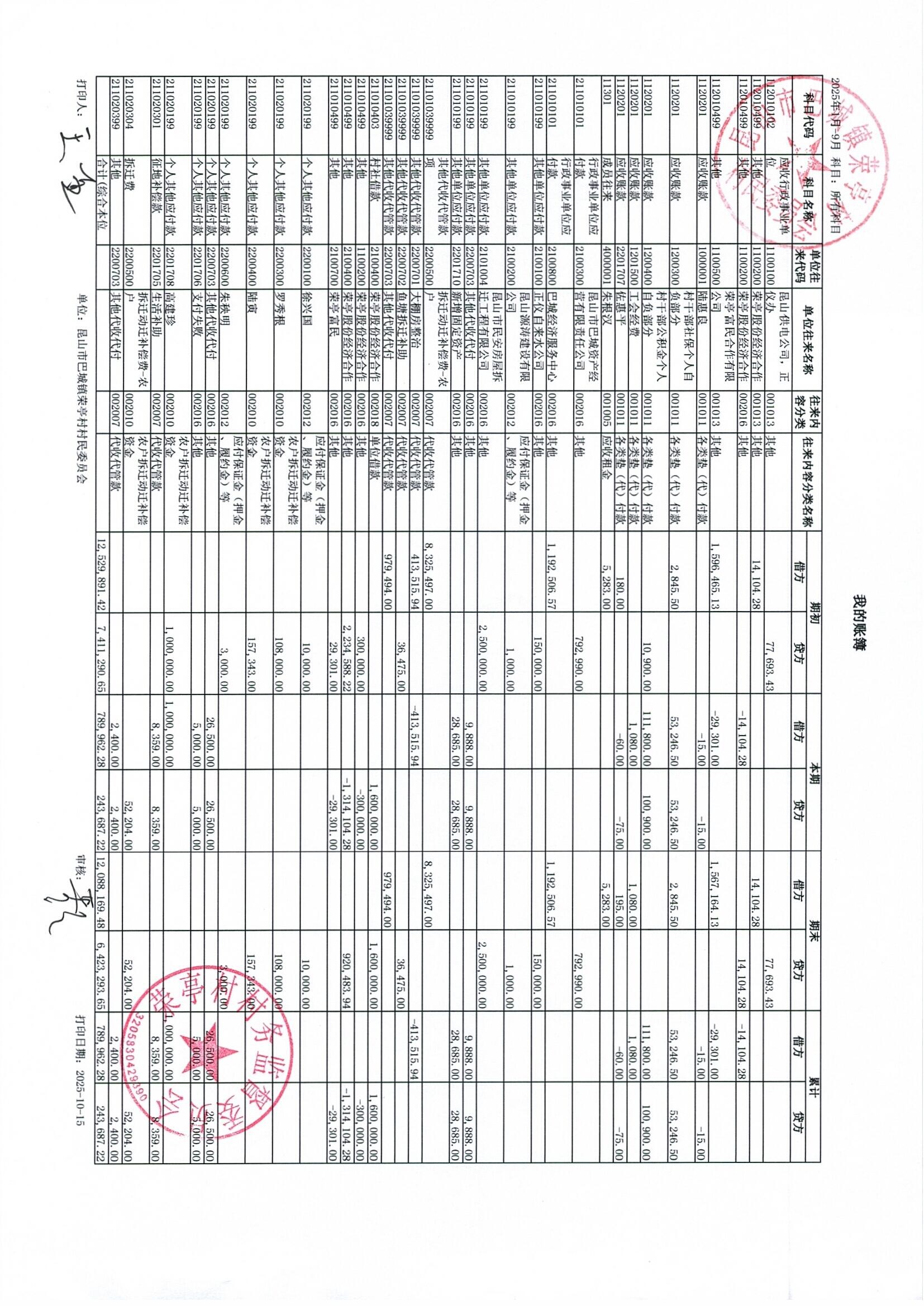 榮亭村2025年9月財務(wù)公開