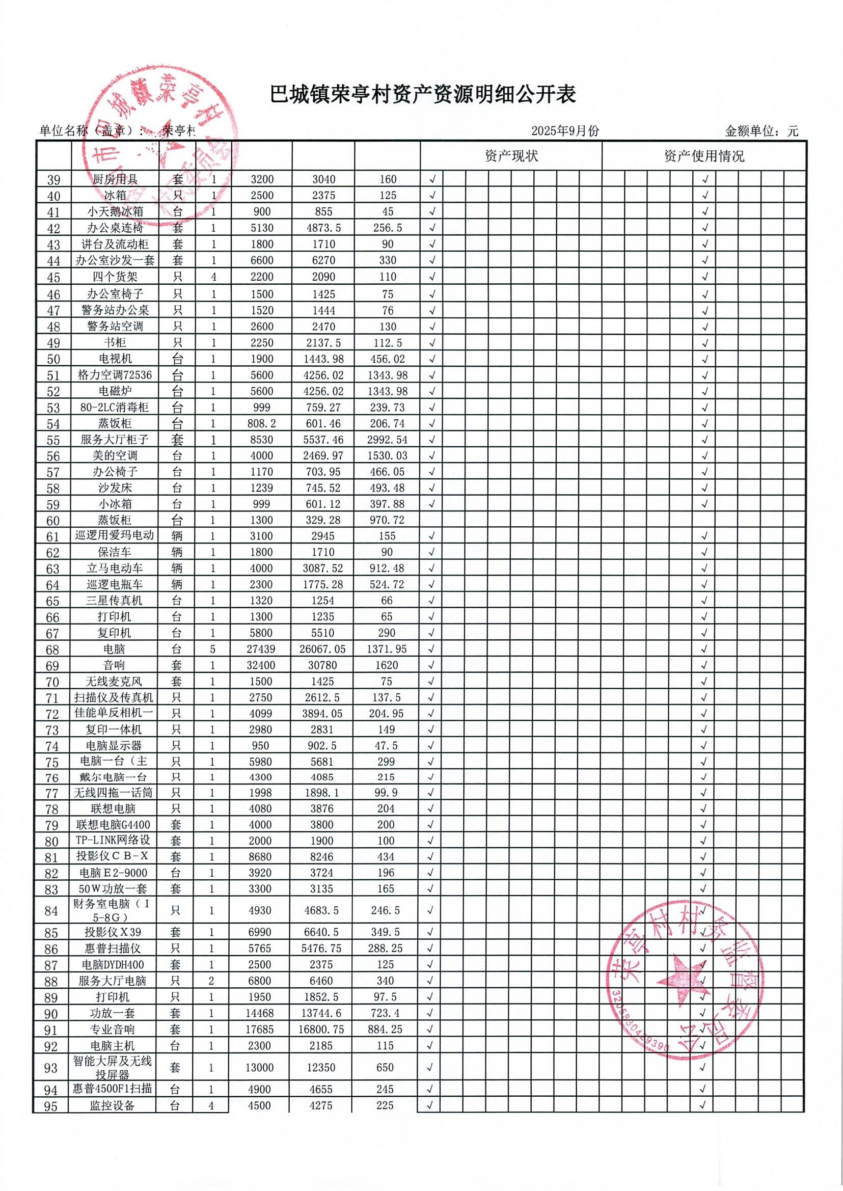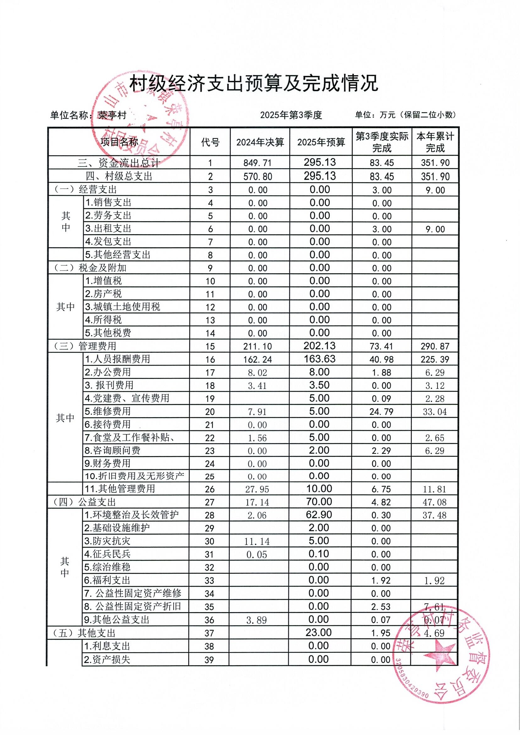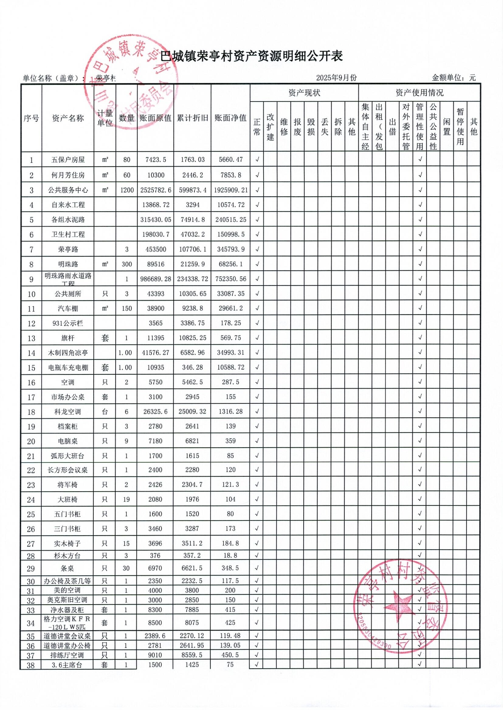 榮亭村2025年9月財務(wù)公開