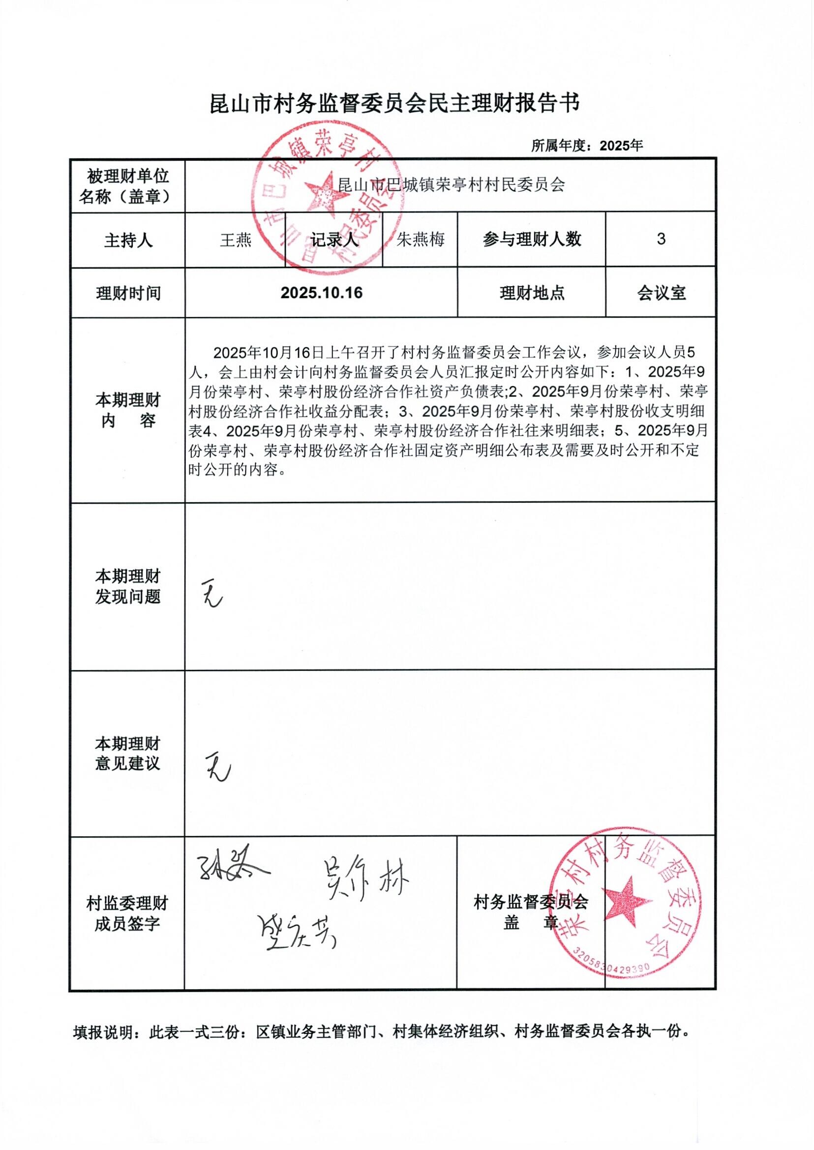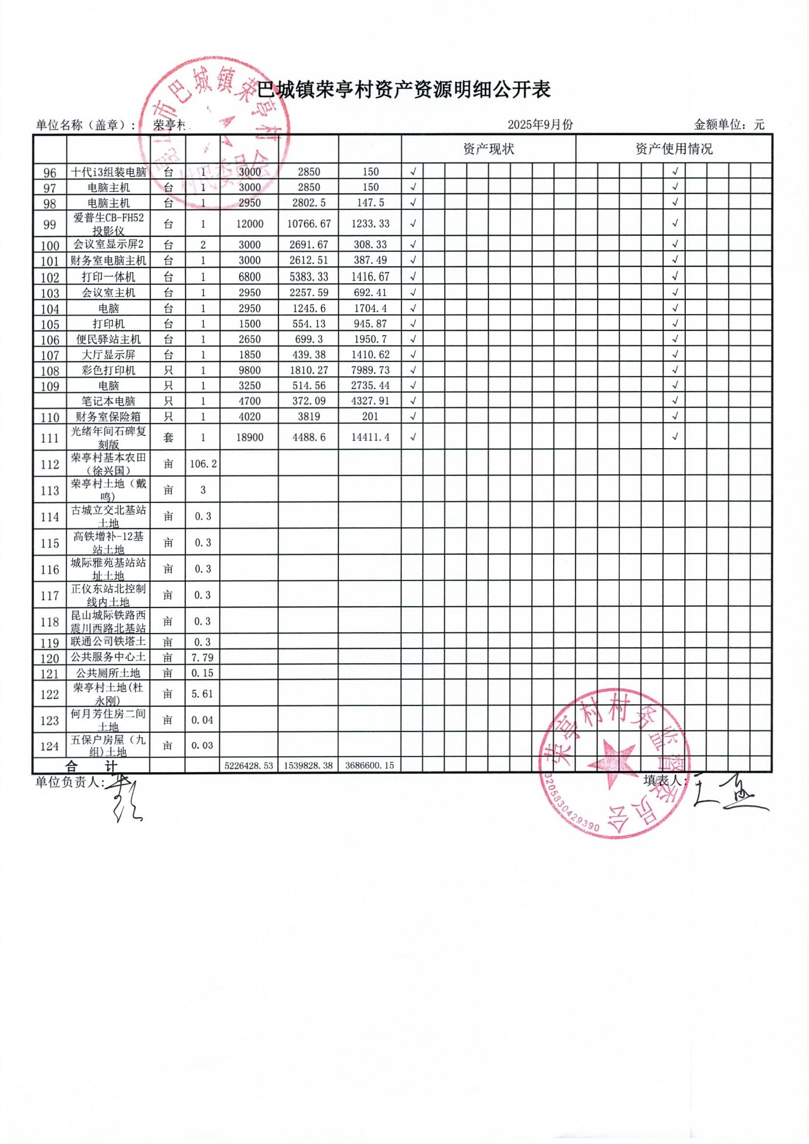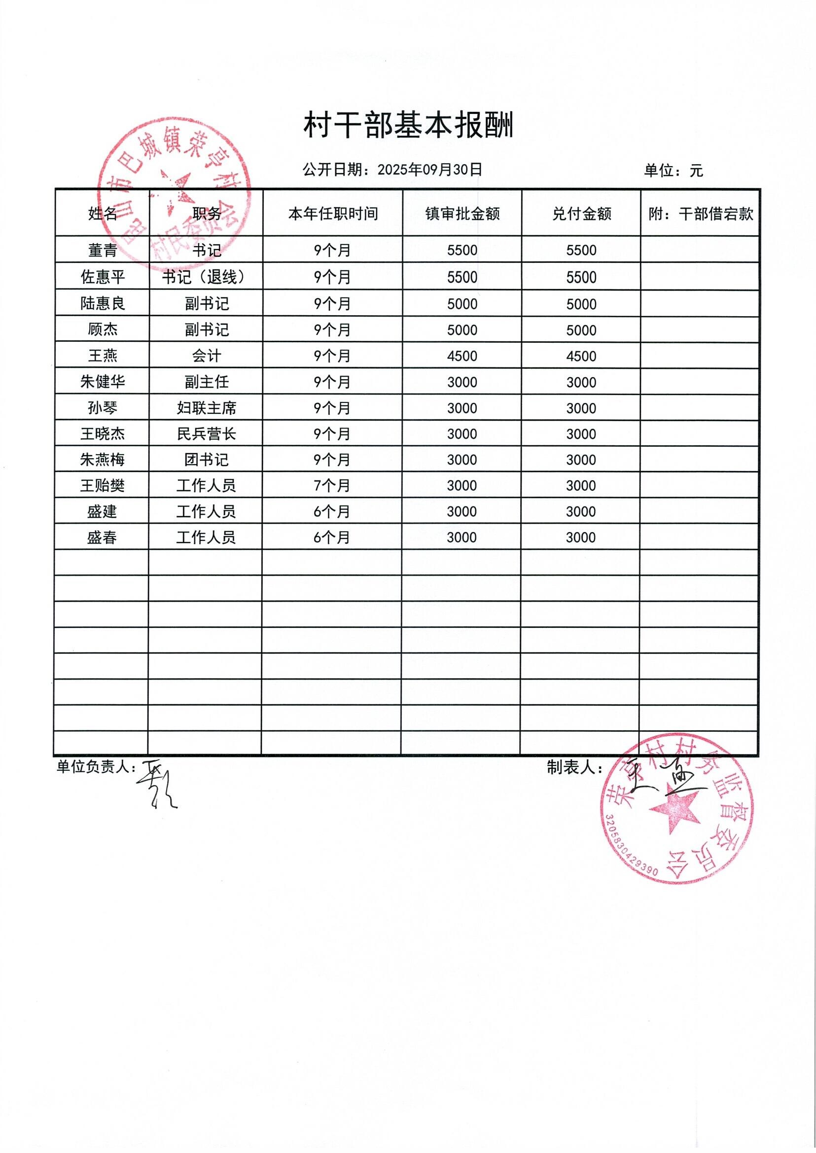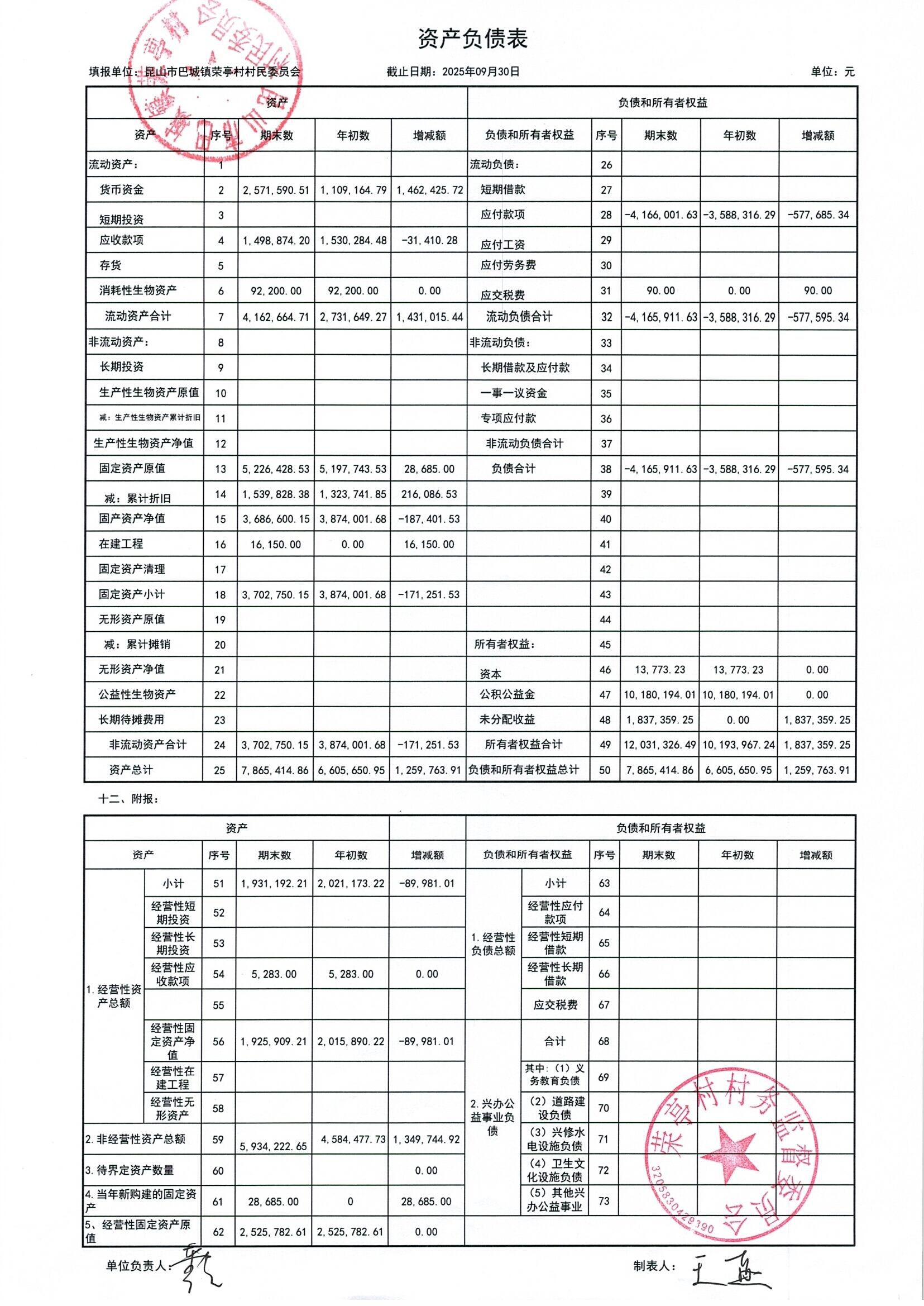 榮亭村2025年9月財務(wù)公開