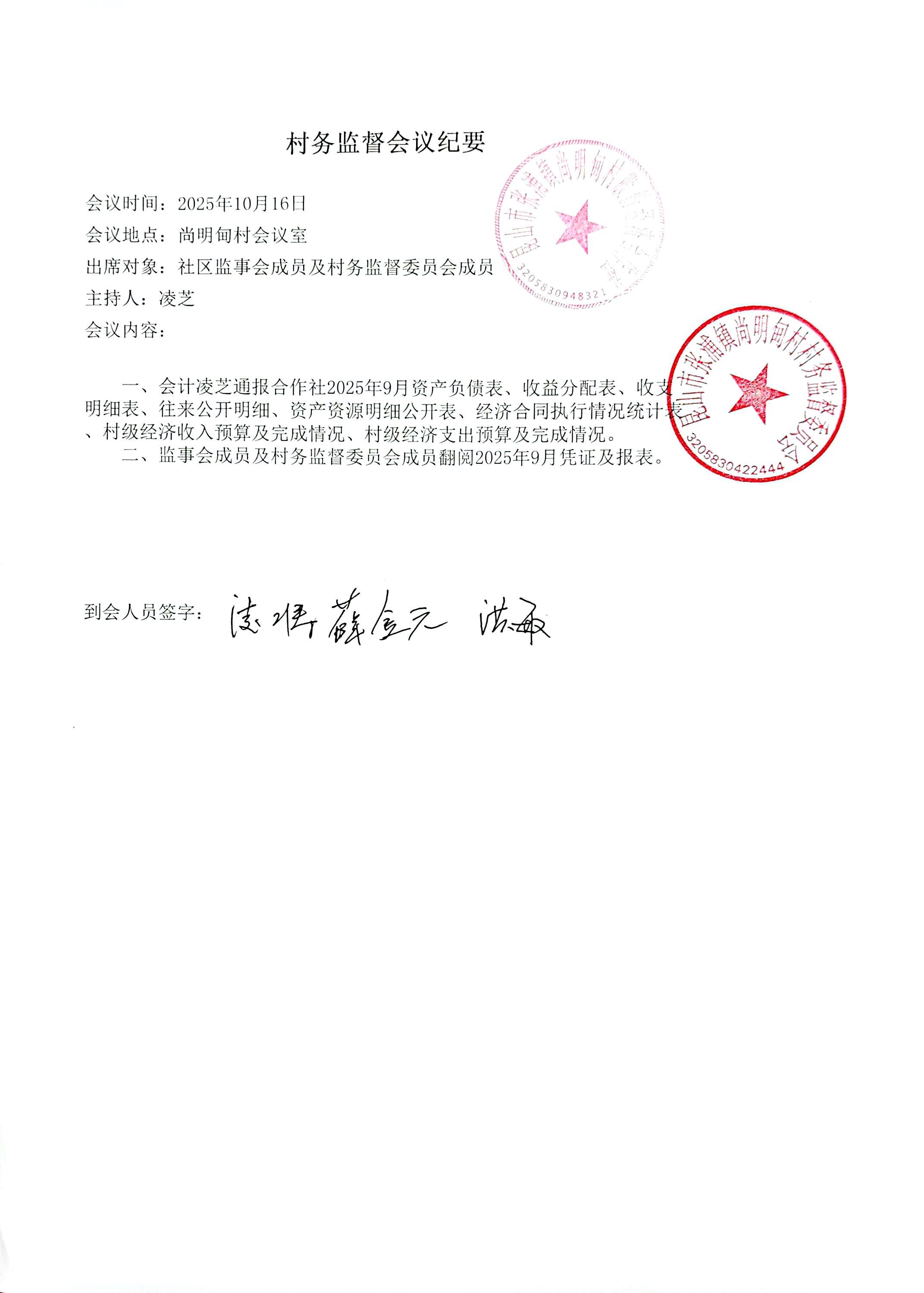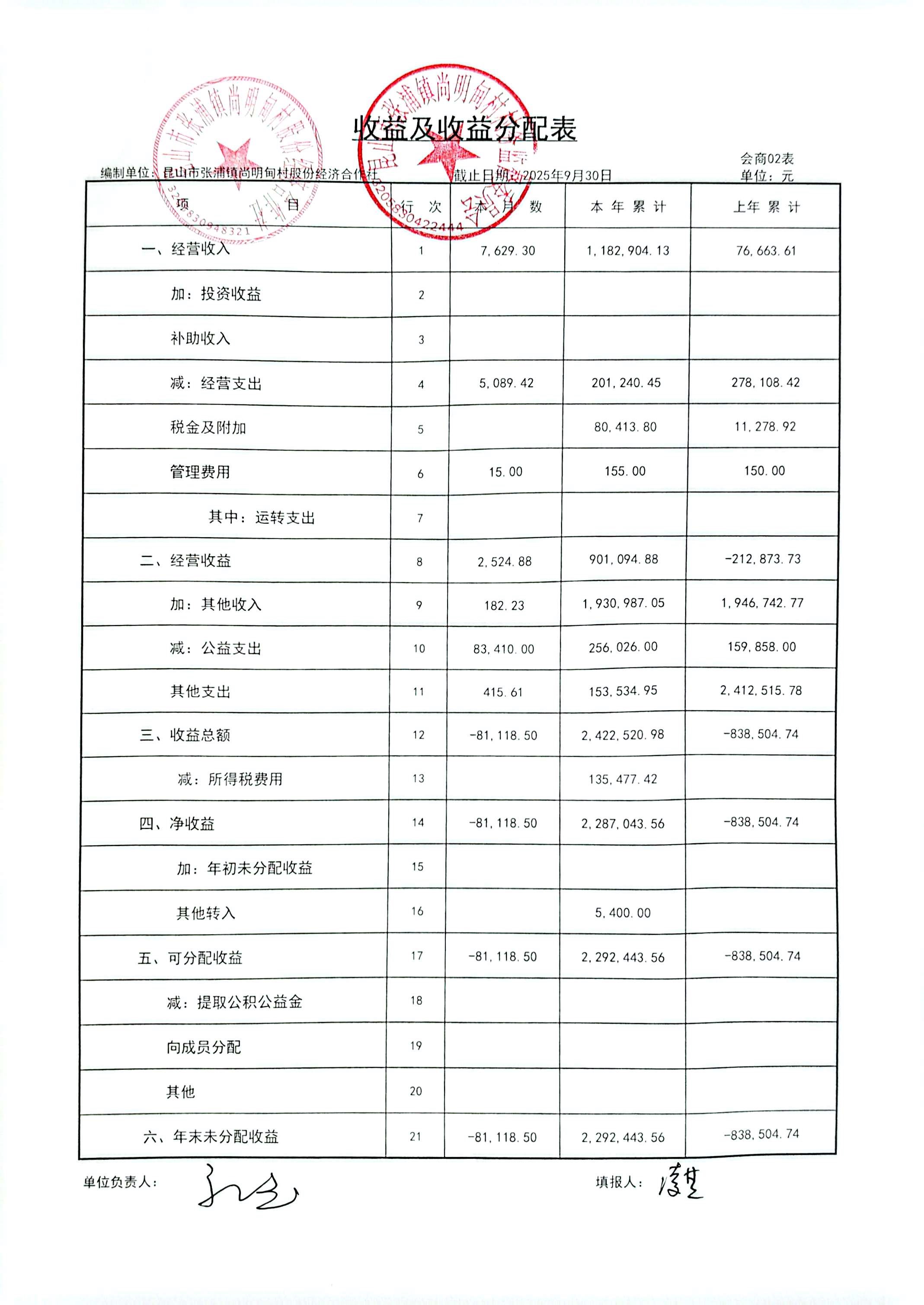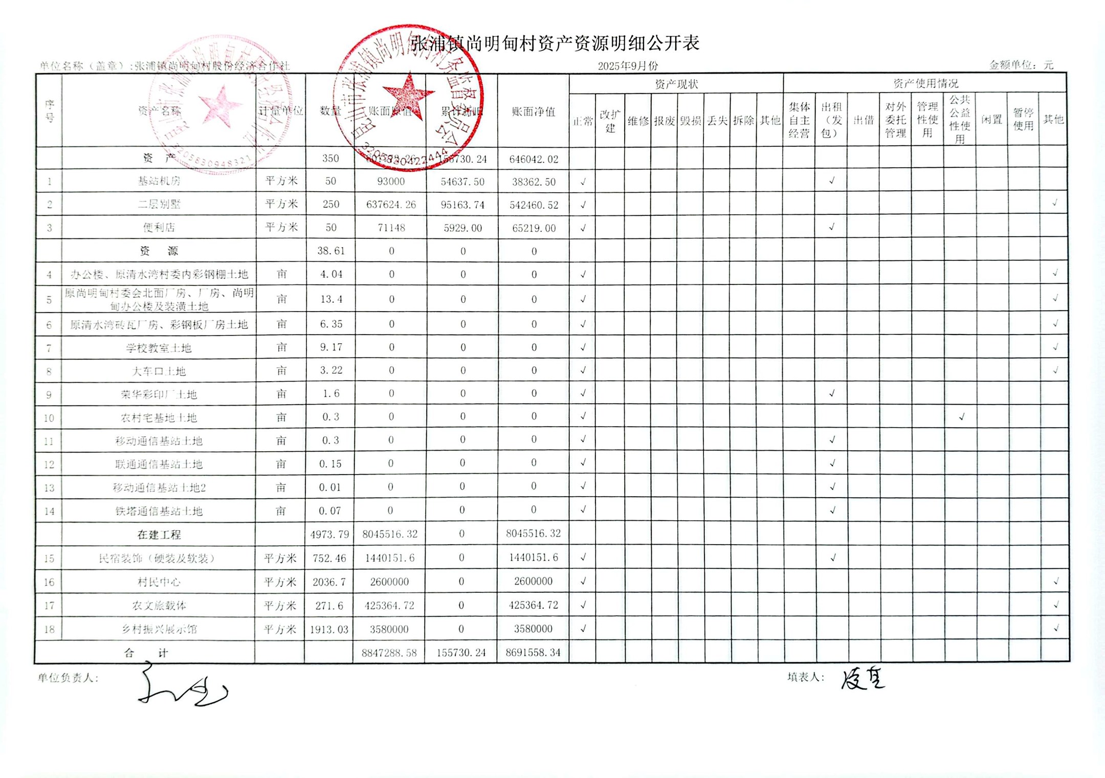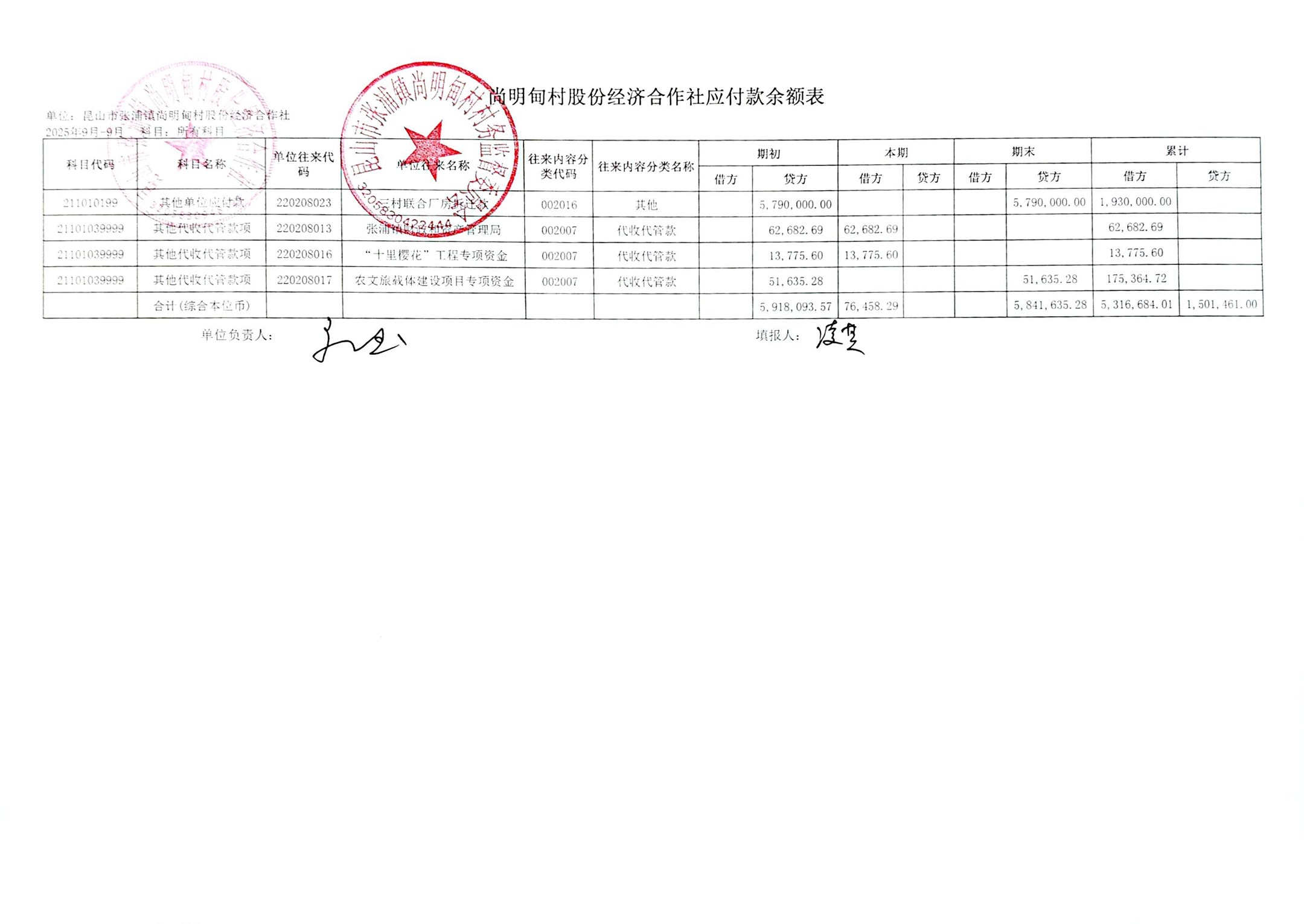 尚明甸村股份經(jīng)濟(jì)合作社2025年9月財(cái)務(wù)公開(kāi)