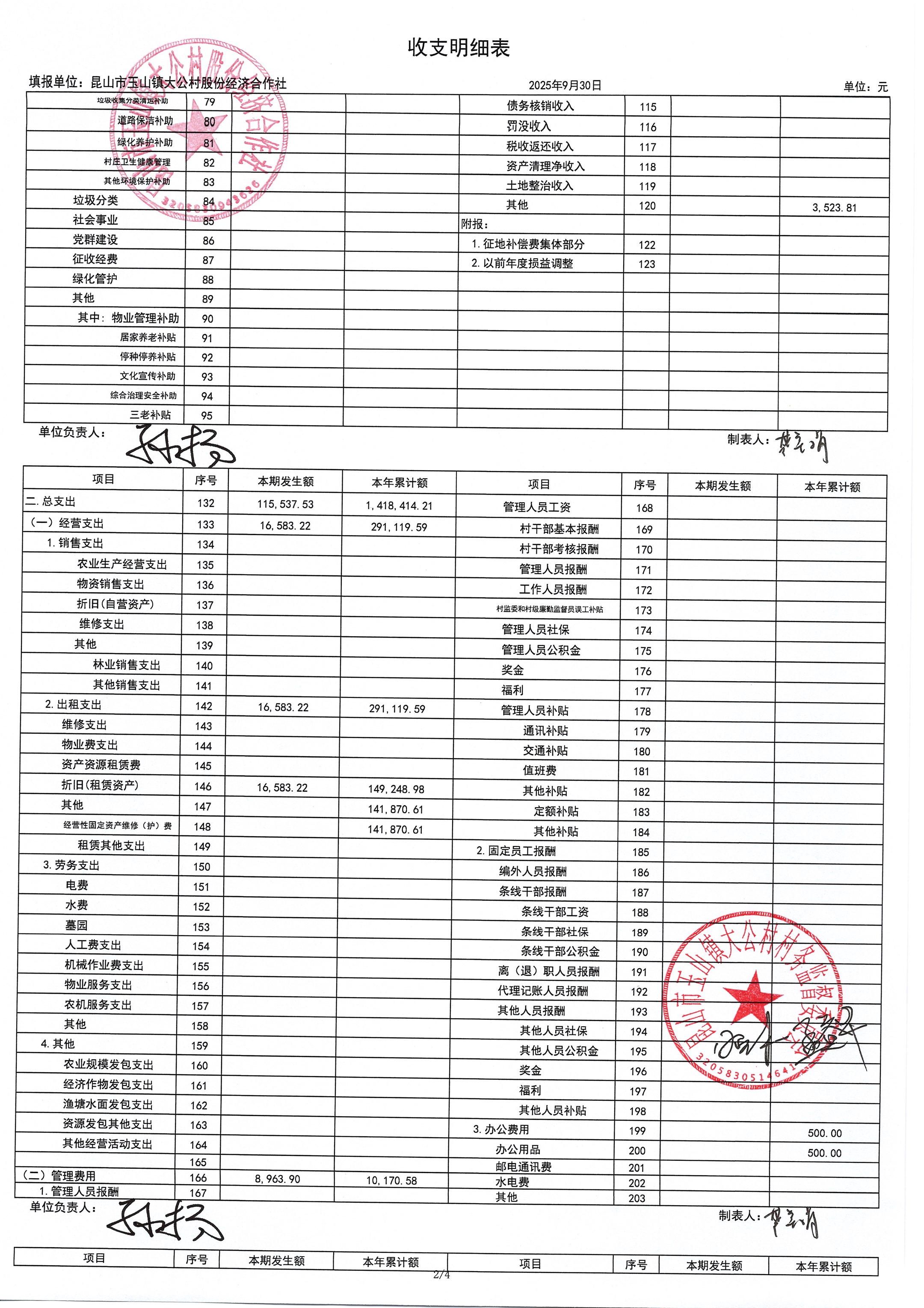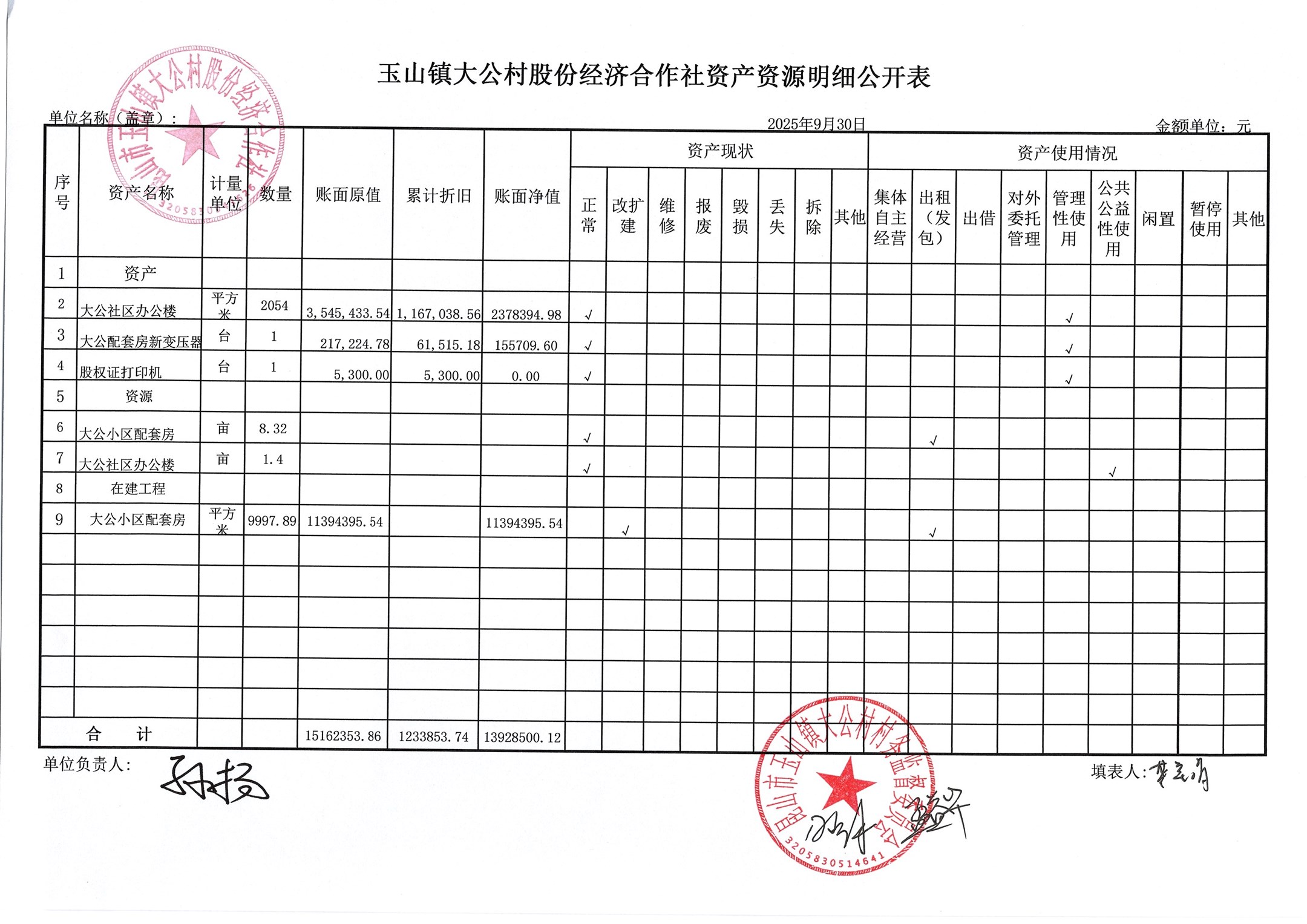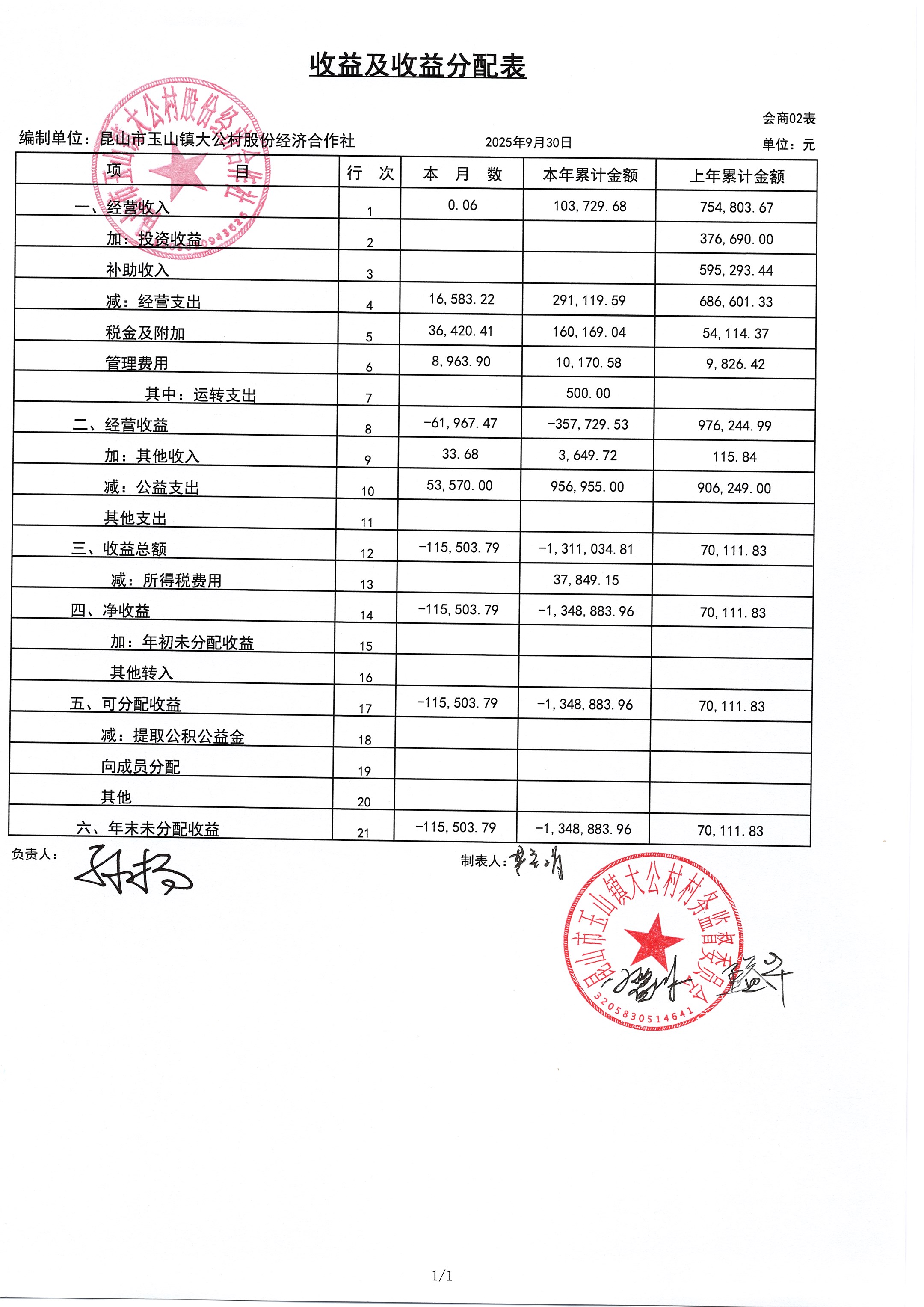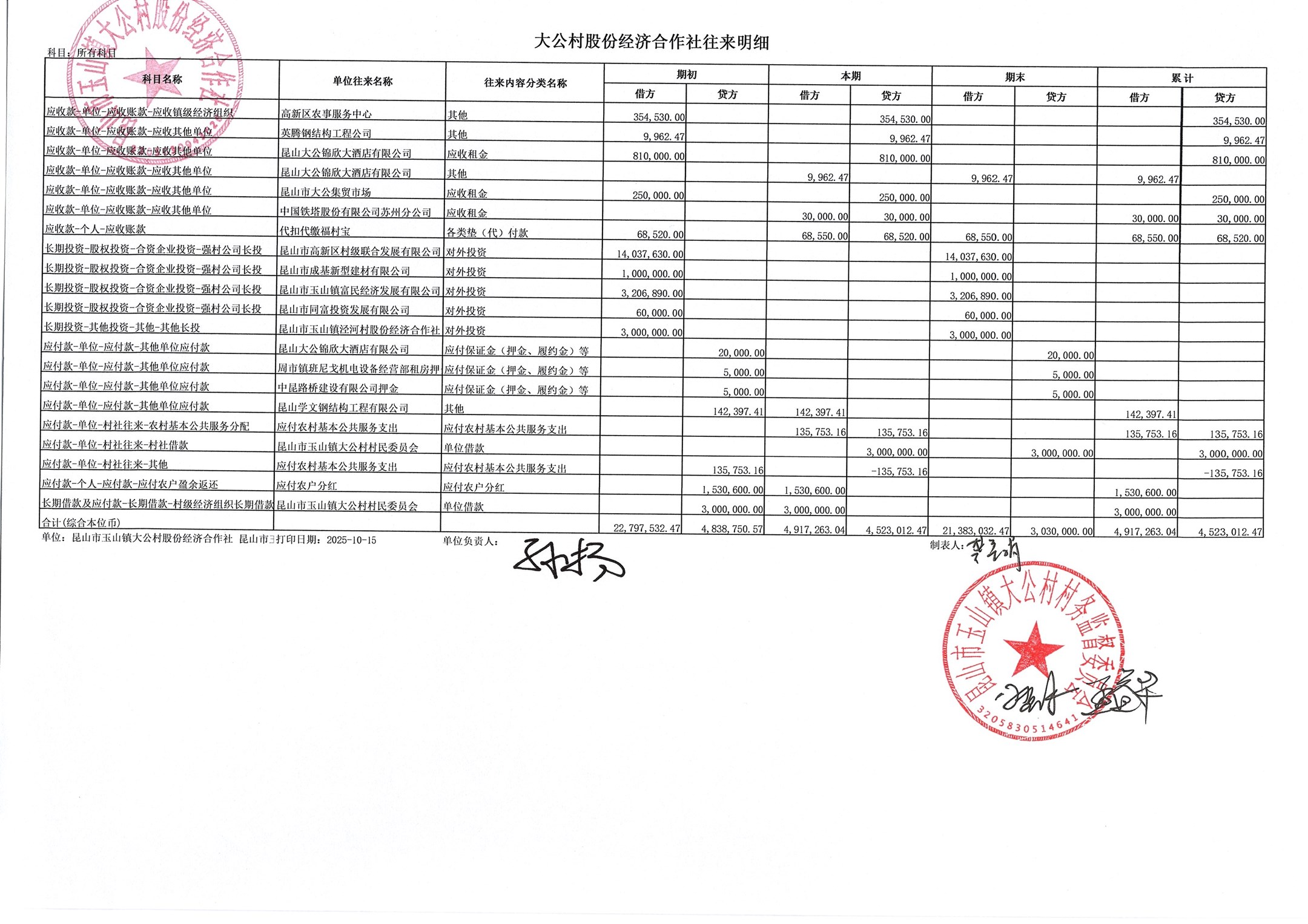 高新區(qū)大公村股份經(jīng)濟(jì)合作社2025年10月財務(wù)公開