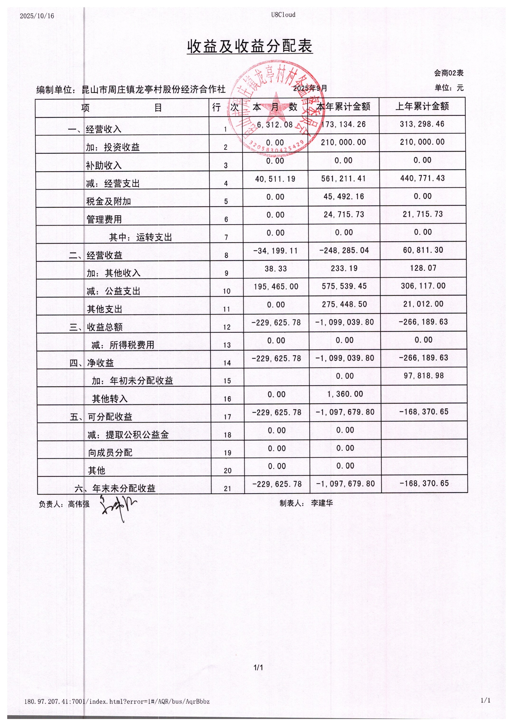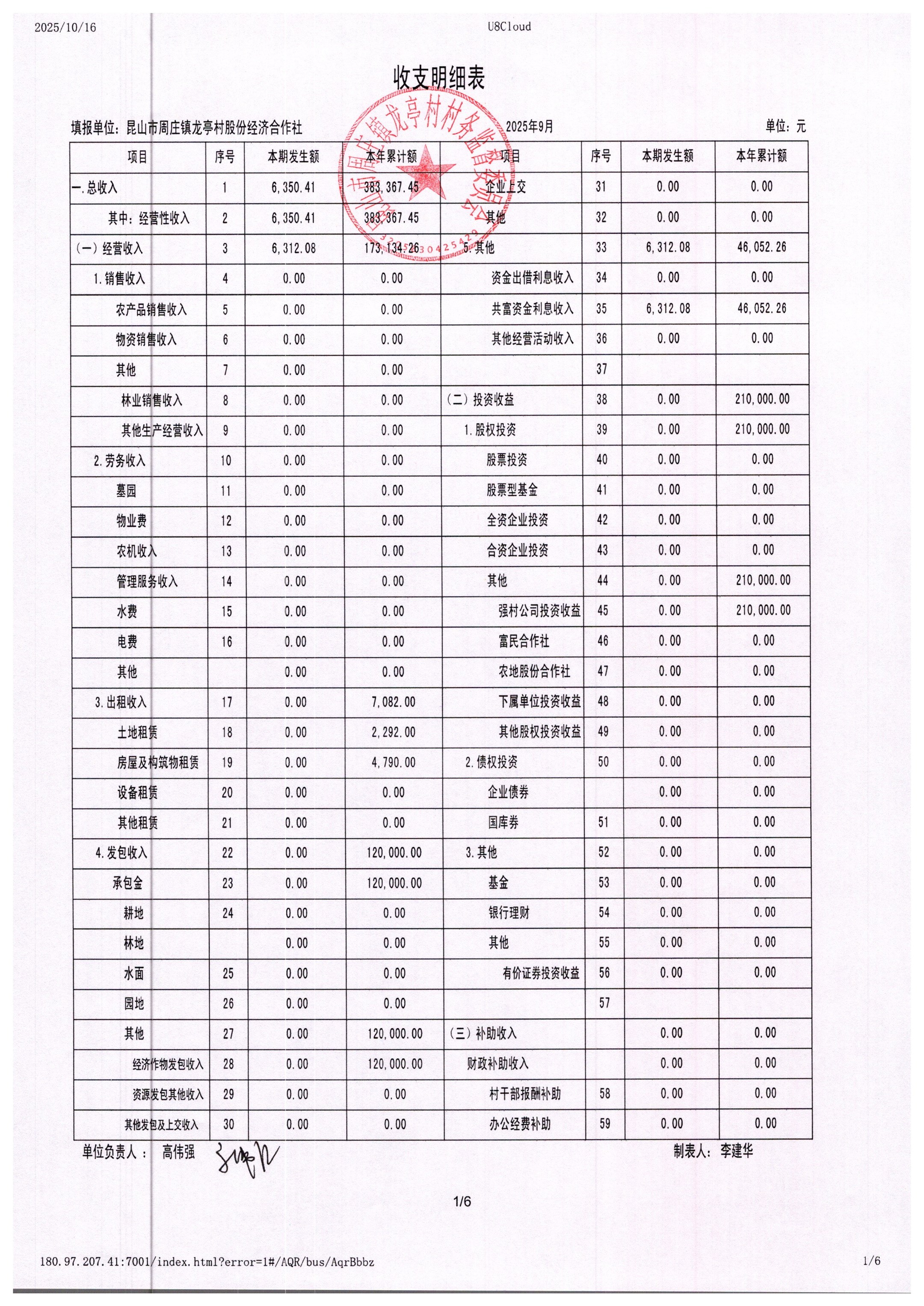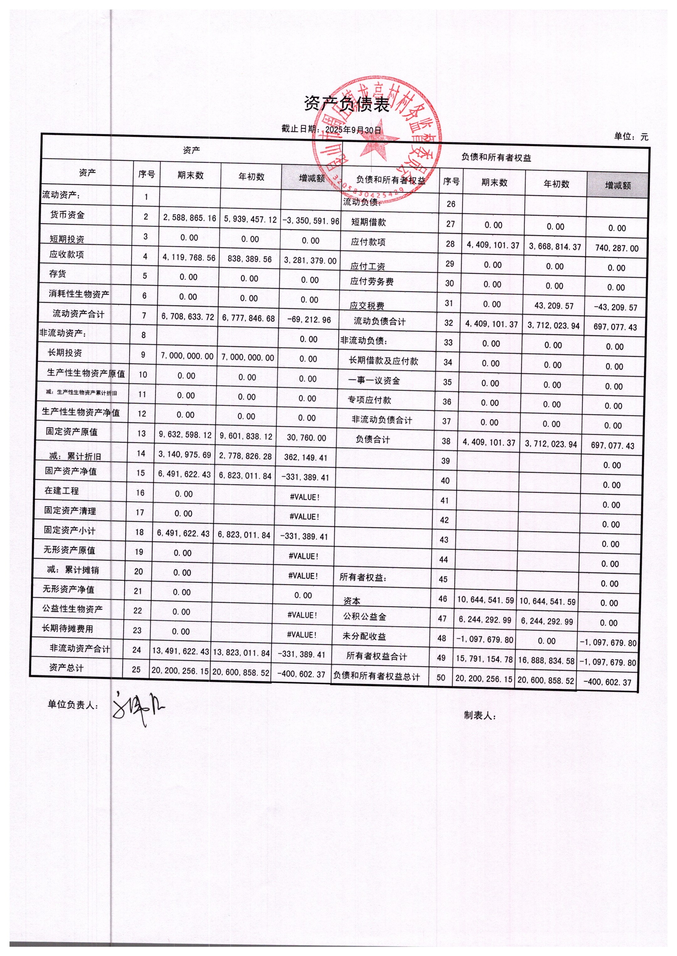2025年9月股份經(jīng)濟合作社財務(wù)報表